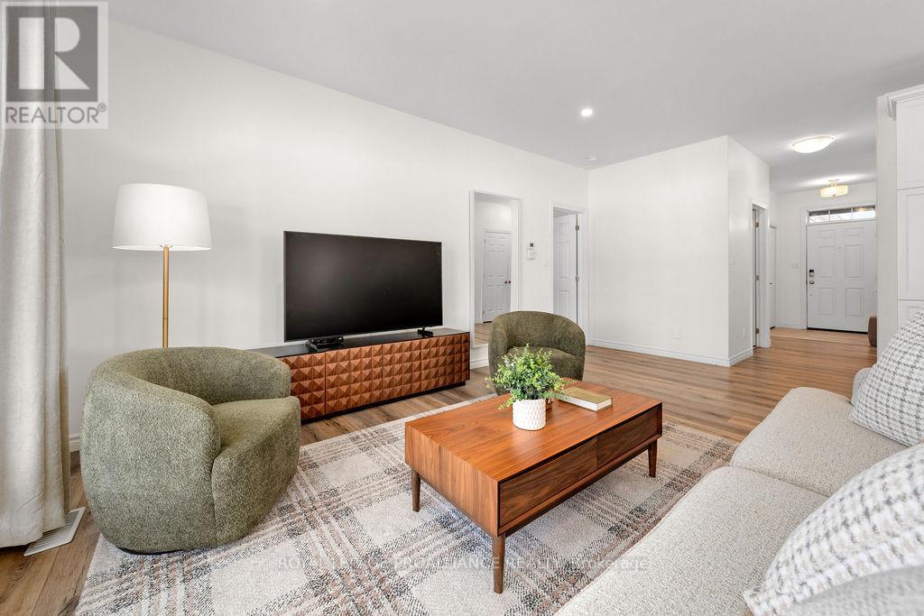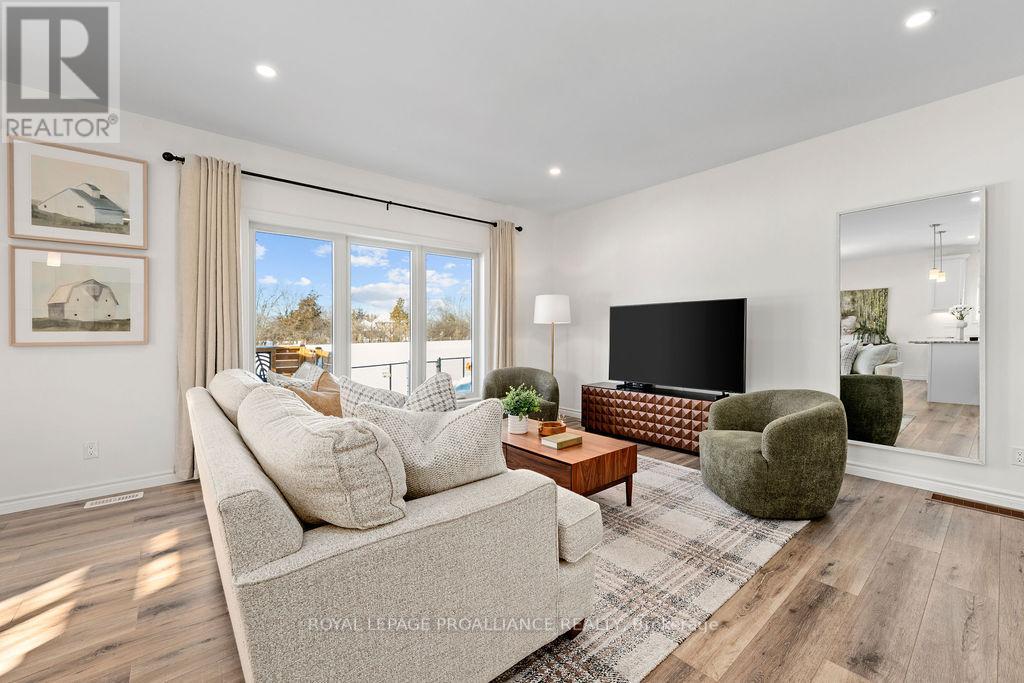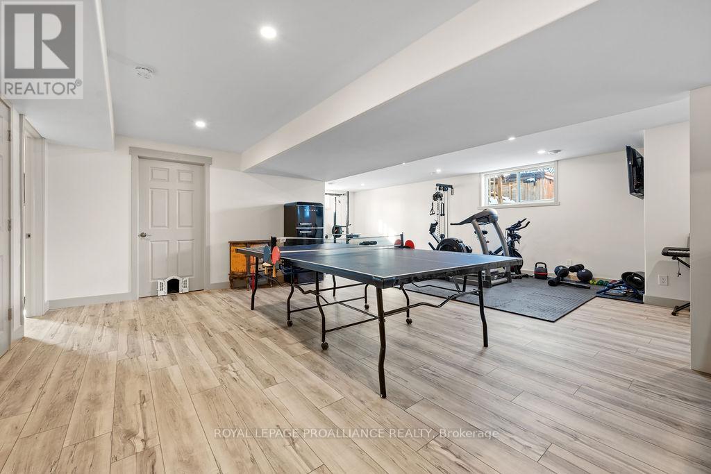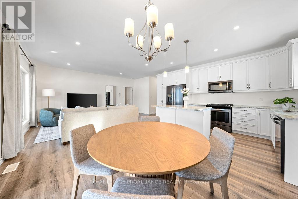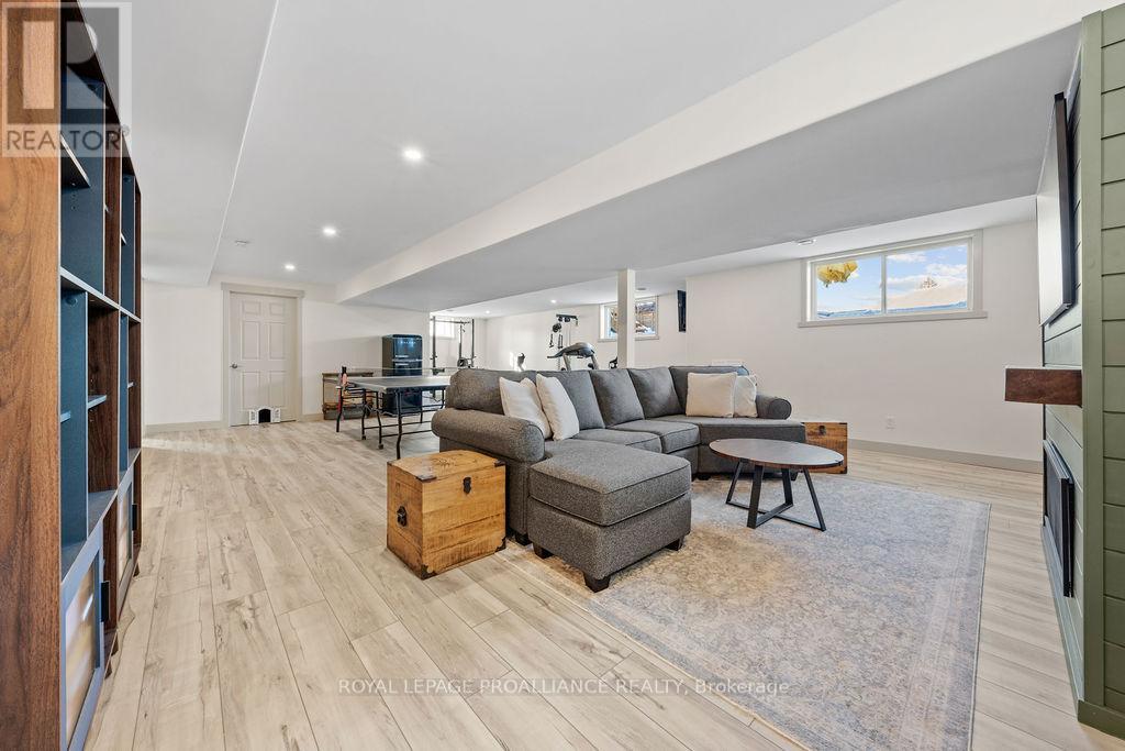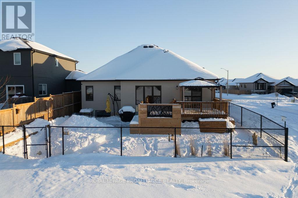 If you're looking to live in a subdivision, this one truly takes the cake for style, space, and location. Adjacent to and backing onto green space in the popular Heritage Park community, this beautiful bungalow offers a smart, functional floor plan with no compromises. Ideal for couples, families, or retirees, the home features a bright, open-concept main living area with 9' ceilings and plenty of natural light. The primary bedroom suite is privately tucked away at the back of the home, overlooking the park and your professionally landscaped yard. Main floor laundry adds everyday convenience, along with a powder room thoughtfully located near both the foyer and garage entrance. Two additional bedrooms on the main level share a well-designed Jack-and-Jill full bath. The fully finished lower level is impressively bright with large windows and includes a spacious recreation/family room with a cozy gas fireplace, a full bedroom and bathroom, and room to add another bedroom if desired. Outside, enjoy landscaped front and back yards, a large deck, hot tub, fully fenced yard, and gate access directly to the green space - perfect for relaxing evenings and crisp winter nights alike. Located just minutes to shopping, schools, trails, and Quinte Sports & Wellness Centre, and quick access to Highway 401! Heritage Park is known for its quiet streets, walkable green spaces, and proximity to all Belleville amenities. Fall in love with city living in a setting that still feels peaceful and connected to nature. (id:64974)