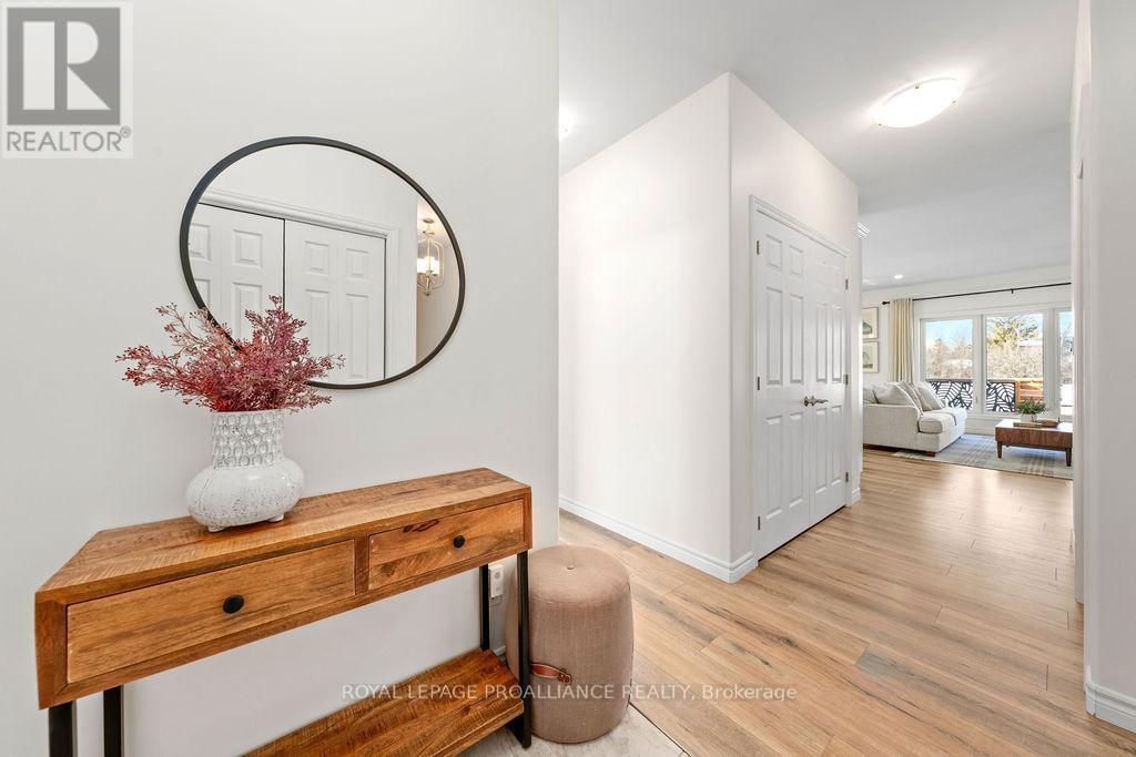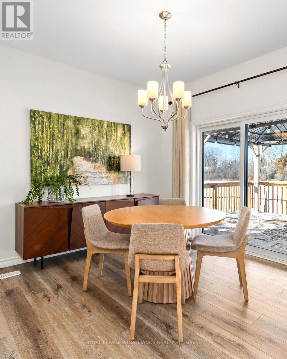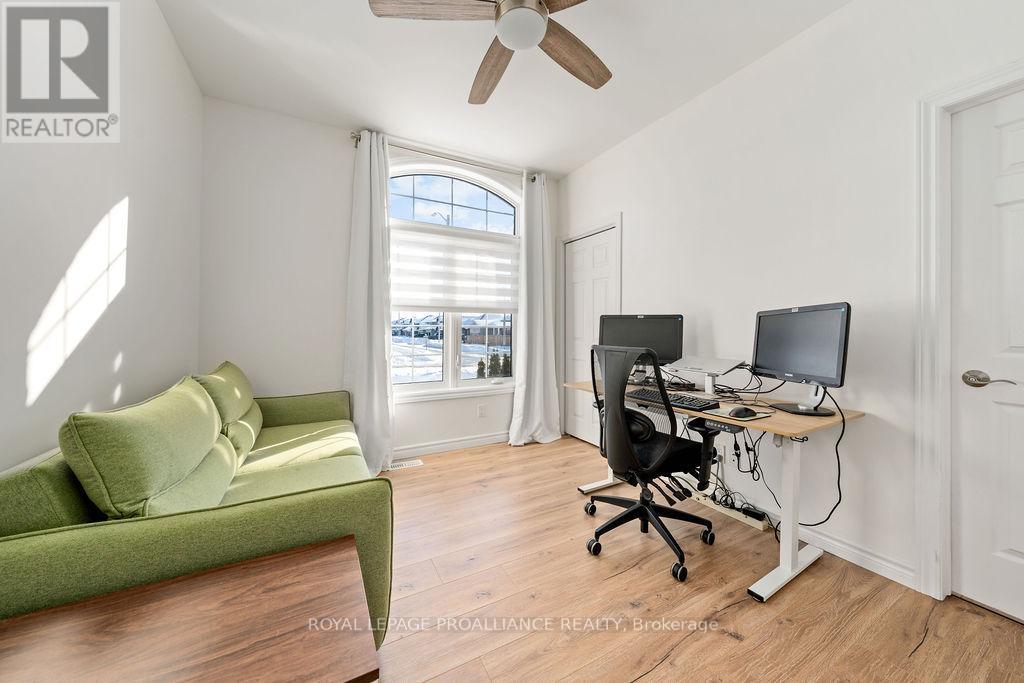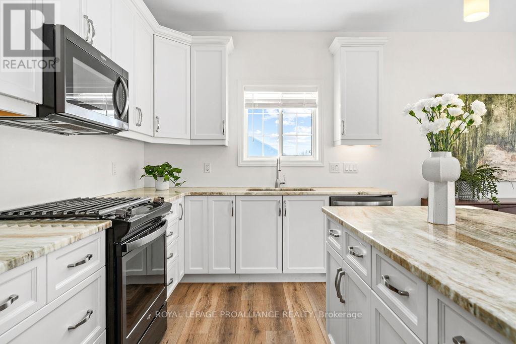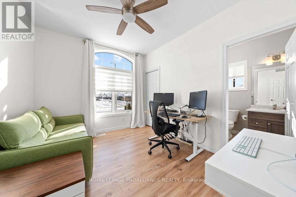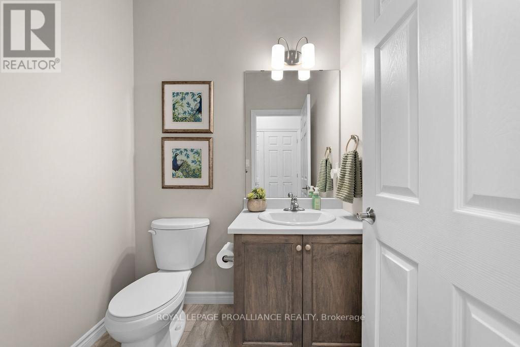 If you're looking to live in a subdivision, this one truly takes the cake for style, space, and location. Adjacent to and backing onto green space in the popular Heritage Park community, this beautiful bungalow offers a smart, functional floor plan with no compromises. Ideal for couples, families, or retirees, the home features a bright, open-concept main living area with 9' ceilings and plenty of natural light. The primary bedroom suite is privately tucked away at the back of the home, overlooking the park and your professionally landscaped yard. Main floor laundry adds everyday convenience, along with a powder room thoughtfully located near both the foyer and garage entrance. Two additional bedrooms on the main level share a well-designed Jack-and-Jill full bath. The fully finished lower level is impressively bright with large windows and includes a spacious recreation/family room with a cozy gas fireplace, a full bedroom and bathroom, and room to add another bedroom if desired. Outside, enjoy landscaped front and back yards, a large deck, hot tub, fully fenced yard, and gate access directly to the green space - perfect for relaxing evenings and crisp winter nights alike. Located just minutes to shopping, schools, trails, and Quinte Sports & Wellness Centre, and quick access to Highway 401! Heritage Park is known for its quiet streets, walkable green spaces, and proximity to all Belleville amenities. Fall in love with city living in a setting that still feels peaceful and connected to nature. (id:64974)