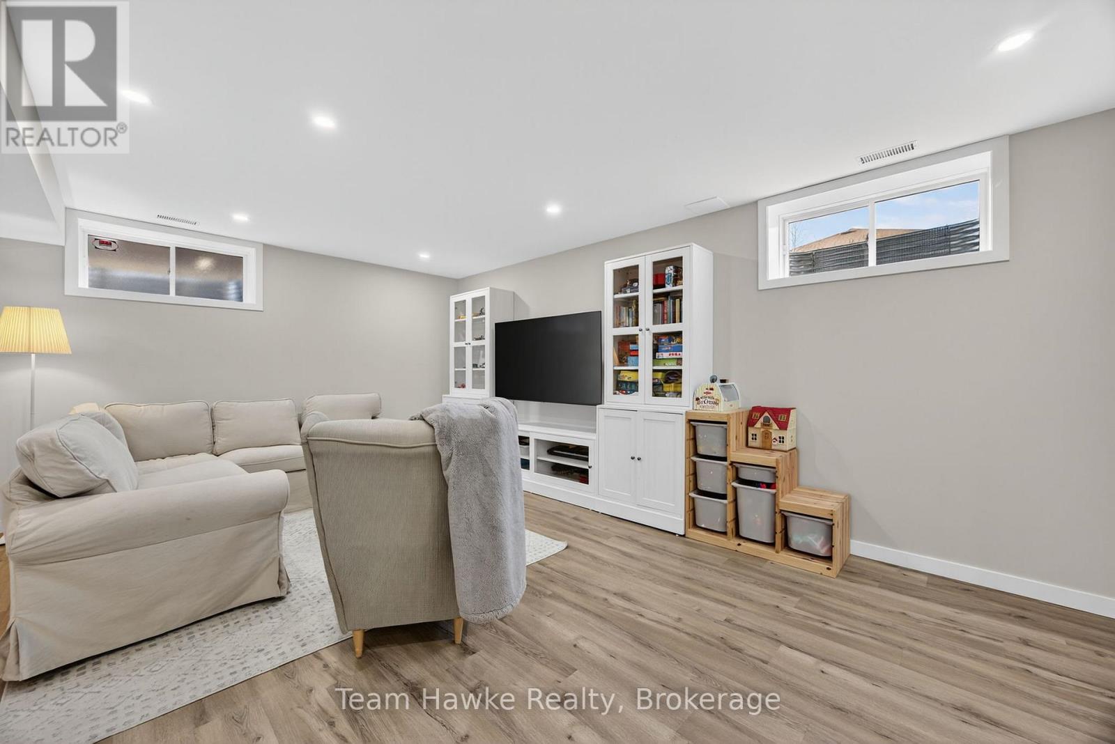 Pride of ownership shines throughout this 2,800 sqft finished up and down bungalow, in desirable Victoria Harbour. Offering 5 bedrooms and 3 full baths, this home sits on a fenced corner lot and features an oversized deck. The main floor includes 3 bedrooms, including a primary suite complete with a private ensuite featuring a soaker tub and separate shower. 9 ft ceilings, gas fireplace in the great room, spacious kitchen with a large island. The fully finished lower level adds exceptional versatility, offering 2 additional bedrooms, a den, a 3-piece bath, generous storage space, and a large recreation area. Additional features include gas heating with air conditioning and a private setting within the subdivision. Don't miss out! (id:64974)