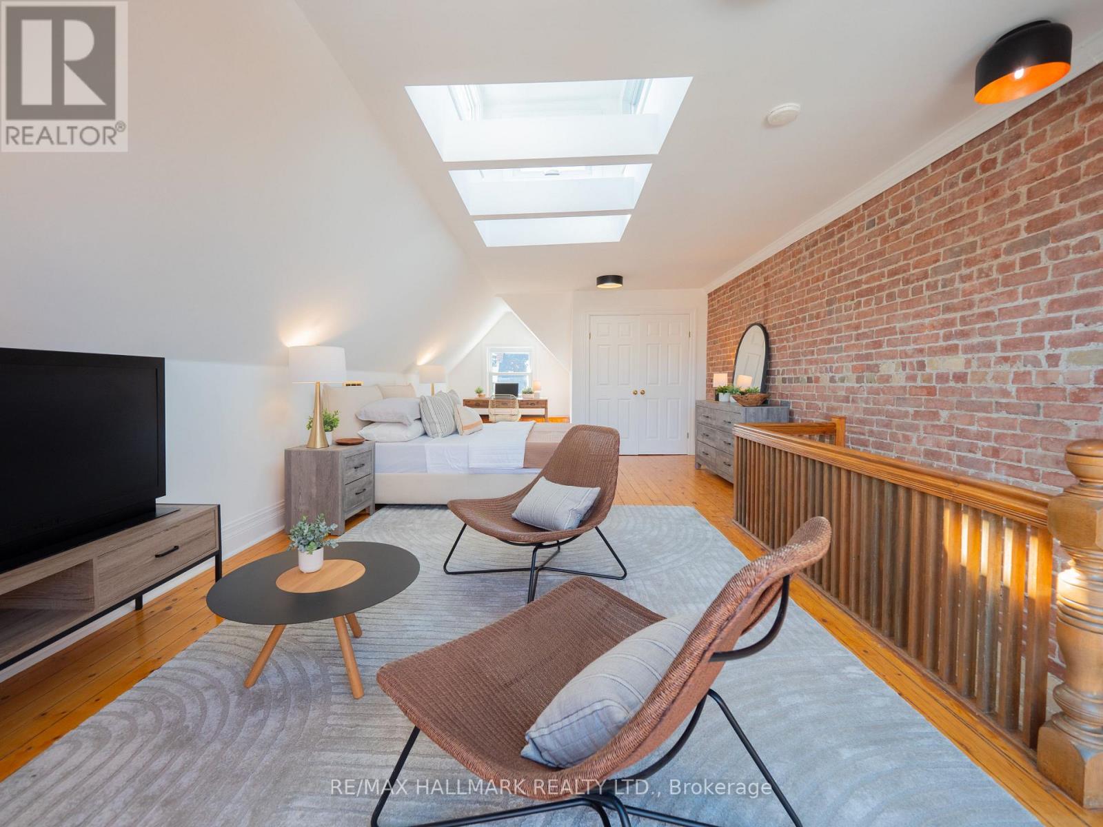 There's a reason people fall in love with Riverdale and never leave. It's the kind of neighbourhood where you actually know your neighbours. Where you walk to the Danforth on a Tuesday night because the pasta at that place is too good to resist, or you grab your coffee and wander up to Riverdale Park just because you can. That park - if you know, you know. People come from all over the city to catch those sunsets. The skyline laid out in front of you, the whole city glowing. It's one of those Toronto moments that never gets old. And when you live on Sparkhall, it's just part of your evening. That's the life this address gives you. Now step inside. The main floor wraps you in warmth immediately, refinished hardwood floors, a fireplace in the living room, exposed brick that adds all the character you'd hope for in a Riverdale home. The kitchen has been beautifully renovated with a centre island, quartz countertops, a stunning backsplash, and brand new top-of-the-line stainless steel appliances. It's the kind of kitchen that makes you want to cook, host, and linger. Walk out from here to your private, fully fenced backyard. Four full levels of beautifully finished living space. Four spacious bedrooms. Two renovated bathrooms. A high, finished basement that works as whatever you need it to be, a rec room, office, gym, all of the above. And then there's the third floor. An open-concept loft primary bedroom with soaring ceilings, exposed brick, skylights flooding the space with natural light and your own private fenced deck up in the treetops. It feels like a retreat. A genuinely peaceful, beautiful space that happens to be right in the heart of one of the city's most beloved neighbourhoods. Laneway parking for two cars with the potential to build a laneway house. In Riverdale. That's not nothing. Withrow PS catchment. Earl Grey Senior Public. Riverdale Collegiate. (id:64974)