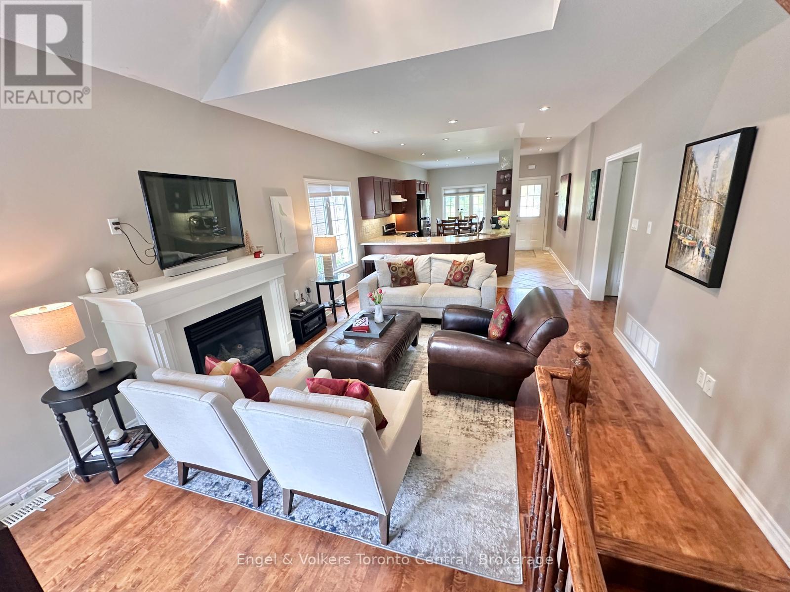 WINTER LEASE OPPORTUNITY! Welcome to this immaculate bungalow-loft end-unit townhome, perfectly situated on the 6th hole of Blue Mountain Golf Course and just minutes from downtown, ski hills, golf, and scenic trails. This bright and spacious 3-bedroom townhome offers main floor living with a primary suite featuring a newly renovated 4-piece ensuite and walk-in closet. The open-concept layout boasts a partial vaulted ceiling in the living room, a cozy dining nook, an eat-in kitchen with stainless steel appliances, hardwood floors, main floor laundry, and a gas fireplace in the living room, ideal for both entertaining and everyday living. Upstairs, the loft provides two additional bedrooms, a full bath, and versatile open space perfect for a home office or lounge. Make this property your mountain retreat this winter season. Please note the garage is not included with the lease Don't miss outschedule your showing today! (id:64974)
