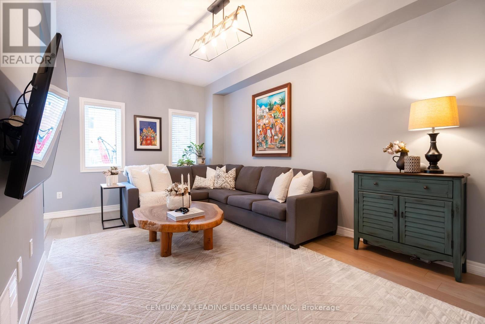 Welcome to this beautiful 3 bedroom townhouse nestled in the highly sought-after community of Stouffville. Offering 4 washrooms and thoughtfully designed living space, this home combines modern finishes with exceptional functionality. Step inside to find elegant hardwood flooring throughout the main and second levels, leading into a stylish kitchen featuring granite countertops, stainless steel appliances, a tasteful backsplash, and a bright eat-in area with walkout to the backyard-perfect for everyday living and entertaining. The inviting living room showcases an electric fireplace with a stunning mantle, creating a warm and sophisticated focal point. Upstairs, the spacious primary bedroom offers a large walk-in closet and a luxurious 4-piece ensuite, providing a private retreat. Two additional well-sized bedrooms complete the upper level. The fully finished basement expands your living space, a full washroom, durable vinyl plank flooring, and ample storage-ideal for guests, a home office, or recreation. Enjoy outdoor living in the private backyard featuring a patio, green space, and a remote-controlled awning-perfect for relaxing or hosting gatherings. Complete with a single car garage and parking for up to 4 vehicles. Conveniently located close to top-rated schools, parks, and just a short drive to Highway 407 and the Old Elm GO Station for easy commuting. A fantastic opportunity to own a turnkey home in a family-friendly neighbourhood! (id:64974)