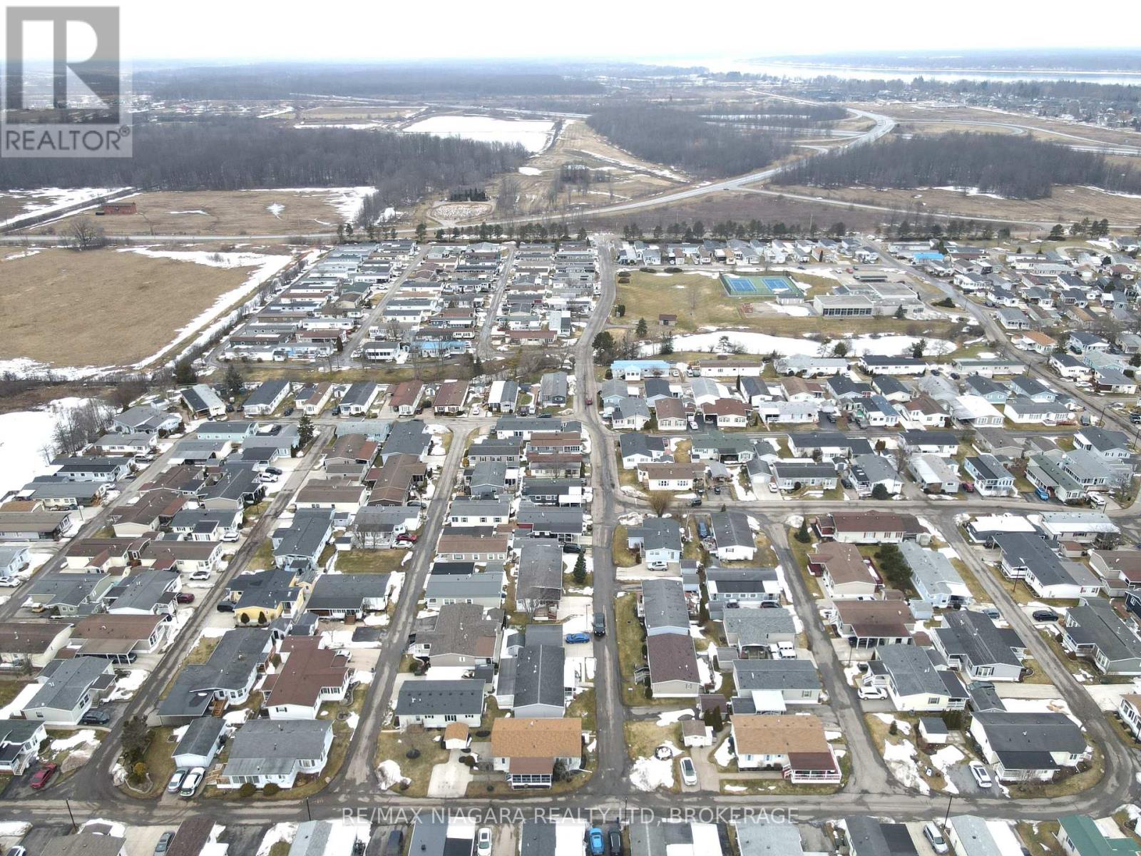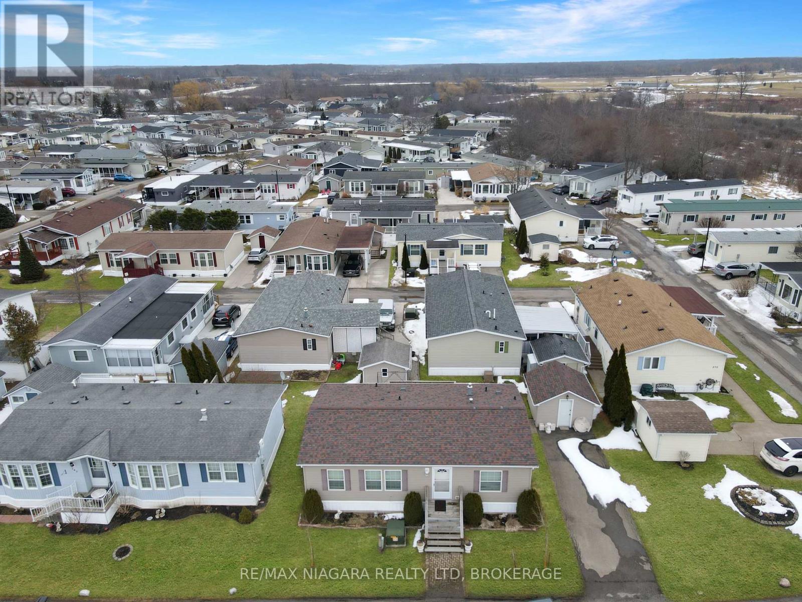 Located in Parkbridge's Black Creek Adult Lifestyle Community in Stevensville, ON. This gated neighbourhood is known for its peaceful natural surroundings-mature trees, a tranquil pond and creek, and sweeping countryside views-yet remains only minutes from the QEW, the U.S. border, and Lake Erie's shoreline. At the centre of it all is the impressive 12,000 sq ft Recreation Centre, offering heated indoor and outdoor pools, a hot tub, sauna, library, craft and games rooms, kitchen facilities, plus indoor and outdoor shuffleboard courts. Outdoor enthusiasts will appreciate the tennis courts, scenic walking and biking trails, and an active social calendar with options such as yoga, bingo, aerobics, and line dancing. This 1,092 sq ft bungalow features an open-concept layout ideal for comfortable living. The bright eat-in oak kitchen includes tile flooring and an island, flowing into a spacious living/dining area finished with vinyl plank flooring. Sliding doors lead to a generous back deck. The home offers two bedrooms and two full bathrooms, including a 3-piece bath with shower and 5-piece ensuite with double sinks and a walk-in closet. Additional highlights include front and rear decks, a full-size storage shed, and a double driveway. Located just straight down Oriole to Buffin from the main entrance. This is a land-leased community with an estimated monthly site fee of $949.14 (including taxes); water is billed quarterly at approximately $80. Recent updates include a new roof (2023) and a microwave and dishwasher installed in November 2024. (id:64974)