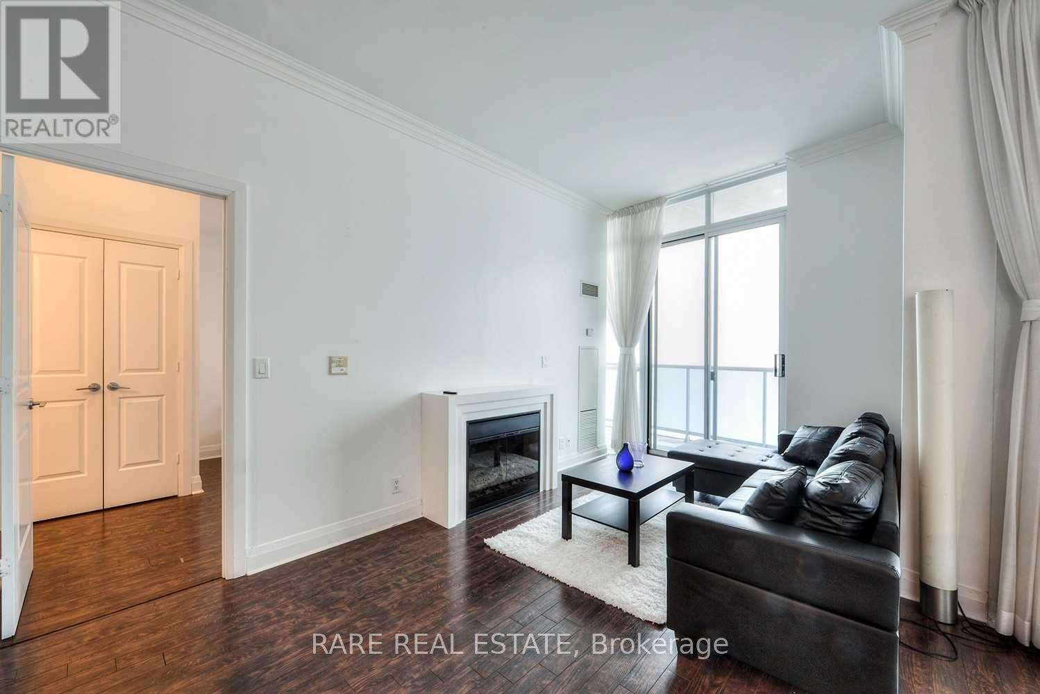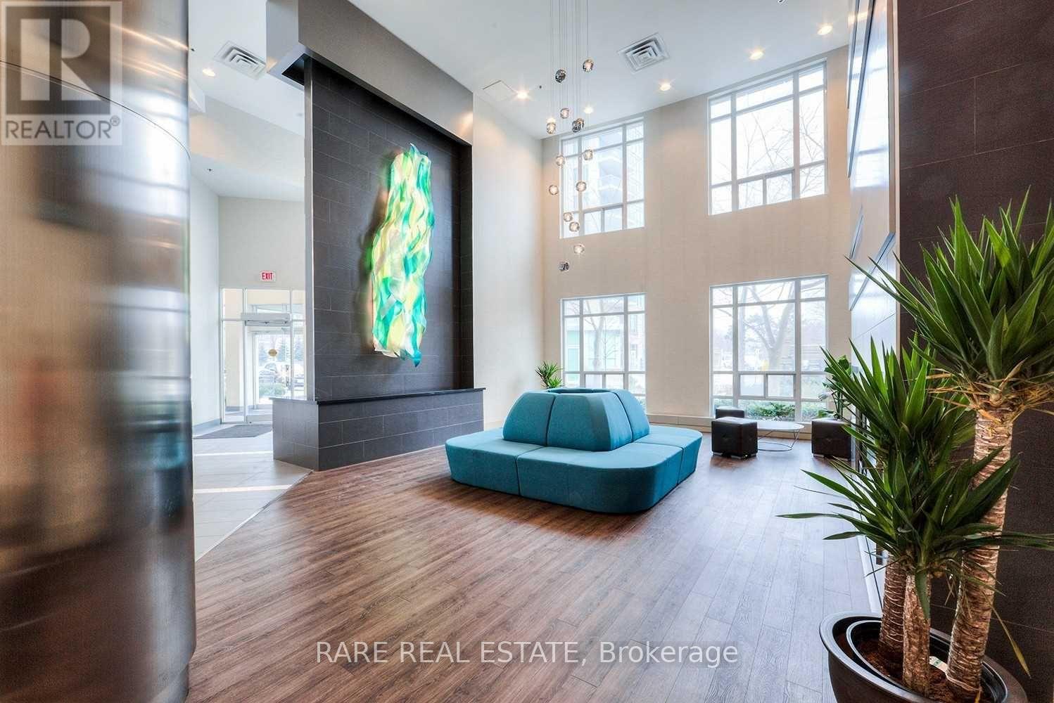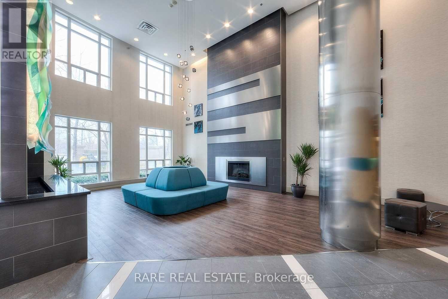 1 parking spot and 2 lockers included. Heat, hydro, water included. Bright lower penthouse with 10 ft ceilings and floor-to-ceiling windows bringing in tons of natural light. Spacious 2+1 bedroom, 2 bathroom layout with hardwood floors and a gas fireplace. Kitchen features stainless steel appliances, granite countertops, backsplash, and breakfast bar. Primary bedroom includes a walk-in closet and a large 5-piece ensuite with separate shower and tub. Enclosed den with double doors - perfect for a home office. Enjoy a private panoramic balcony with city views. Ensuite laundry. Enjoy the clubhouse amenities including indoor/outdoor pool, gym, basketball court, and party room. Prime location just minutes to Square One, highways, and transit. (id:64974)