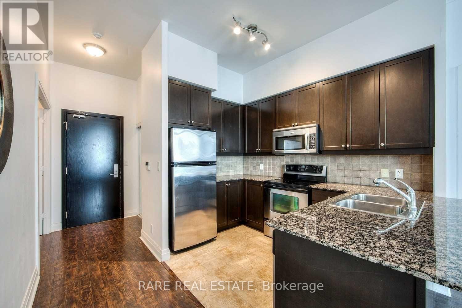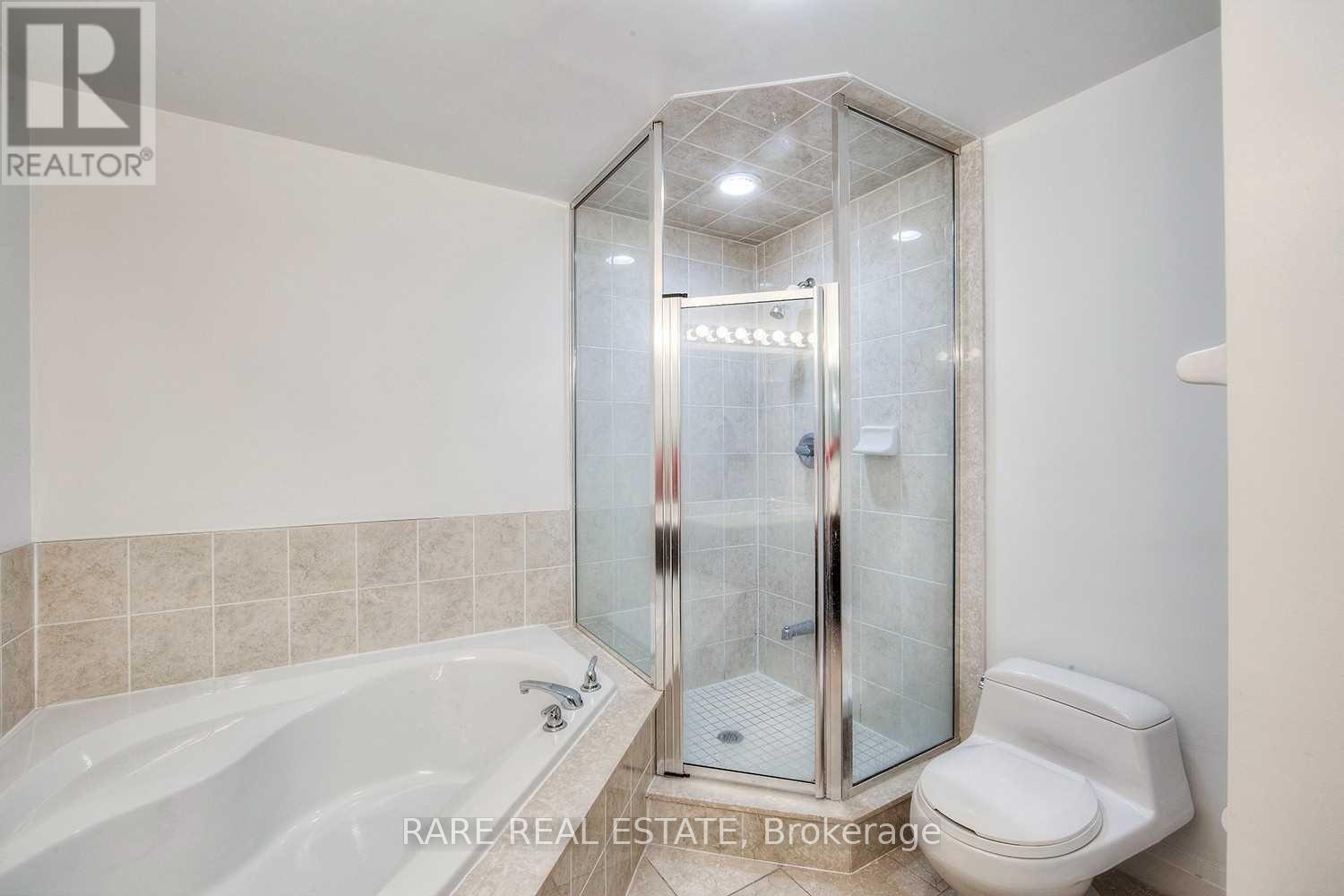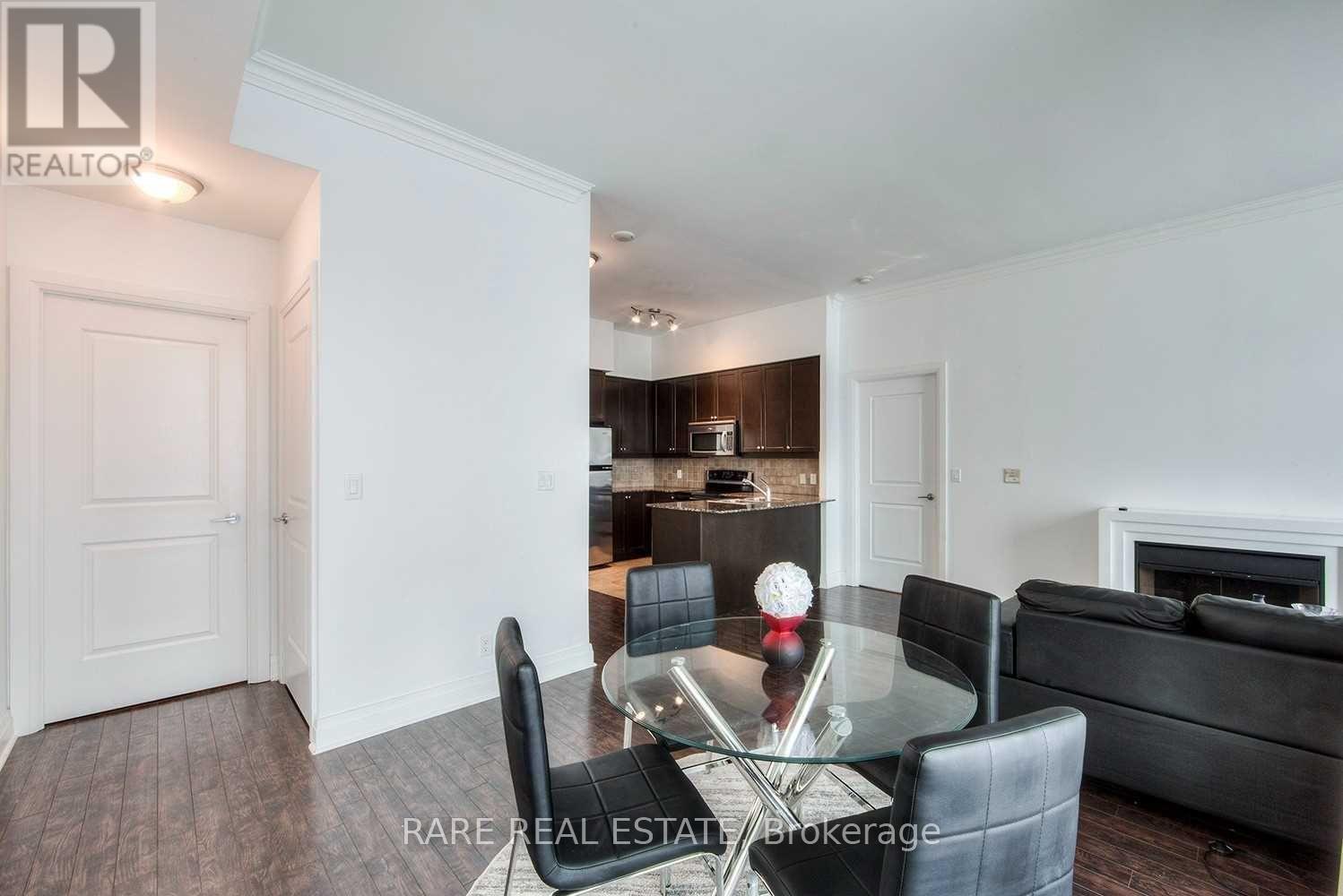 1 parking spot and 2 lockers included. Heat, hydro, water included. Bright lower penthouse with 10 ft ceilings and floor-to-ceiling windows bringing in tons of natural light. Spacious 2+1 bedroom, 2 bathroom layout with hardwood floors and a gas fireplace. Kitchen features stainless steel appliances, granite countertops, backsplash, and breakfast bar. Primary bedroom includes a walk-in closet and a large 5-piece ensuite with separate shower and tub. Enclosed den with double doors - perfect for a home office. Enjoy a private panoramic balcony with city views. Ensuite laundry. Enjoy the clubhouse amenities including indoor/outdoor pool, gym, basketball court, and party room. Prime location just minutes to Square One, highways, and transit. (id:64974)