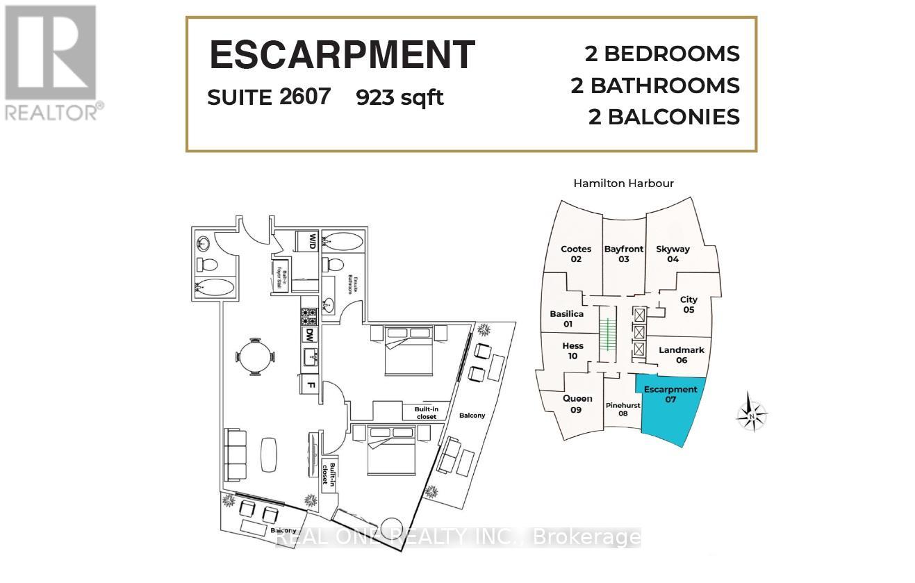 !!! Promotion: Enjoy one month of free net rent (applied to the 11th month) and three months of free parking when you sign a one-year lease!!! Marquee Residence Is One Of The Most Sought-After Luxury Condo Buildings In The Heart Of Downtown Hamilton A Modern, 5-Year-New Landmark And The Second-Tallest Building In The City. This 923 sqft Spacious Two-Bedroom Corner Unit On The 26th Floor Offers Two Oversized Balconies With Unobstructed South And East Views Overlooking The Escarpment, The Lake and The City. A Sleek Kitchen Featuring Quartz Countertops, Backsplash, European-designed Custom Cabinetry And Stainless-Steel Appliances. Vinyl Flooring Throughout. Two Bright Bedrooms With Built-In Closet Organizers, And Large Windows That Fill The Home With Abundant Natural Light. In-Suite Laundry Included. Residents Enjoy Top-Notch Amenities, Including A Gym, Yoga Studio, Two Party Rooms,Complete With Kitchenette, Lounge Chairs, Fireplace And Billiards Table, And An 8th-Floor Outdoor Terrace Ideally Located Just One Block From Hess Village, Nations Supermarket, Samir Supermarket, Jackson Square, And The New McMaster Family Practice. HSR And GO Bus Stops Are Right At Your Doorstep. Close To McMaster Children's Hospital, St. Joseph's Healthcare Centre, And Hamilton General Hospital. No Smoking Building. Other Units With Various Sizes And Layouts Are Also Available, Offering Sweeping Views Of The Waterfront, Escarpment, And Downtown Skyline. Indoor Parking Available at Extra $150/Month. Available Immediately. Flexible Possession. (id:64974)