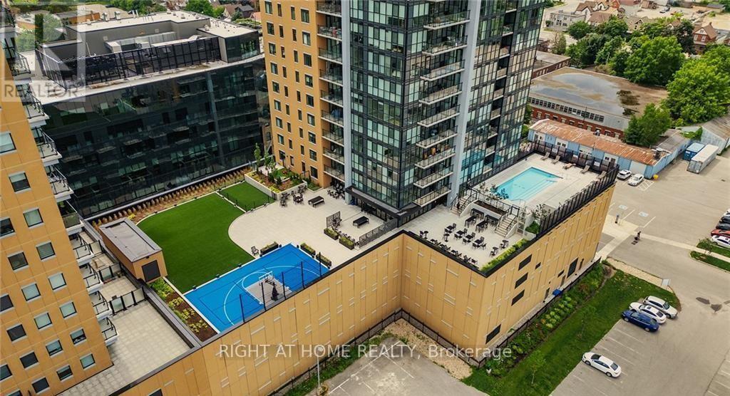 Enjoy 587 sq. ft. of premium living space with vinyl flooring, stainless steel appliances, and granite countertops.Top-tier amenities include a rooftop pool, sports court, urban park, BBQs, fitness center, yoga studio, and pet run.Water and heat are included for your convenience.Concierge service adds luxury and ease to your lifestyle.Tenant is responsible for electricity (set up with Grid). Parking is available at Bramm St. Yards or through building management. Lot 24 (Bramm Street Yards), located directly behind the building. For January 2026, the monthly rate for this lot is $169.90 (id:64974)