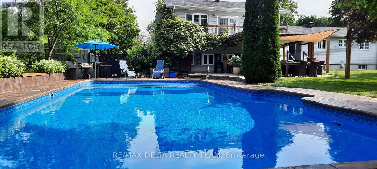 Set on a beautifully landscaped corner lot with a private, fully hedged yard, this impressive 4-bedroom, 2-bath split-level home offers the perfect balance of space, comfort, and outdoor living. Complete with a double-car garage and an exceptional backyard retreat, this home is ideal for families and entertainers alike. The main level features warm hardwood floors and a bright, functional layout. The updated kitchen is both stylish and practical, showcasing quartz countertops, stainless steel appliances, and ample cabinetry, flowing seamlessly into the living and dining areas. Three generously sized bedrooms and a full bathroom complete this level. The upper level is dedicated to a spacious primary suite, offering a true private retreat with a separate sitting area, walk-in closet and a luxurious 5-piece ensuite. Downstairs, the lower level provides a large recreation room, perfect for movie nights, a home gym, or play space, along with laundry and plenty of storage. Step outside to your backyard oasis, designed for relaxation and entertaining. Enjoy summer days by the in-ground pool, gather around the fire pit, or host friends on the patio with pergola, all within a serene and private setting. With its thoughtful layout, beautiful outdoor spaces, and desirable location, 261 Agathe Street is a fantastic opportunity to enjoy comfortable family living in the heart of Rockland. (id:64974)