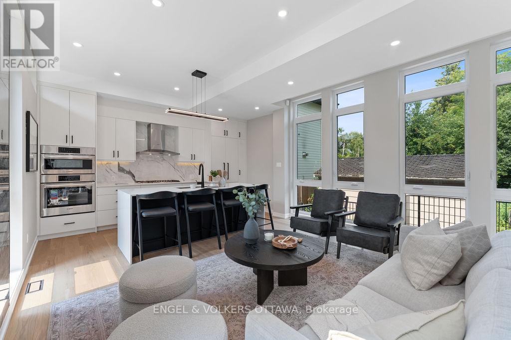 Set in the heart of Westboro, 261 Dovercourt presents a rare opportunity to own a custom-built luxury residence offering over 2,450 sq. ft. of thoughtfully designed living space from top to bottom. From the moment you arrive, the striking modern façade sets the tone for what awaits inside. The main level features soaring ceilings, oversized windows, and rich hardwood flooring throughout, filling the home with natural light. The open-concept layout is ideal for both everyday living and entertaining, anchored by a gas fireplace with a stunning stone surround. The chef-inspired kitchen is equipped with built-in Bosch appliances, quartz countertops, and a large island with ample seating. The second level offers three well-proportioned bedrooms along with spa-inspired bathrooms finished with quality materials throughout. The top-floor loft-referred to as the Serenity Suite-adds exceptional versatility and can serve as a primary retreat, home office, or additional living space. Step out onto the private rooftop terrace and enjoy unobstructed views along with an elevated outdoor experience. This property features three distinct outdoor spaces, including a balcony and rooftop terrace, providing multiple options for relaxation and entertaining. The lower level includes a private entrance, kitchenette, and full bathroom-ideal for a secondary suite, guest accommodations, or recreational use. Constructed with a durable steel frame and metal roof, and backed by a transferable Tarion warranty, this home offers both long-term reliability and peace of mind. An exceptional opportunity for buyers seeking modern design, functional living, and a prime Westboro location just steps to shops, restaurants, and everyday amenities. (id:64974)
