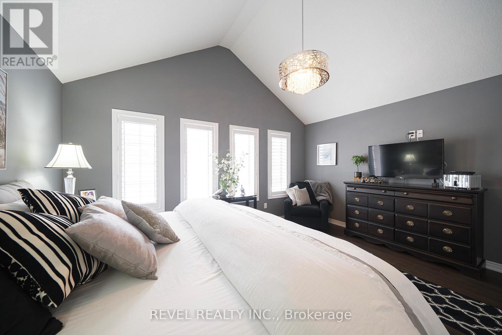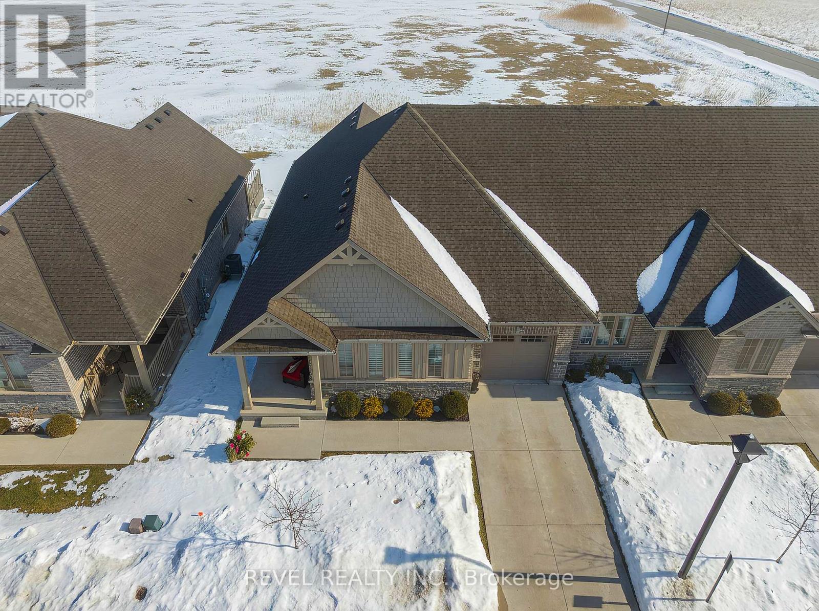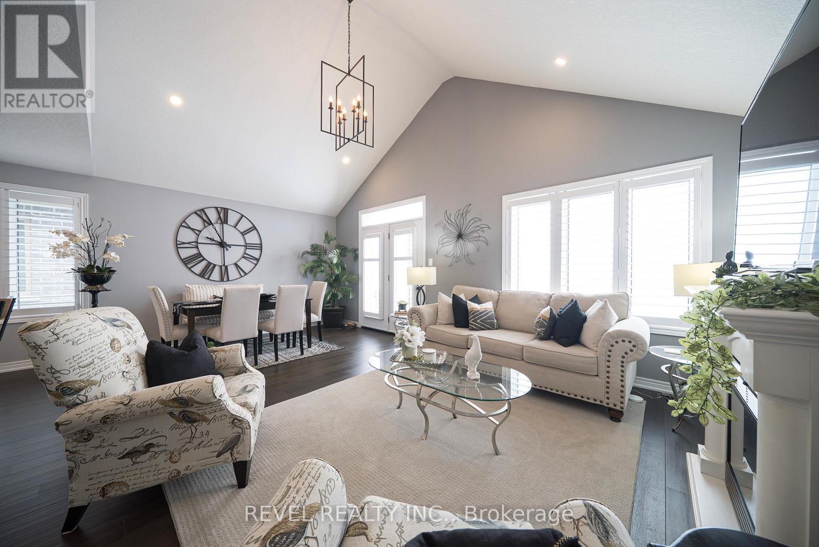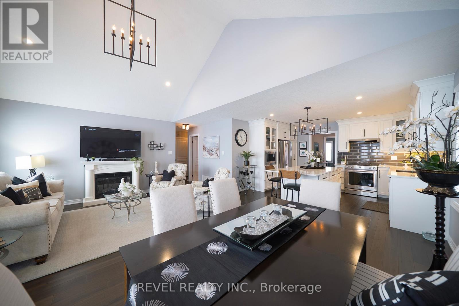 Welcome to 261 Schooner Drive in beautiful Port Dover - a stunning end-unit freehold (POTL) townhome offering stylish, low-maintenance bungalow living. This 2-bedroom, 2-bathroom home features a bright, thoughtfully designed layout just minutes from the lake, beach, golf and the charming shops and restaurants in their downtown core.The main floor offers a desirable open-concept design, enhanced by vaulted ceilings (LR/ DR), engineered hardwood flooring and California shutters throughout the principal rooms and bedrooms. The inviting front entrance leads into an upgraded white shaker kitchen complete with quartz countertops, subway tile backsplash, under-cabinet lighting, stainless steel appliances including a 5-burner gas stove, and a spacious centre island with pendant lighting. The kitchen flows seamlessly into the dining area and great room, creating an ideal space for both everyday living and entertaining. Patio doors extend the living space to a private 16' x 12' concrete patio with no current rear development behind.The spacious primary bedroom offers vaulted ceilings, a walk-in closet and a beautifully appointed ensuite with soaker tub and frameless glass shower. A second bright bedroom and full guest bathroom provide comfortable space for visitors or a home office. Main floor laundry and inside access to the single-car garage add everyday convenience.Ideally located near The Links at Dover Coast Golf Club, David's Restaurant & Spa and the Port Dover waterfront, this meticulously maintained bungalow is perfect for downsizers, retirees or anyone seeking turnkey living in a sought-after lakeside community.Enjoy life by the lake! It's a serious upgrade in lifestyle. (id:64974)