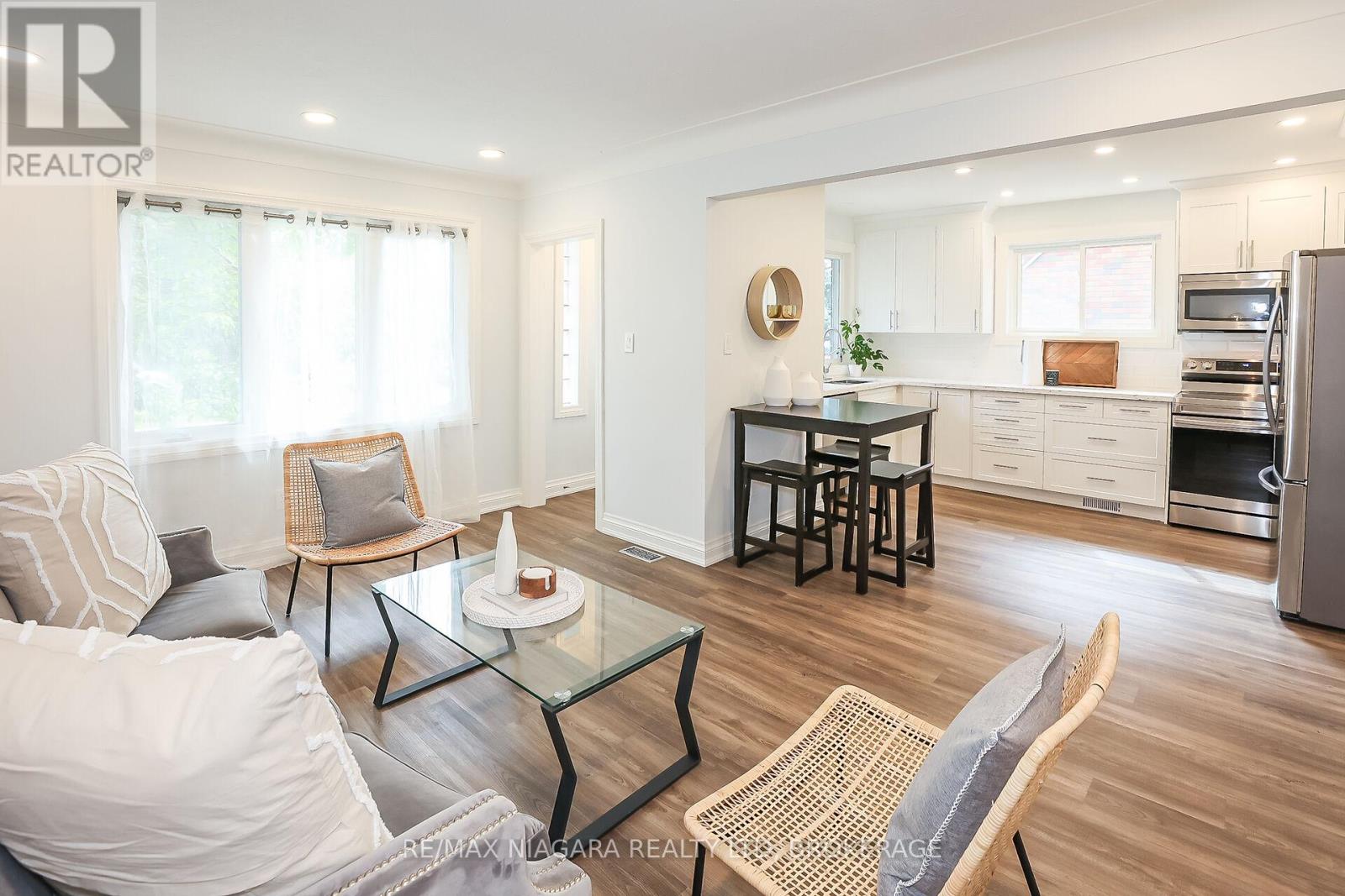 A gem of a bungalow in beautiful St. Catharines! Walk into the outstanding renovated and open concept main living space, with all new floors and bright new windows throughout, custom kitchen with beautiful quartz counter tops and all new appliances (which are included). Main floor also features newly renovated four piece bath and three spacious bedrooms that all have closets. A separate side entrance allows for easy access to the backyard or could serve as a perfect entrance into the basement. Basement is currently partly finished, is very dry and has over 7 feet of head clearance making it the perfect basement to finish for additional living space, rental income or multi generational use! Extra deep driveway leads to a detached garage and almost fully fenced yard. Some other updates include furnace in 2020, wiring and plumbing and Roof in 2018. This location is second to none and in the hub of the city, close to the highway, public transit, shopping, schools, professional buildings and so much more! (id:64974)