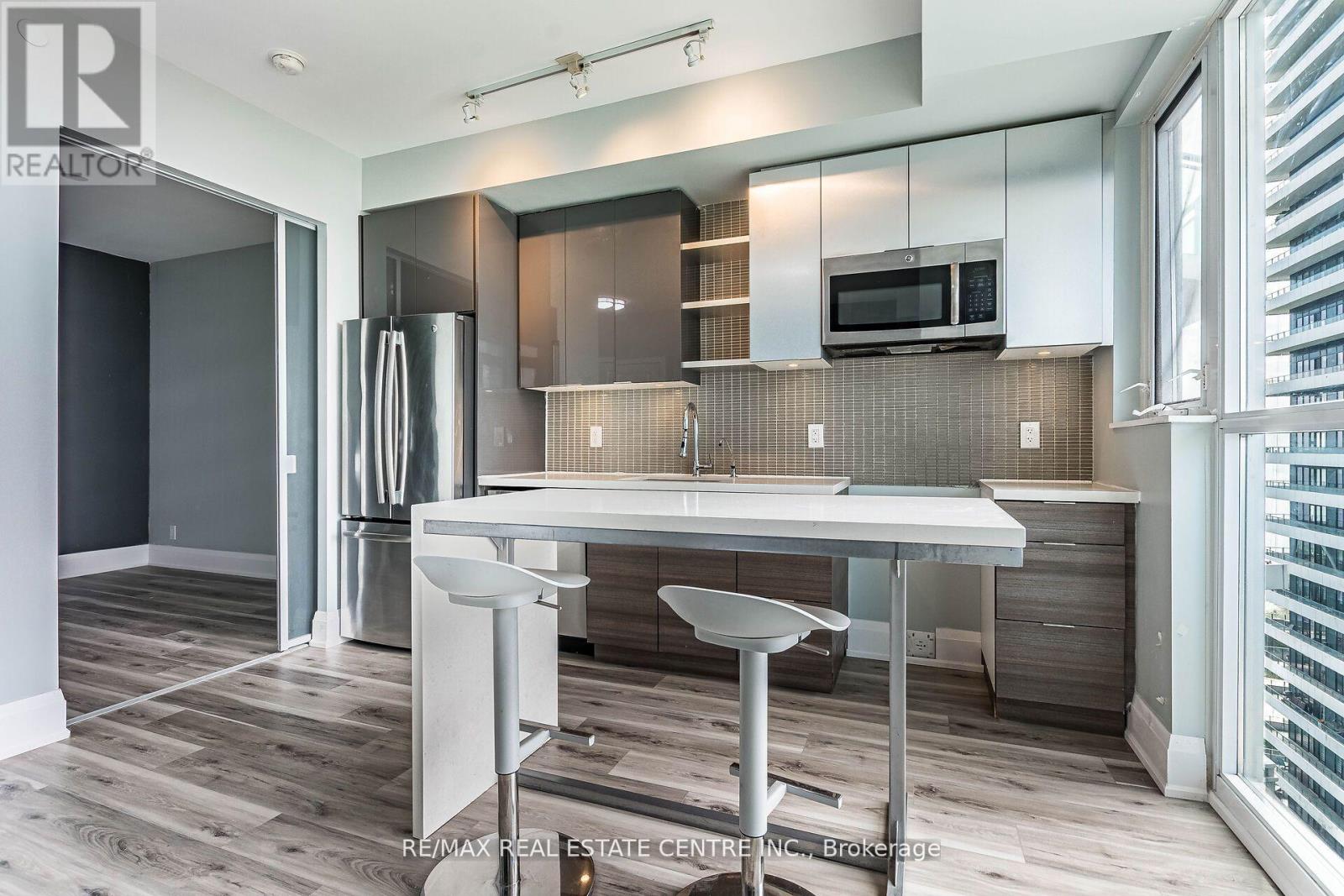 LUXURY UPSCALE EXECUTIVE WATER FRONT CONDO., LOWEST PRICED TWO BEDROOMS IN THE BUILDING.HIGH 26TH FLOOR OFFERS SOUTH WEST VIEW OF THE WATER AND MARINA. TWO GOOD SIZED BEDROOMS, TWO FULL BATHS, OPEN BALCONY, ENSUITE LAUNDRY, KITCHEN ISLAND, BUILT-IN APPLIANCES, NEW VINYL FLOORING IN THE ENTIRE UNIT, FRESHLY PAINTED. HIGH 9 FT. CEILING. ONE PARKING AND ONE LOCKER INCLUDED. 24 HOURS LIVE GUARDS. (id:64974)
