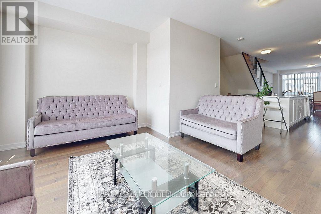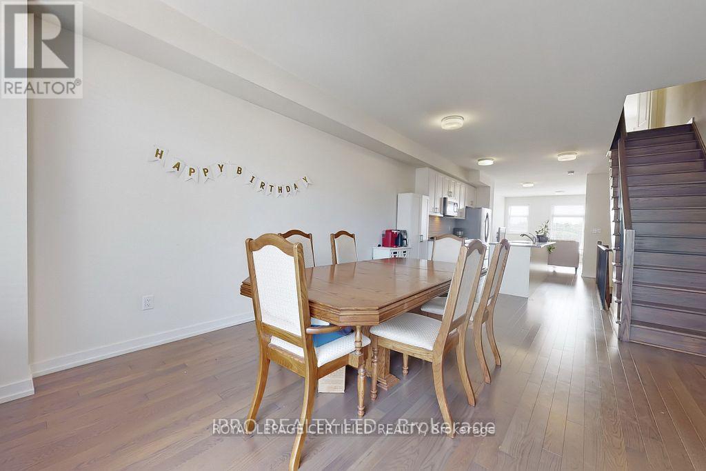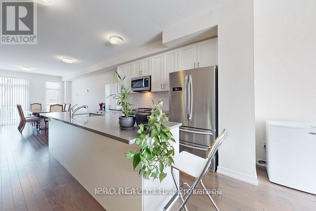 This gorgeous 1,990 sq. ft. townhome perfectly blends modern design with practicality and functionality, featuring three spacious bedrooms plus a dedicated main-floor home office and four bathrooms. The bright, open-concept layout is enhanced by thousands in upgrades, including elegant hardwood stairs and flooring, 9-foot ceilings on the second level, and a beautiful large kitchen equipped with sleek quartz countertops, stainless steel appliances, and ample cabinetry. Conveniently located within walking distance to a vibrant plaza featuring Tim Hortons, banks, restaurants, a Dollar Tree, and a gym, the home also offers an ideal commuter location with a short drive to both Highway 407 to the north and Highway 401 to the south. (id:64974)