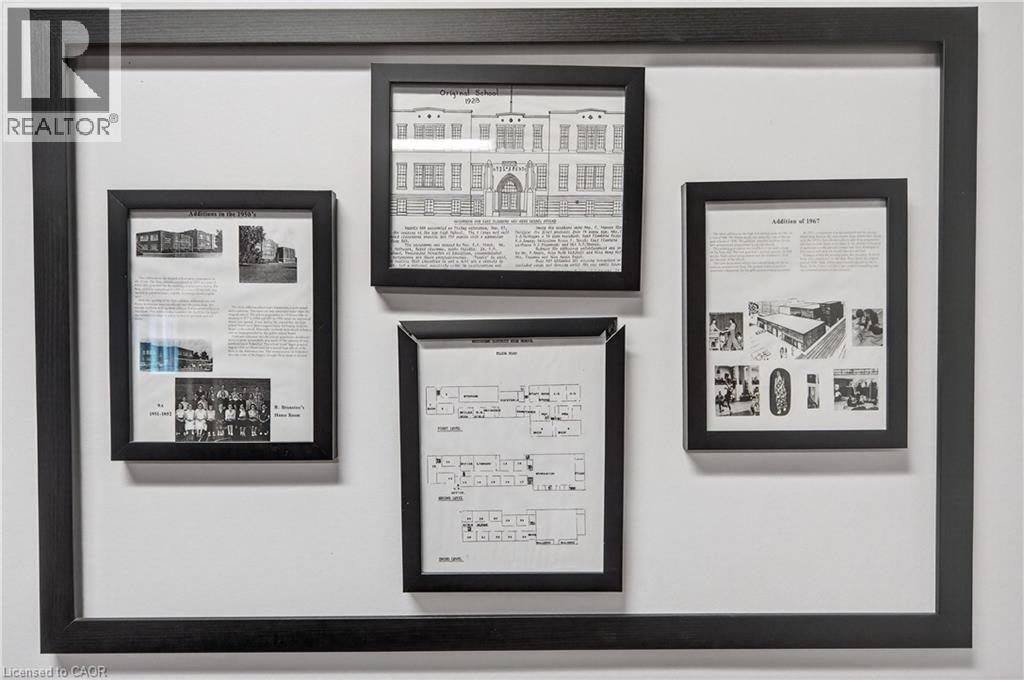 Welcome to this sun-filled, beautifully appointed 1+1 Bedroom/Den Condo in the highly sought-after historic Waterdown High School building—an iconic circa 1923 landmark, condo conversion registered 2000 - known for its excellent management and meticulous upkeep. Soaring 10-foot Ceilings enhance the bright, Open-Concept Living and Dining area, creating an inviting and spacious feel. The Kitchen is both stylish and functional, featuring Stainless Steel Appliances, a Double Sink, and a convenient Breakfast Bar that flows seamlessly into the main living space. The generous Primary Bedroom offers a Double Closet with built-in shelving, while the Den with Double French Doors provides the perfect setup for a Home Office or Guest retreat. An oversized Laundry/Utility Room adds incredible versatility with Front Load Washer and Dryer and abundant storage. Additional highlights include owned Underground Parking and an Exclusive Storage Locker. Enjoy a private North-West facing Balcony with views of nearby amenities and stunning sunsets, all just steps from shopping and dining. Move-in ready and offering exceptional value, this is a rare turn-key opportunity not to be missed. (id:64974)