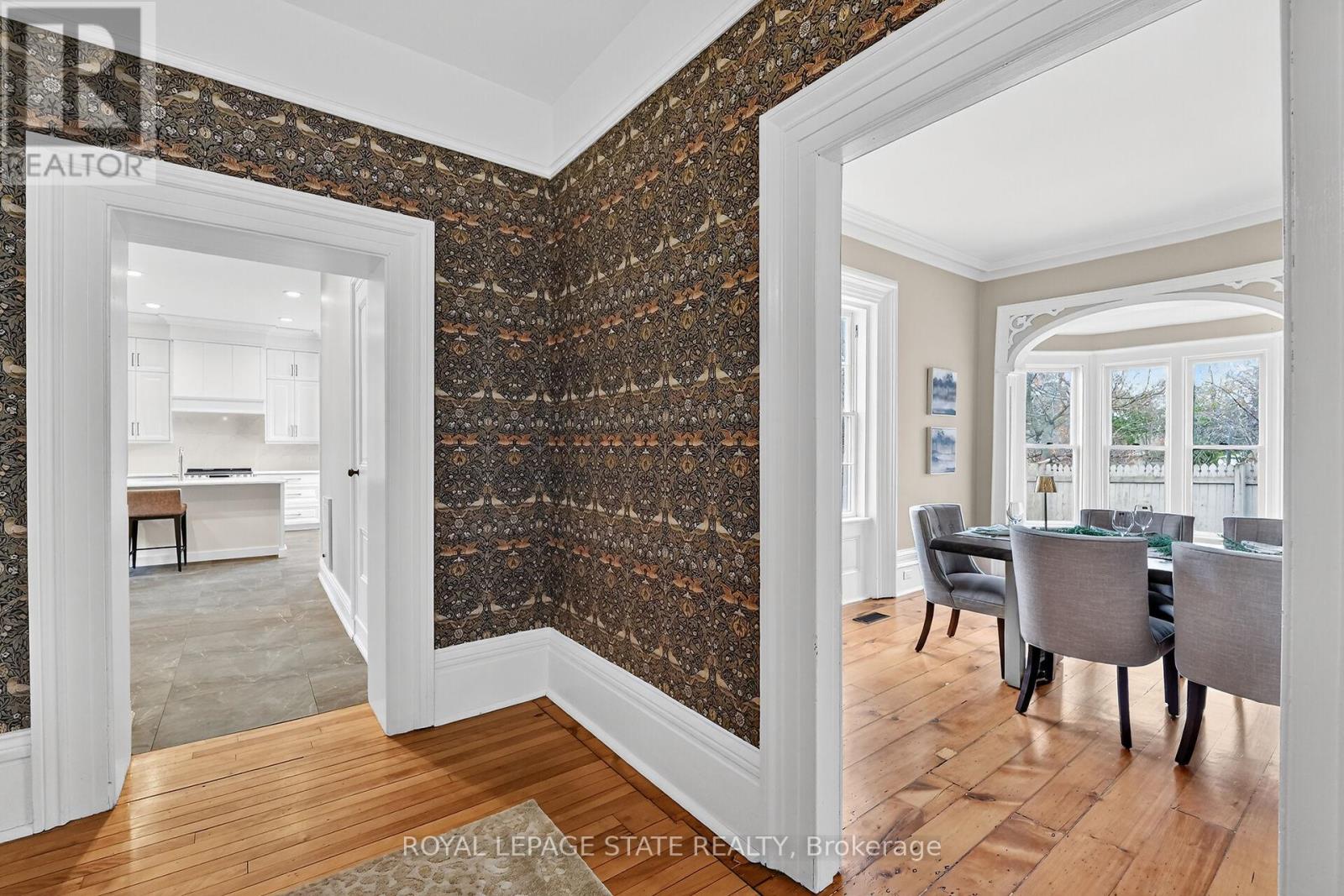 HISTORIC CHARMER STEPS FROM TOWN - Welcome to Nixon Hall, a Grimsby landmark since 1854, offering a rare blend of heritage and modern luxury. This magnificent home boasts over 3,600 square feet of recently upgraded finished living space, marrying historical character with contemporary comfort, all within walking distance of local amenities. Step inside the main floor to find soaring 10-foot ceilings and exquisite original millwork that evoke a sense of timeless elegance. The space features a seamless flow from a bright living room with elegant crown moulding into a cozy parlour through French doors, each space anchored by a charming, original (as is) fireplace. A large dining room with its own original fireplace (as is) provides the perfect setting for gatherings. The heart of the home is the stunning, newly designed kitchen, a chef's delight with extended height cabinetry, solid surface countertops, a practical breakfast bar, and high-end stainless steel appliances. A convenient 2-piece powder room and a practical main floor office with a dedicated side porch complete this level. Upstairs, the grandeur continues with four generously sized bedrooms, one offering ensuite privilege to a 3-piece bath with a charming clawfoot tub. A recently upgraded 4-piece bathroom, featuring a beautiful glass shower, serves the other rooms. The second floor also includes a convenient laundry room and an additional small bedroom, office, or den space overlooking the private backyard. Nixon Hall has been meticulously maintained and upgraded, with recent improvements including cedar shake shingles (within 5 years), professional sandblasting of the entire exterior, extensive interior and exterior painting, and significant landscaping enhancements, including repairs to the historic exterior porches. This is more than a home; it's a piece of Grimsby's history, awaiting the next family to fill its halls with a lifetime of memories. (id:64974)