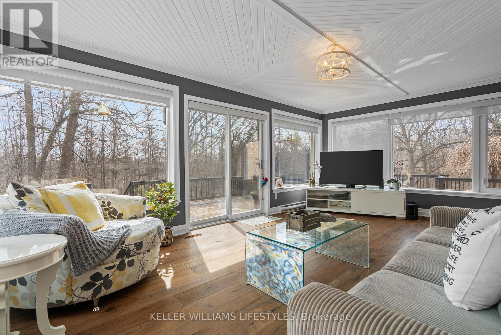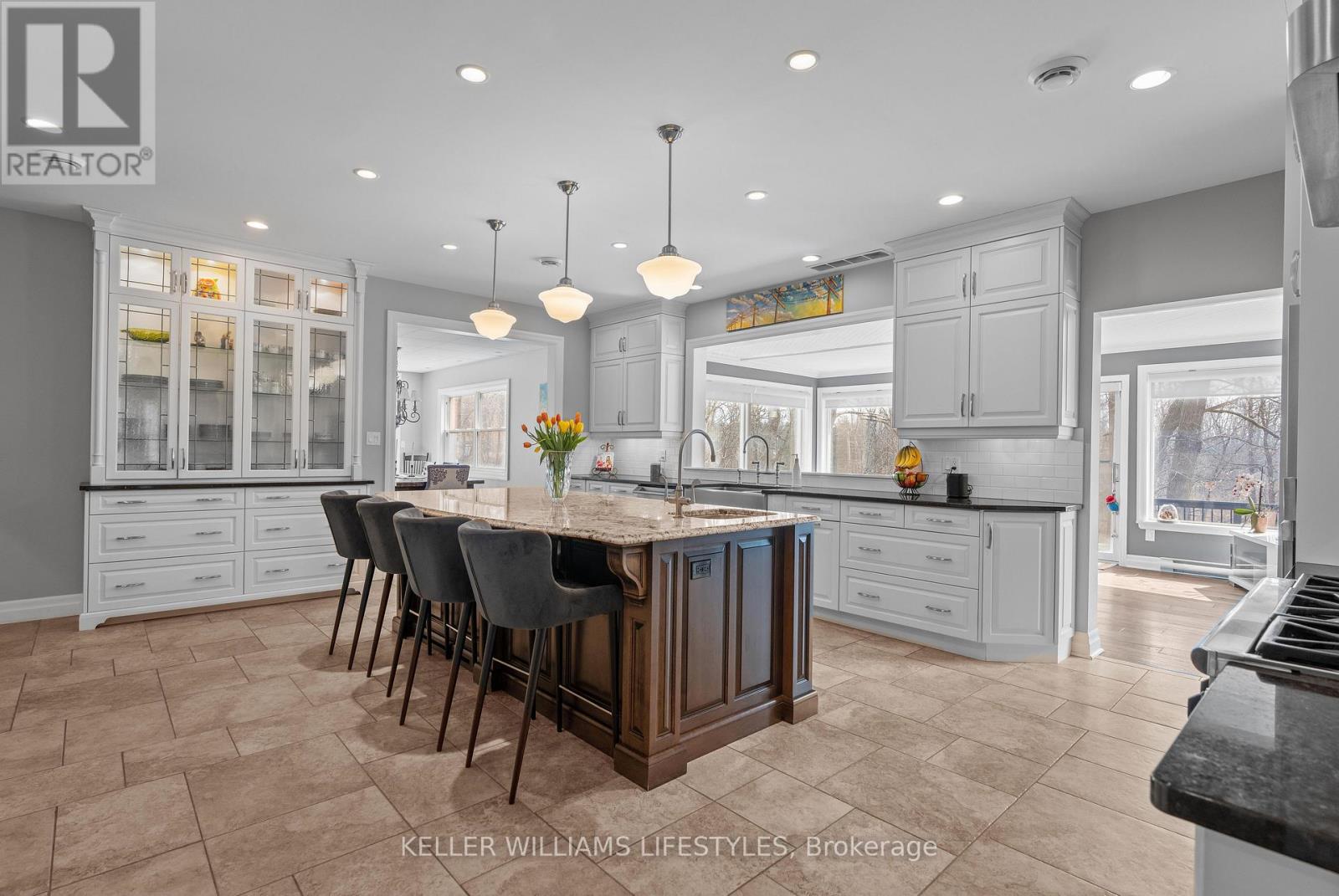 Welcome to 262 Pinetree Lane - an estate-worthy residence built without compromise, offering nearly 8,000 sq. ft. of finished living space on approximately 1.5 beautifully manicured acres. Tucked into an exclusive enclave and backing onto protected conservation lands, this remarkable property delivers exceptional privacy, scale, and sophistication - all just minutes from London with convenient 402/401 access.The stately Georgian-inspired exterior opens to a soaring, light-filled foyer with sweeping views that set the tone for the home's elegant yet functional design. At the heart of the main level is a chef's kitchen featuring granite countertops, premium cabinetry, and high-end appliances, seamlessly flowing into a sun-drenched four-season sunroom with tranquil forest views and walkout access to an expansive rear deck - ideal for entertaining or quiet mornings surrounded by nature.Formal living and dining rooms provide timeless entertaining spaces, while a games room and a private executive office or main-floor bedroom add everyday versatility. The home offers five generously sized bedrooms, most with ensuite privileges, along with six bathrooms, dual staircases, and multiple living areas designed to adapt to your lifestyle.The fully finished lower level elevates the experience with a media centre, custom bar, gym, and a secondary office with kitchenette - making this home exceptionally well suited for multi-generational living, a private in-law suite, or the potential creation of accessory or secondary dwelling units. Whether you're accommodating extended family, exploring income opportunities, or simply enjoying the space for yourself, the flexibility here is truly unmatched.This is a rare offering that combines estate living in a peaceful country setting with the convenience of nearby urban amenities.List of improvements available upon request. Potential grants may be available for ADU/SDU creation in Strathroy-Caradoc. (id:64974)