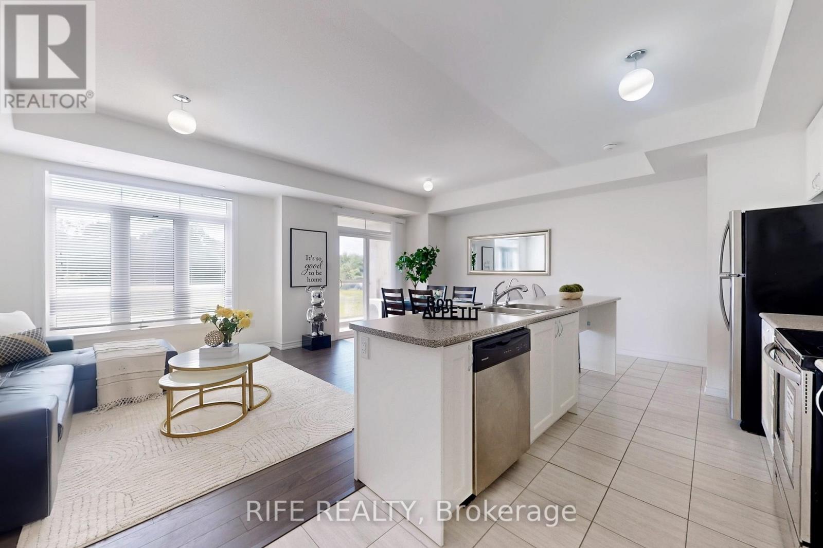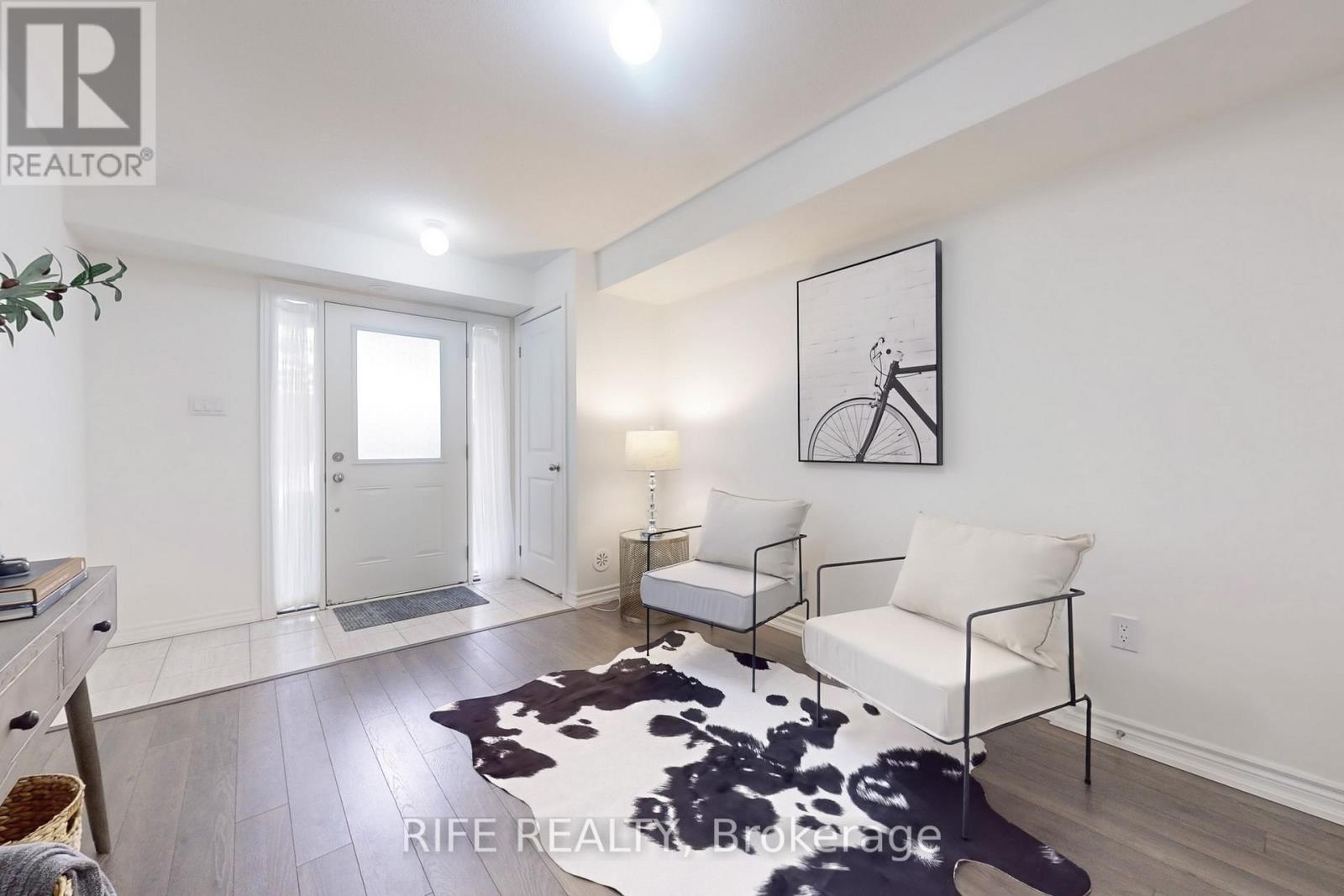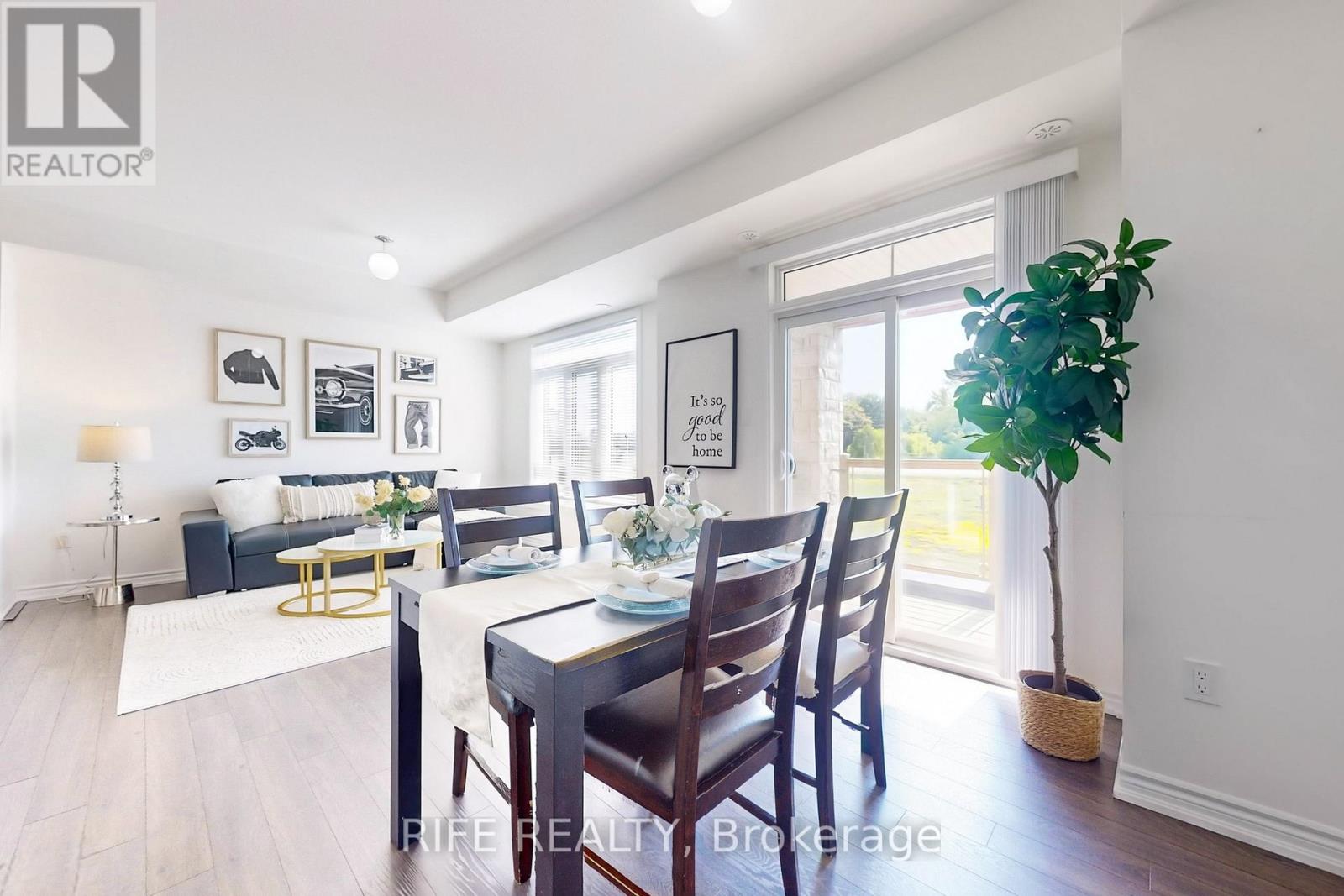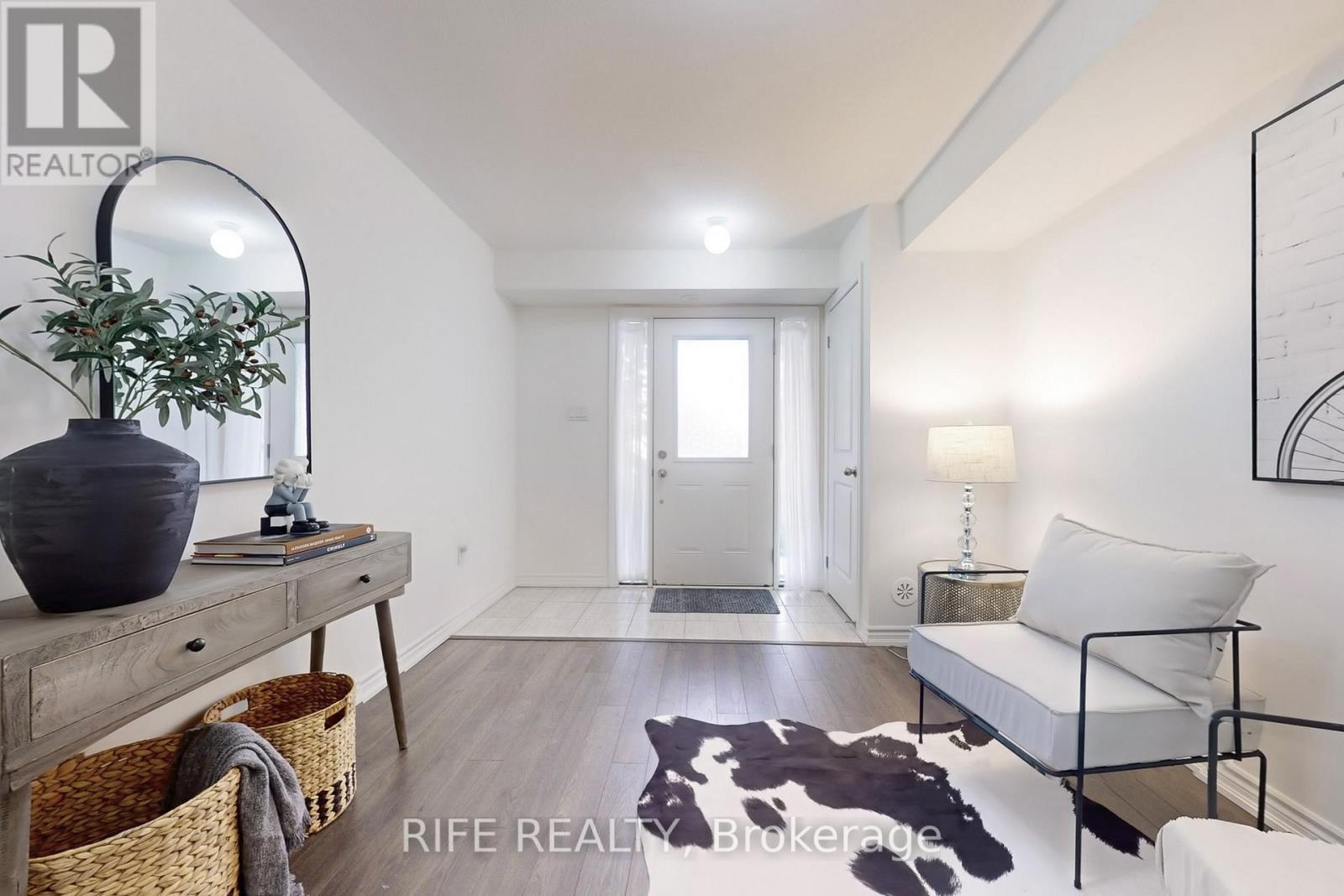 Special End-units in the community (Approx. 1400 Sqft Above Grade), this stunning 3-bedroom townhouse feels like a model home and is loaded with premium upgrades. Enjoy all-hard surface flooring throughout including engineered laminate and solid hardwood stairs complemented by 9' smooth ceilings, designer light fixtures, and custom window coverings.The gourmet kitchen features shaker-style cabinetry extended all the way to the ceiling, composite undermount sink, upgraded stainless steel appliances, and an extended island with a breakfast bar perfect for entertaining.The open-concept main floor offers a spacious living and dining area with walkout to a balcony. Upstairs, the generous primary bedroom boasts its own private balcony, while the upgraded bathrooms with glass shower doors.Finished ground-level recreation space with direct access to the garage can serve as a home office, gym, or family room.Located in the desirable Duffin Heights community, close to golf, conservation areas, parks, public transit, and more. Low maintenance fees include parking, building insurance & common elements.Truly turn-key and move-in ready. (id:64974)