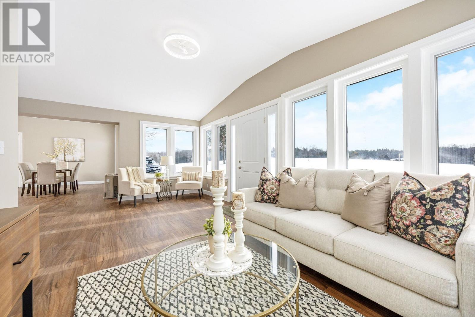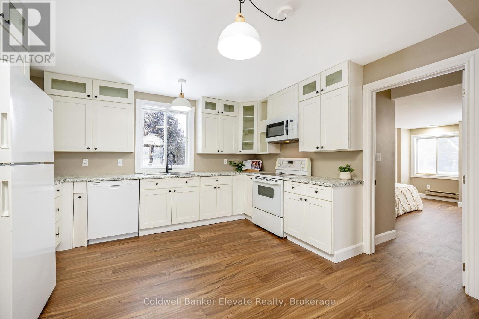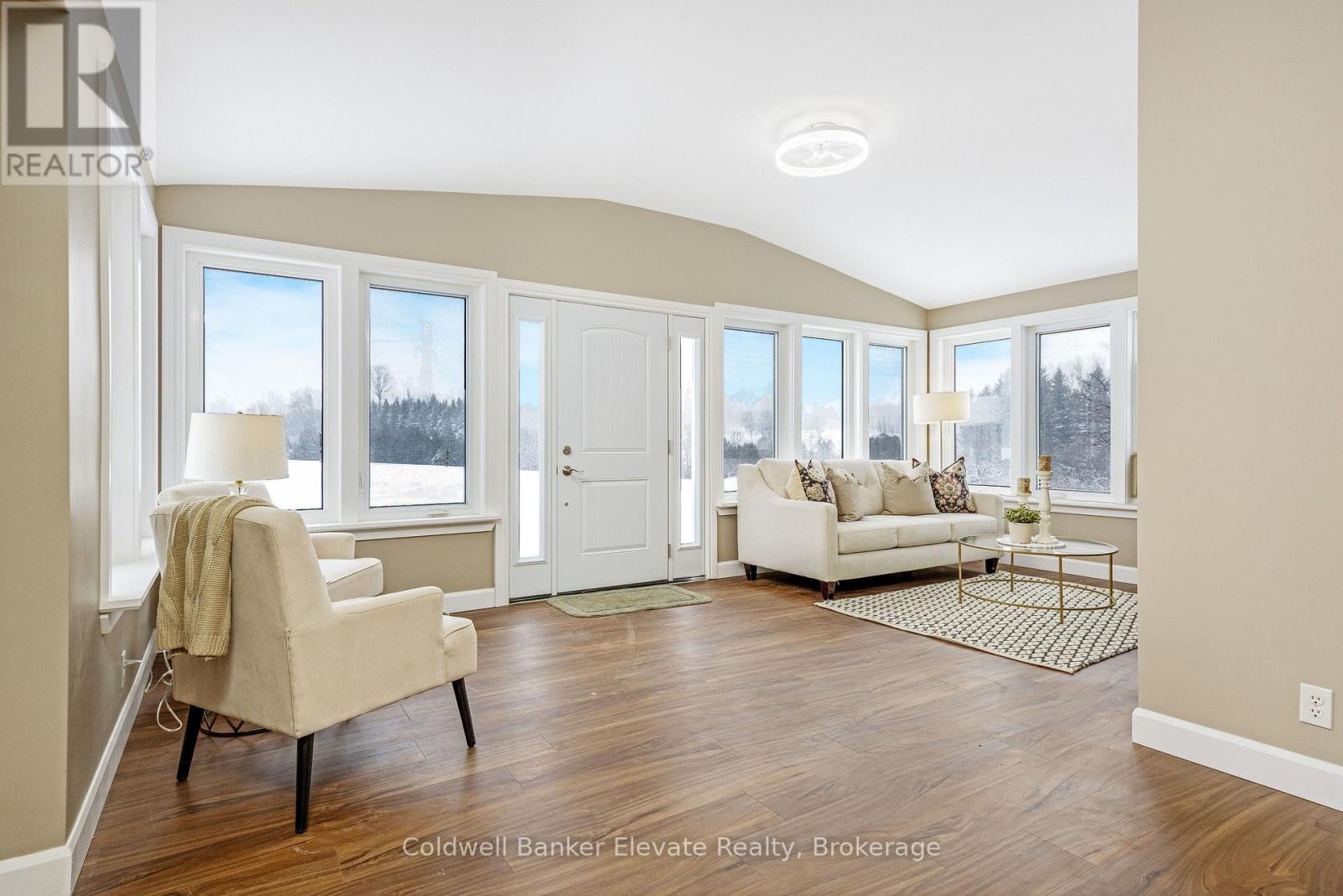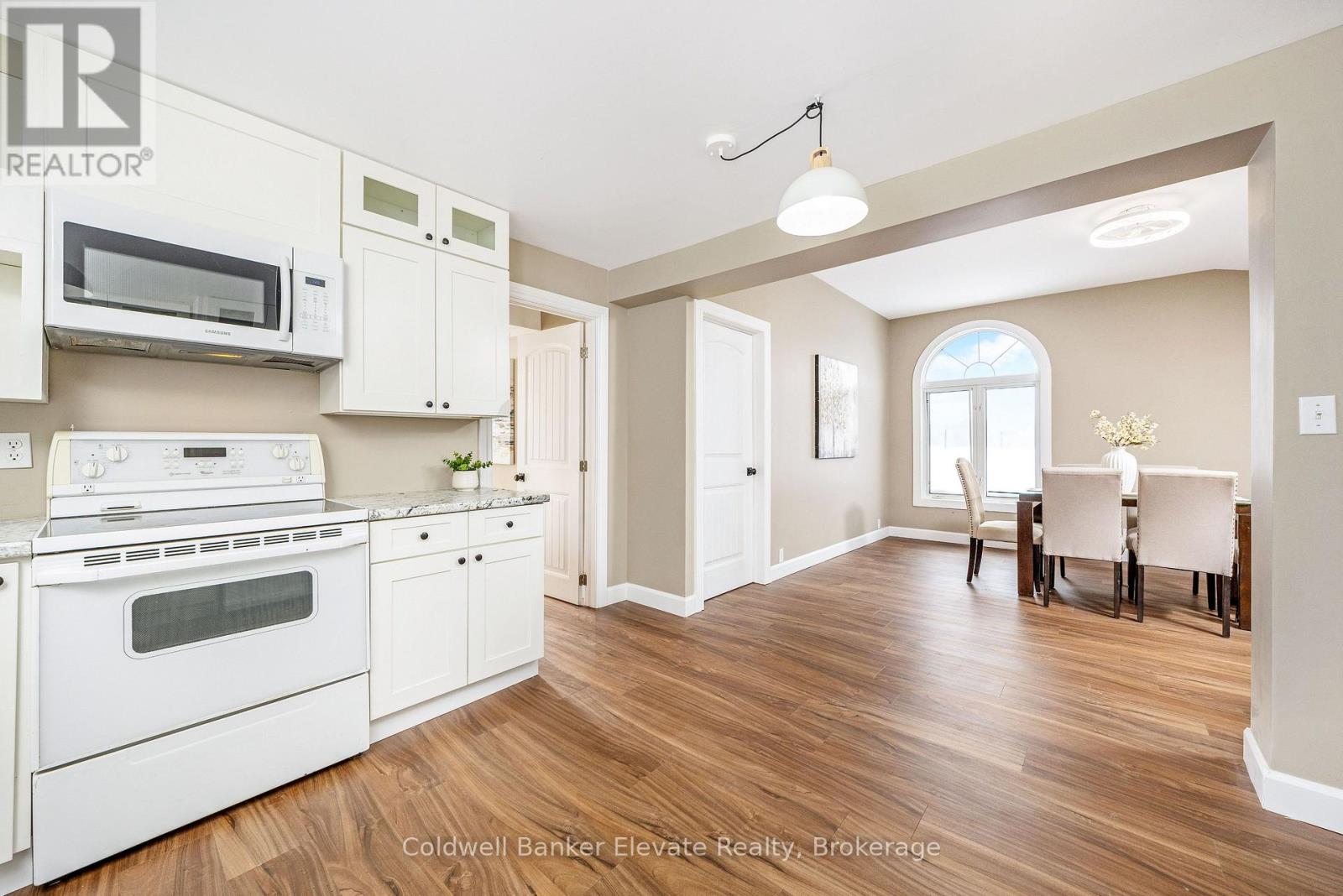 Welcome to 262700 Varney Road, a special rural property set on approximately 45 acres in the heart of West Grey. Offering a mix of workable land, open pasture & wooded areas, this is a place where space, nature & opportunity come together. The bungalow welcomes you with a bright front entrance featuring new vinyl flooring & five windows overlooking the front yard. The living room offers new vinyl flooring, a semi flush mount ceiling fan, & side facing windows that bring in plenty of natural light. The dining room features new vinyl flooring, a semi flush mount fan & light, and a charming arched window overlooking the front of the home. The kitchen is both functional & inviting with new vinyl flooring, pendant lighting, shaker style cabinets with glass inserts, soft close slides & hinges, & a window overlooking the backyard. Appliances include a white Whirlpool stove, Samsung range hood & microwave, & white Amana fridge & dishwasher. Three main floor bedrooms provide comfortable living space. The primary bedroom features two single closets & one double closet, with windows overlooking the front & side yards. The second bedroom includes a double closet & side facing window, while the third bedroom also offers a side facing window. The 3 piece main floor bathroom is finished with ceramic tile flooring, pot lights, a wall sconces, a freestanding single sink vanity, & a standing shower with glass surround & brass hardware. Outside, the property shines. A gravel driveway leads to a large barn with workshop style space, along with multiple farm outbuildings. The backyard offers a poured concrete patio, electric fencing & an exterior round pen. Camp Creek flows through the land & is known to support trout, adding to the peaceful natural setting. Apple trees are scattered throughout & the Harrison loam soil is well suited for agricultural use. The property has historically supported horses, grass fed beef, sheep, donkey & cash cropping. (id:64974)