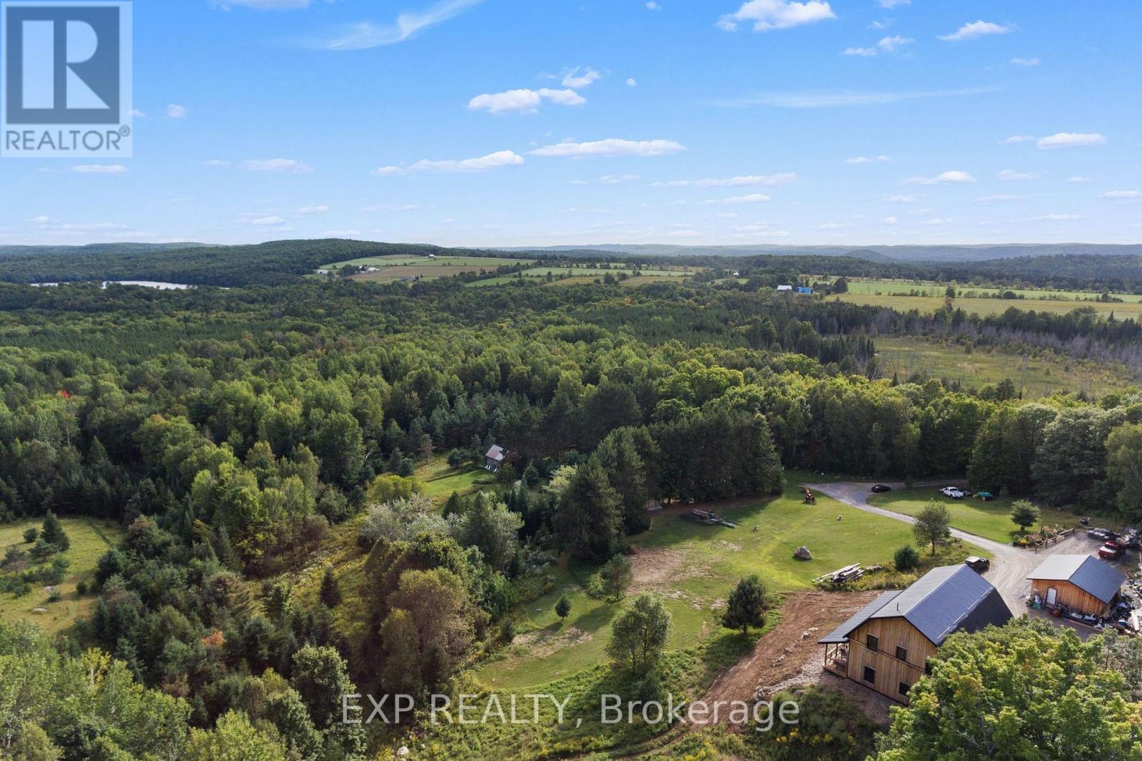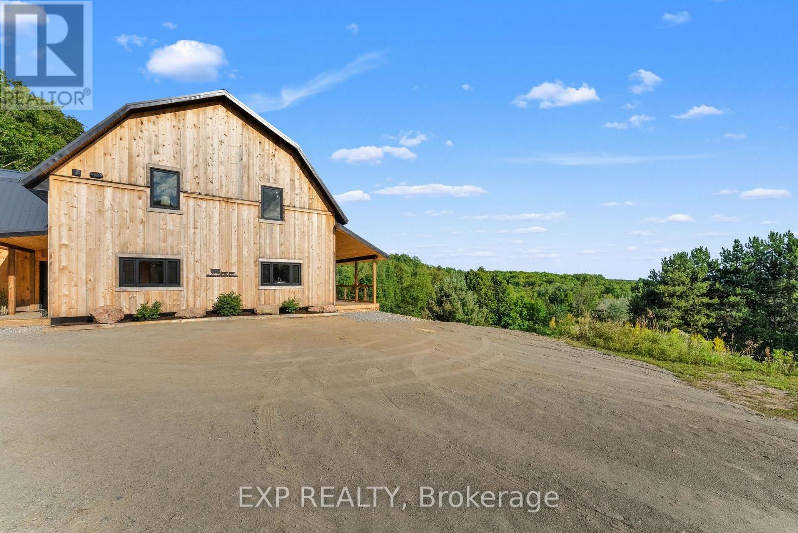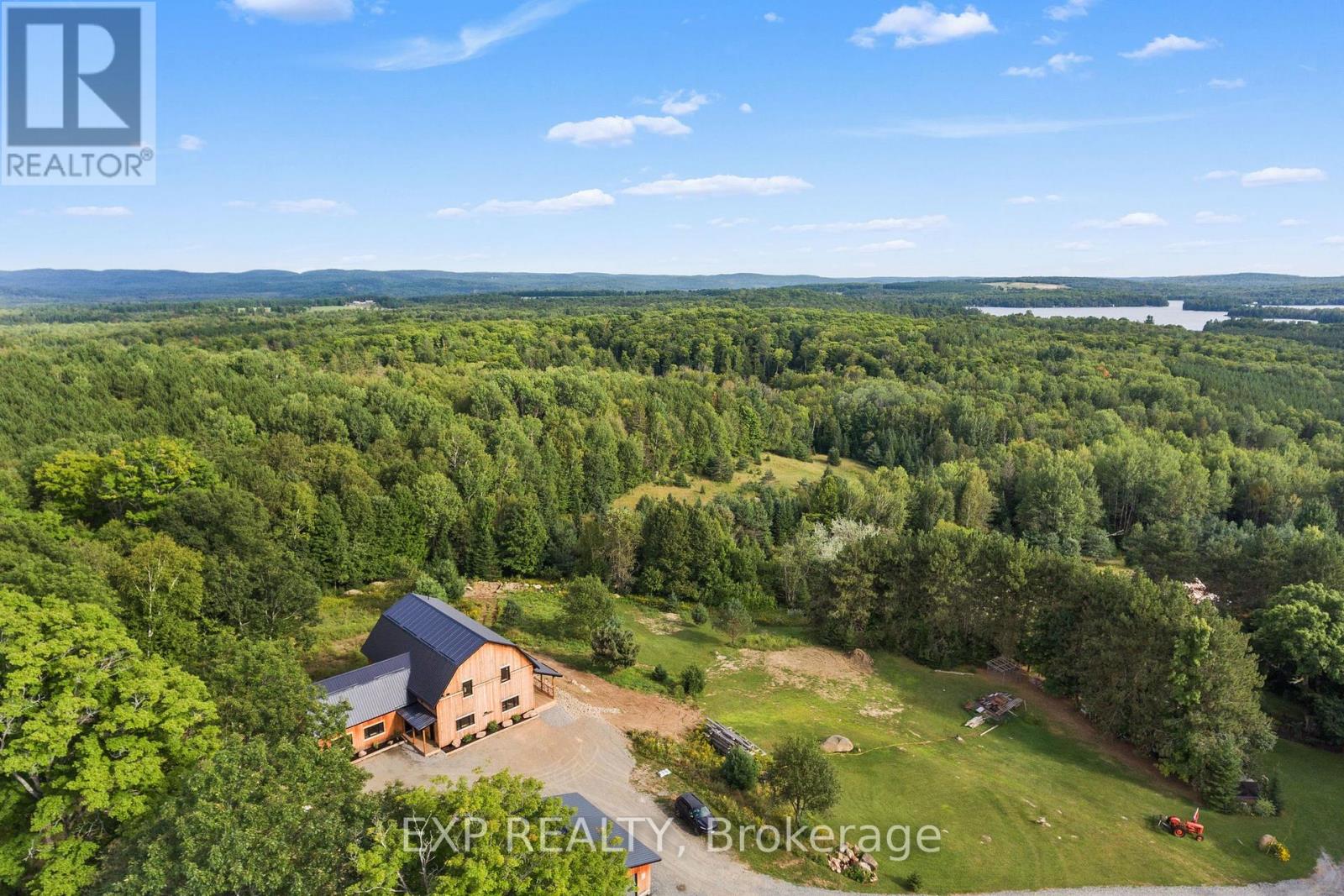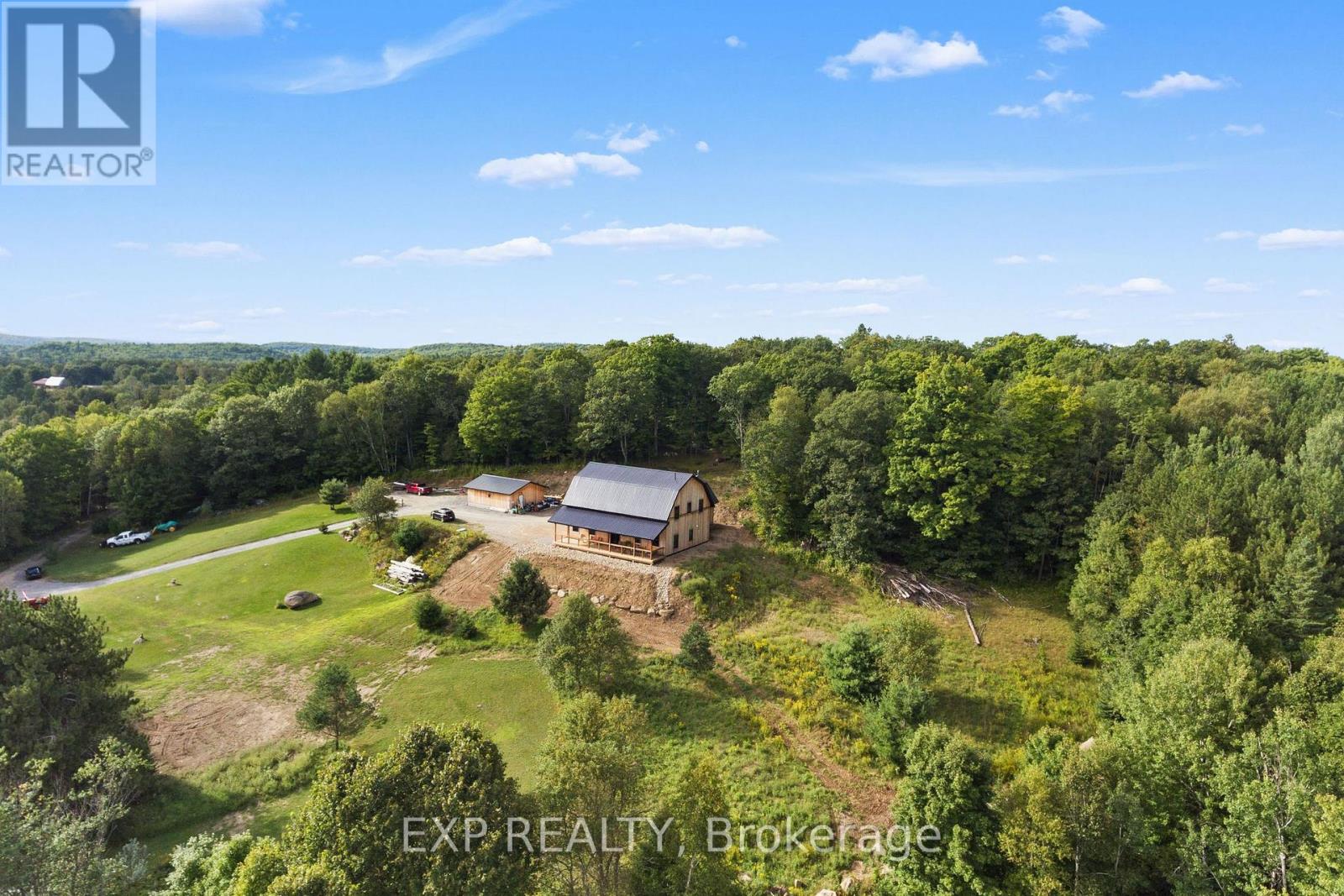 Welcome to this breathtaking custom-designed barndominium, perfectly set on over 23 acres of pristine countryside in the heart of Hastings-Carlow Mayo Township. Newly built in 2024, this remarkable home offers unobstructed panoramic views and a rare blend of modern comfort with timeless rural charm. Inside, soaring 20+ foot ceilings create an open, light-filled atmosphere, complemented by a thoughtful mix of new and reclaimed materials that add warmth and character throughout. The home features 3 spacious bedrooms, 2.5 beautifully finished bathrooms, energy-efficient ICF construction, and a durable slab-on-grade foundation-designed for both style and long-term efficiency. A detached garage provides generous space for vehicles and recreational toys, and the barns provide additional storage options. Outdoors, a picturesque creek winds through the property, attracting abundant wildlife and offering a peaceful, ever-changing natural backdrop. Located in the welcoming community of Hastings-Carlow Mayo Township, this property offers more than just a home - it offers a lifestyle. Known for its strong sense of community, outdoor adventures, and proximity to trails, lakes, and local events, the area is ideal for those seeking connection, recreation, and a slower pace of life without sacrificing modern conveniences. If you're searching for privacy, tranquility, and a true connection to nature within a vibrant rural community, this exceptional property is one you won't want to miss. (id:64974)