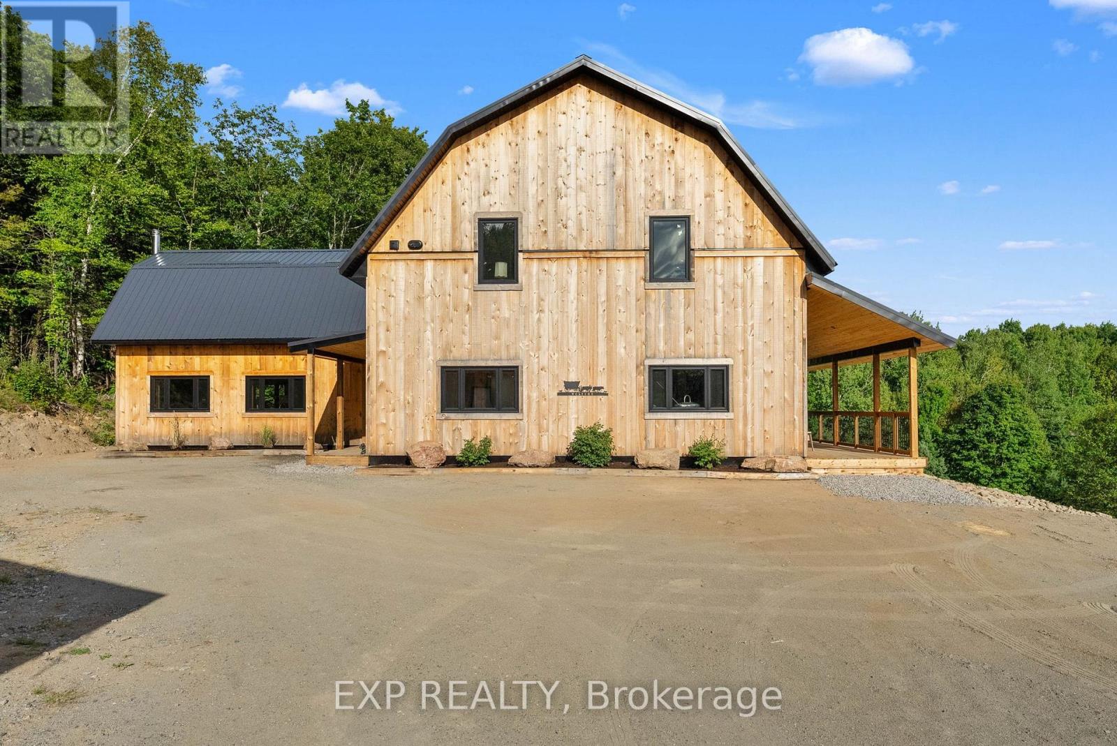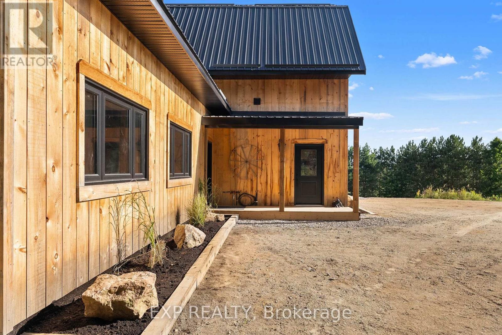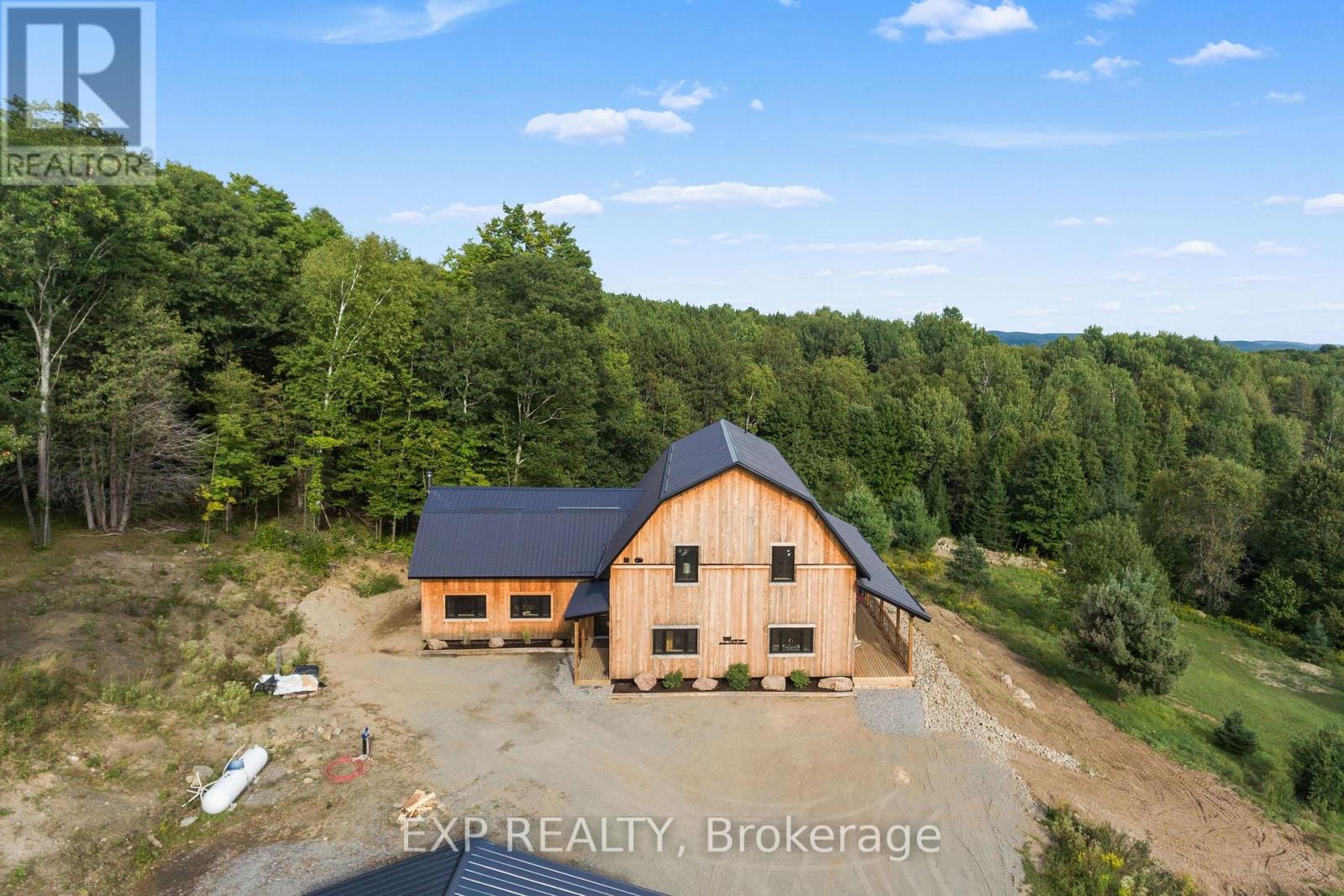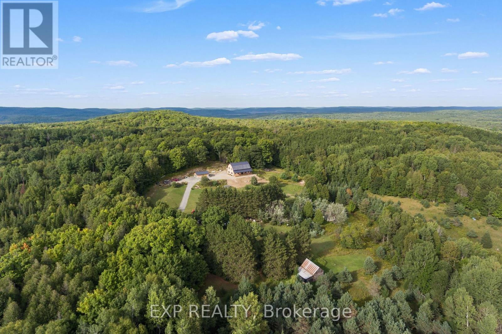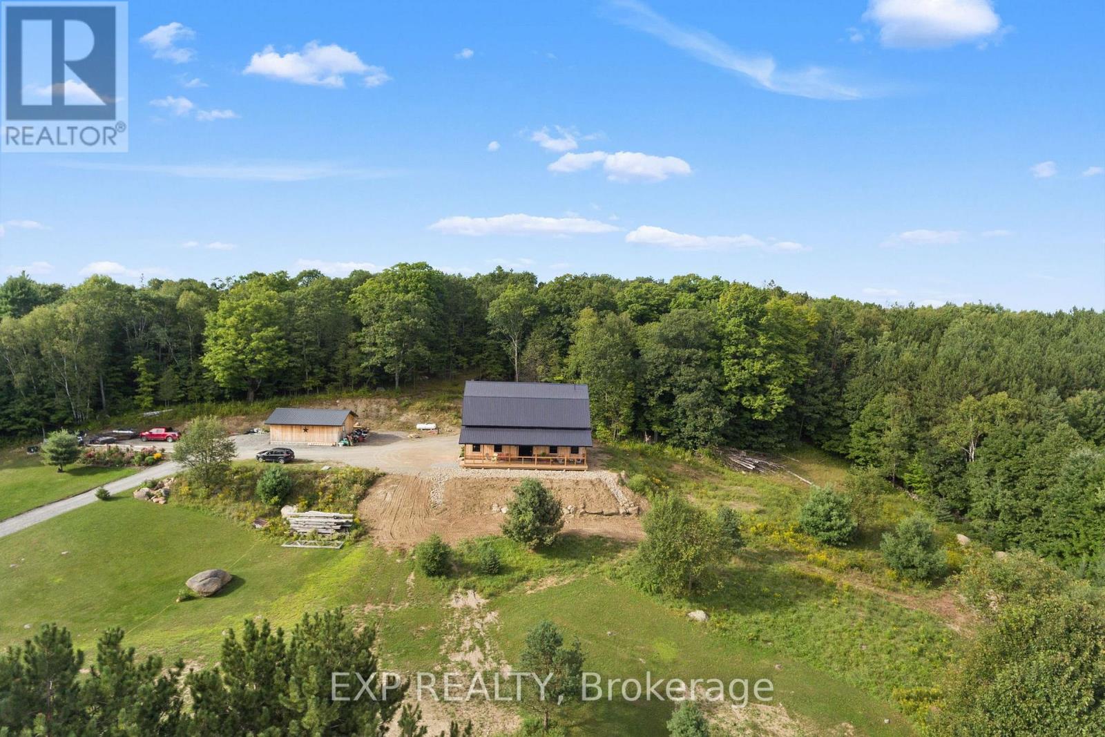 Welcome to this breathtaking custom-designed barndominium, perfectly set on over 23 acres of pristine countryside in the heart of Hastings-Carlow Mayo Township. Newly built in 2024, this remarkable home offers unobstructed panoramic views and a rare blend of modern comfort with timeless rural charm. Inside, soaring 20+ foot ceilings create an open, light-filled atmosphere, complemented by a thoughtful mix of new and reclaimed materials that add warmth and character throughout. The home features 3 spacious bedrooms, 2.5 beautifully finished bathrooms, energy-efficient ICF construction, and a durable slab-on-grade foundation-designed for both style and long-term efficiency. A detached garage provides generous space for vehicles and recreational toys, and the barns provide additional storage options. Outdoors, a picturesque creek winds through the property, attracting abundant wildlife and offering a peaceful, ever-changing natural backdrop. Located in the welcoming community of Hastings-Carlow Mayo Township, this property offers more than just a home - it offers a lifestyle. Known for its strong sense of community, outdoor adventures, and proximity to trails, lakes, and local events, the area is ideal for those seeking connection, recreation, and a slower pace of life without sacrificing modern conveniences. If you're searching for privacy, tranquility, and a true connection to nature within a vibrant rural community, this exceptional property is one you won't want to miss. (id:64974)