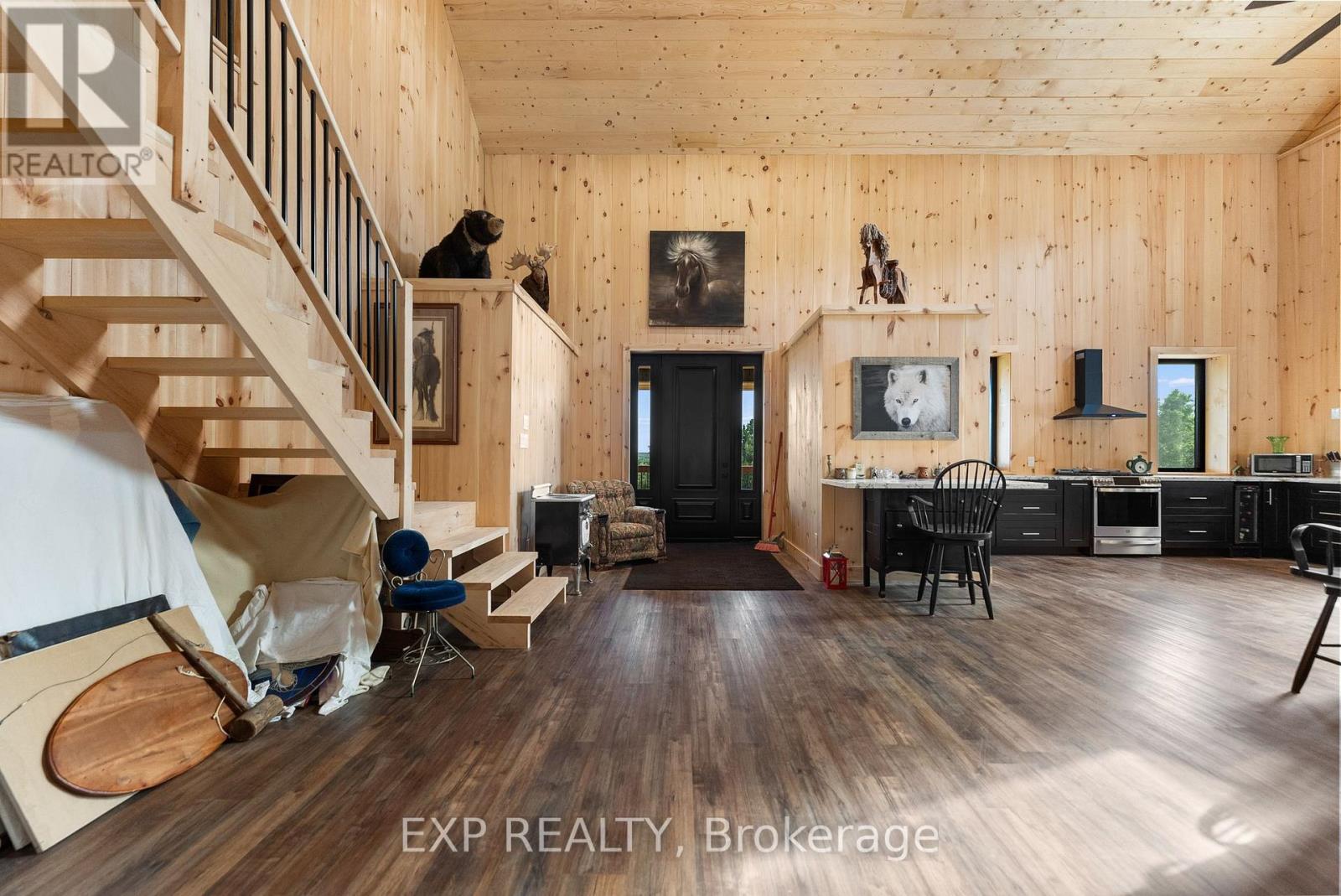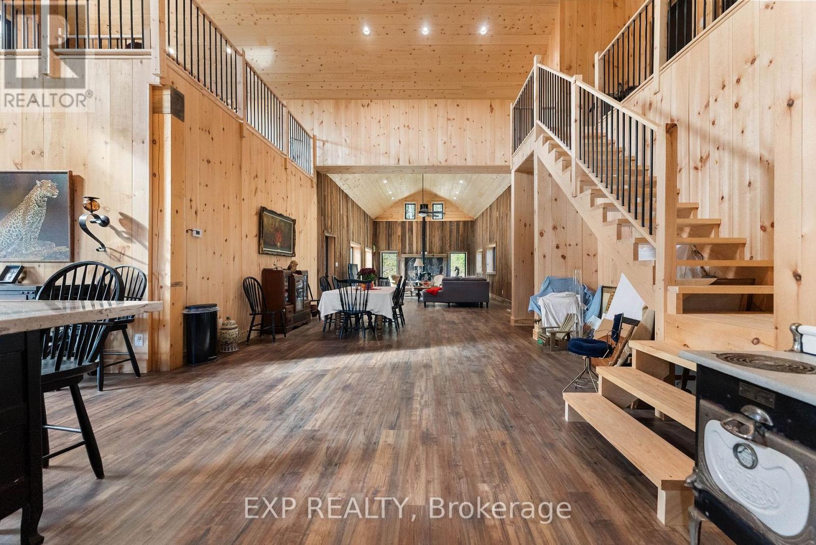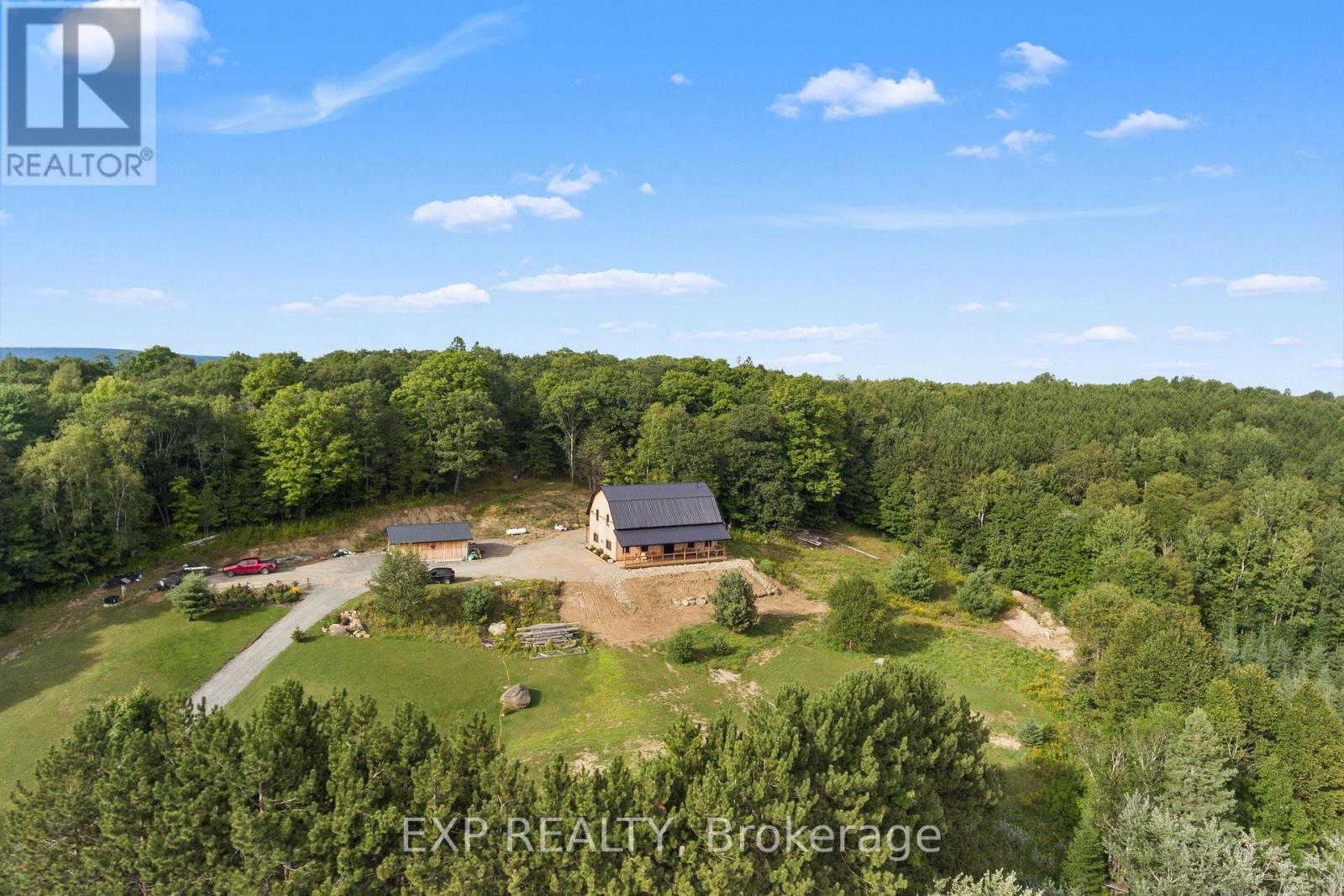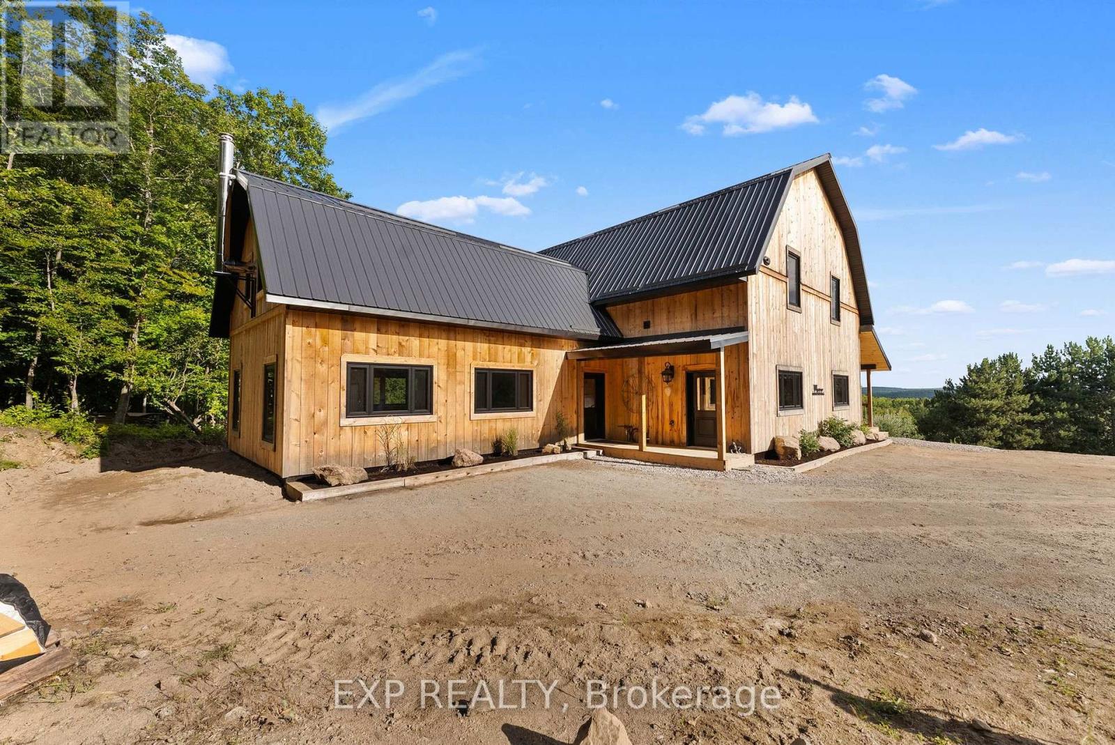 Welcome to this breathtaking custom-designed barndominium, perfectly set on over 23 acres of pristine countryside in the heart of Hastings-Carlow Mayo Township. Newly built in 2024, this remarkable home offers unobstructed panoramic views and a rare blend of modern comfort with timeless rural charm. Inside, soaring 20+ foot ceilings create an open, light-filled atmosphere, complemented by a thoughtful mix of new and reclaimed materials that add warmth and character throughout. The home features 3 spacious bedrooms, 2.5 beautifully finished bathrooms, energy-efficient ICF construction, and a durable slab-on-grade foundation-designed for both style and long-term efficiency. A detached garage provides generous space for vehicles and recreational toys, and the barns provide additional storage options. Outdoors, a picturesque creek winds through the property, attracting abundant wildlife and offering a peaceful, ever-changing natural backdrop. Located in the welcoming community of Hastings-Carlow Mayo Township, this property offers more than just a home - it offers a lifestyle. Known for its strong sense of community, outdoor adventures, and proximity to trails, lakes, and local events, the area is ideal for those seeking connection, recreation, and a slower pace of life without sacrificing modern conveniences. If you're searching for privacy, tranquility, and a true connection to nature within a vibrant rural community, this exceptional property is one you won't want to miss. (id:64974)
