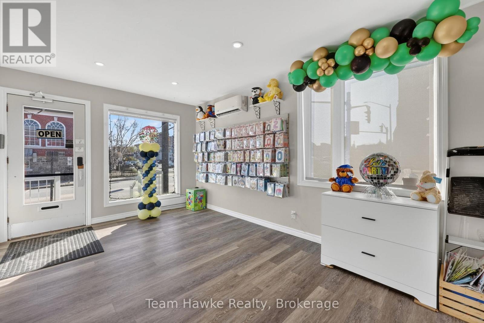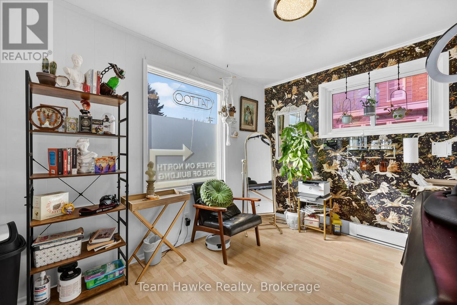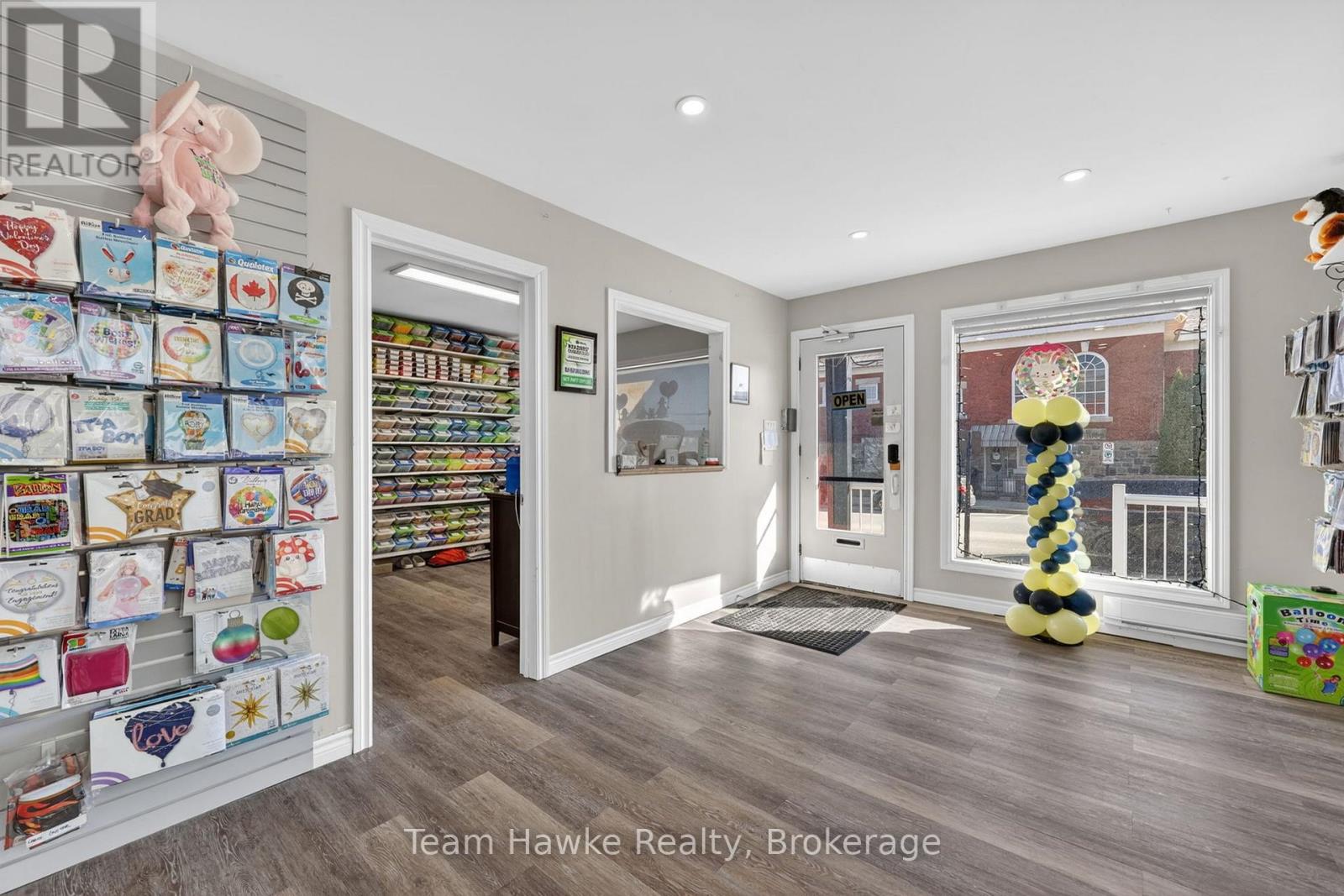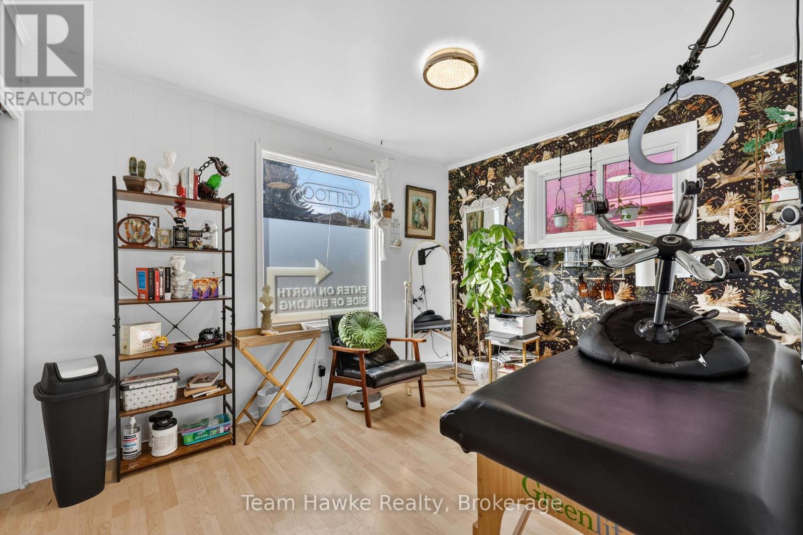 Great investment opportunity in a high-exposure Midland location with ample parking and strong income potential. Mixed-use building featuring two commercial units (approx. 800 sq ft each) and one spacious two-bedroom residential apartment. Both commercial units include separate hydro meters and 2-piece bathrooms, and have been recently updated with new flooring, paint, and fixtures. Front commercial unit to be delivered vacant, offering flexibility for owner-occupier or investor. Second floor residential unit extensively renovated with new LVP flooring, kitchen cabinetry, appliances, quartz countertops, and updated bathroom and light fixtures. Open-concept layout. All units equipped with electric Napoleon split systems providing heating and cooling. Residential unit includes six appliances. There are three separate hydro meters. The property offers excellent visibility and versatility for investors or end users. Buyer to verify all measurements, zoning, and permitted uses. (id:64974)