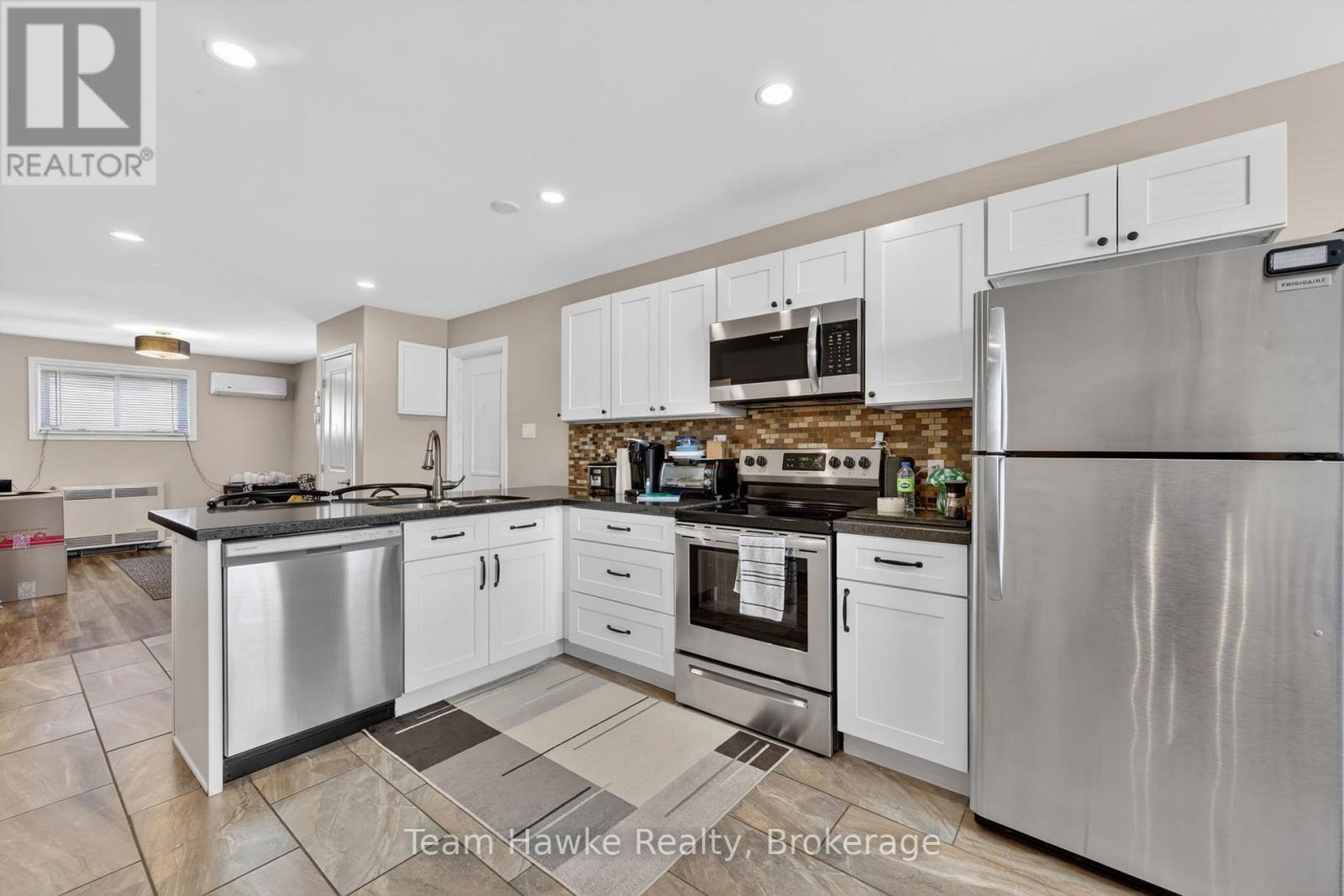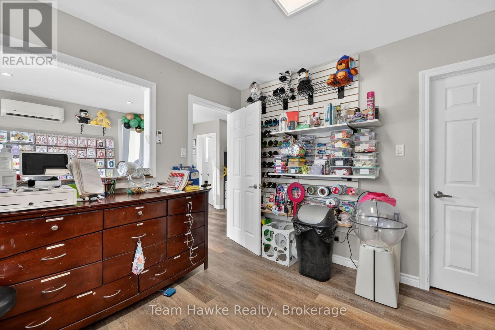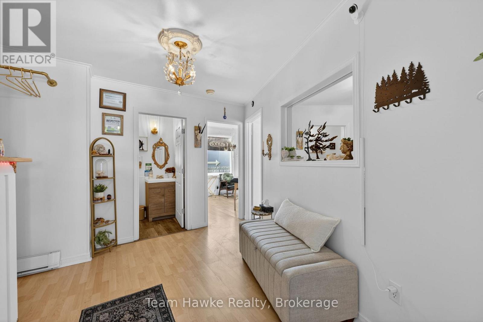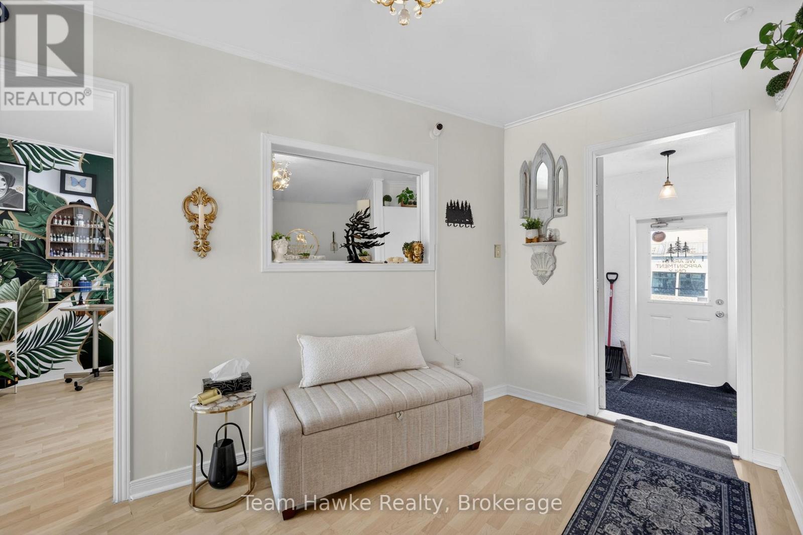 Great investment opportunity in a high-exposure Midland location with ample parking and strong income potential. Mixed-use building featuring two commercial units (approx. 800 sq ft each) and one spacious two-bedroom residential apartment. Both commercial units include separate hydro meters and 2-piece bathrooms, and have been recently updated with new flooring, paint, and fixtures. Front commercial unit to be delivered vacant, offering flexibility for owner-occupier or investor. Second floor residential unit extensively renovated with new LVP flooring, kitchen cabinetry, appliances, quartz countertops, and updated bathroom and light fixtures. Open-concept layout. All units equipped with electric Napoleon split systems providing heating and cooling. Residential unit includes six appliances. There are three separate hydro meters. The property offers excellent visibility and versatility for investors or end users. Buyer to verify all measurements, zoning, and permitted uses. (id:64974)