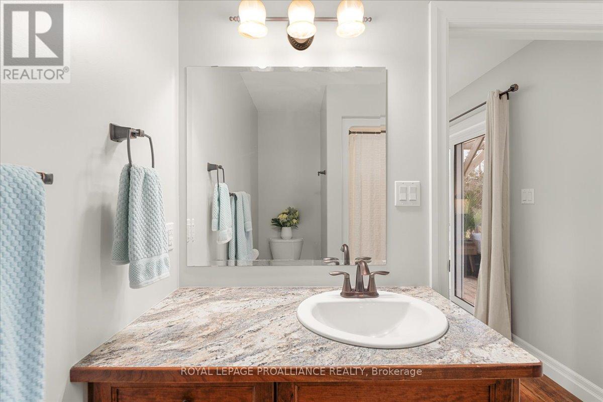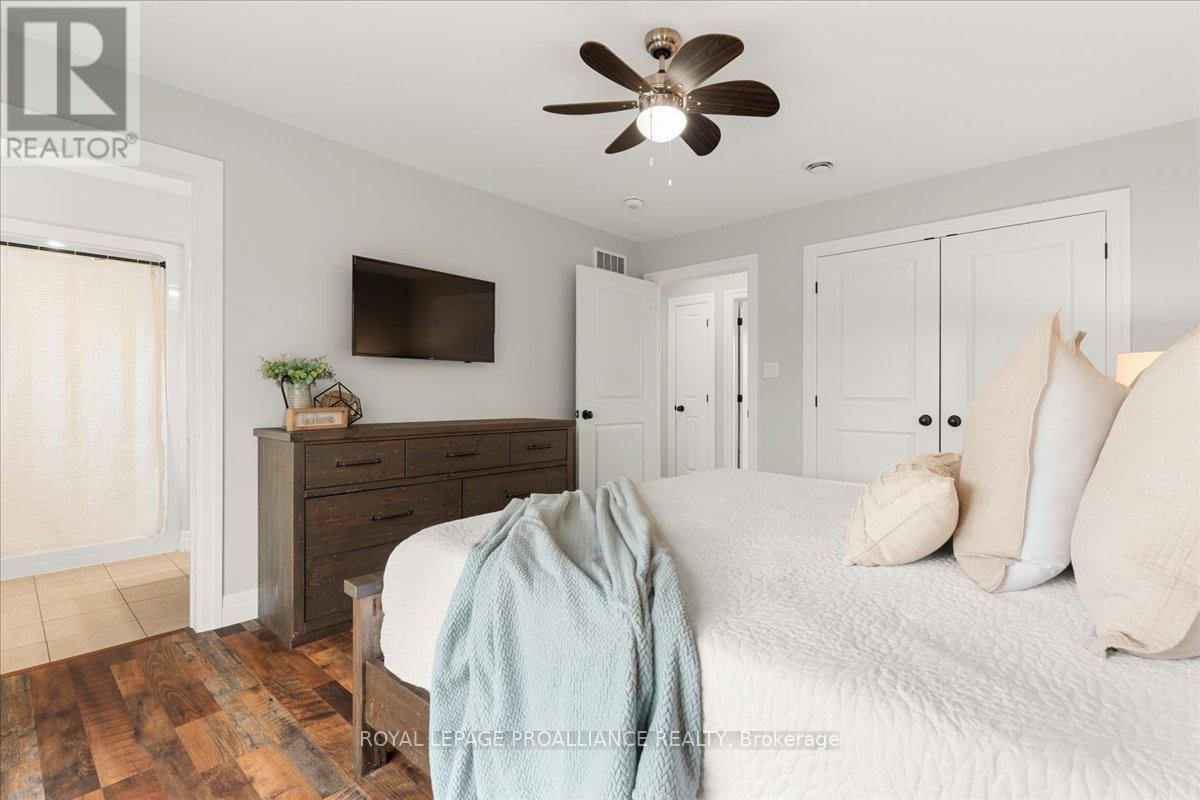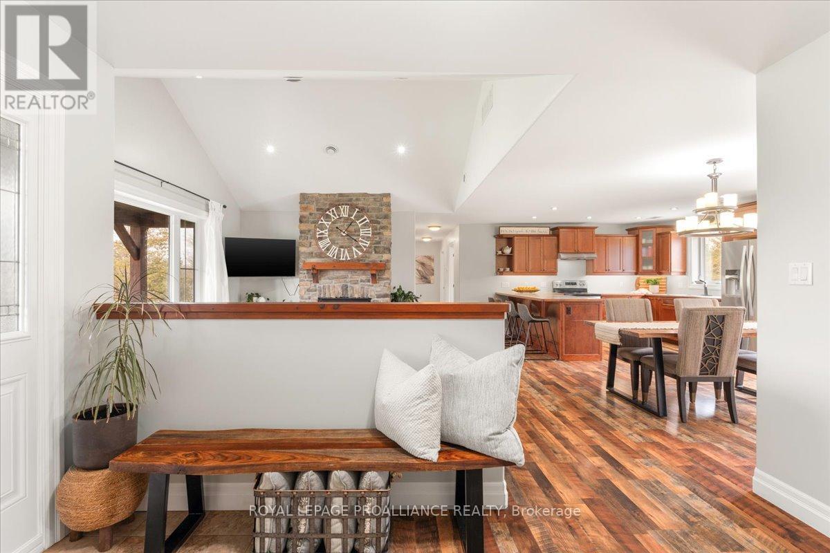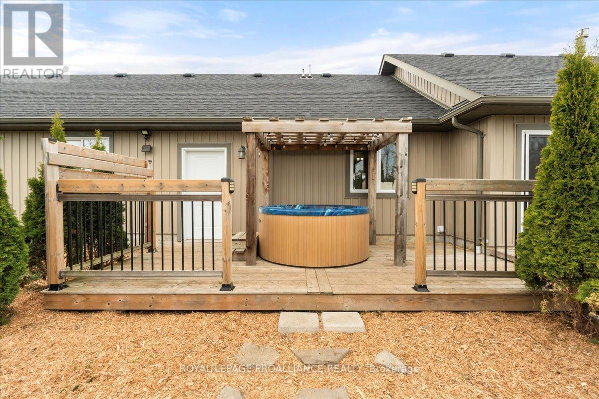 Built in 2017, this rare all-on-one-floor bungalow delivers efficient, low-maintenance living with impressively low utility costs-something you won't find often. Offering 3 bedrooms, 2 bathrooms and garage space for 4 vehicles (triple + single), this home blends function with standout curb appeal on a large lot with municipal water. Inside features vaulted ceilings, a striking stone gas fireplace, radiant in-floor heating and an updated kitchen with 2024 stainless steel appliances. Enjoy seamless access to a large rear deck and a west-facing front deck for sunset views. Steps to the Trent River and minutes to the 401, YMCA and amenities-an incredible value. (id:64974)