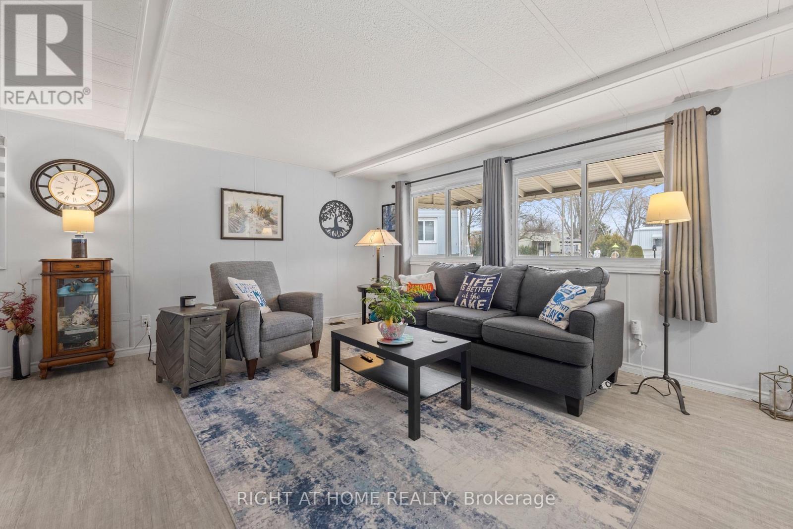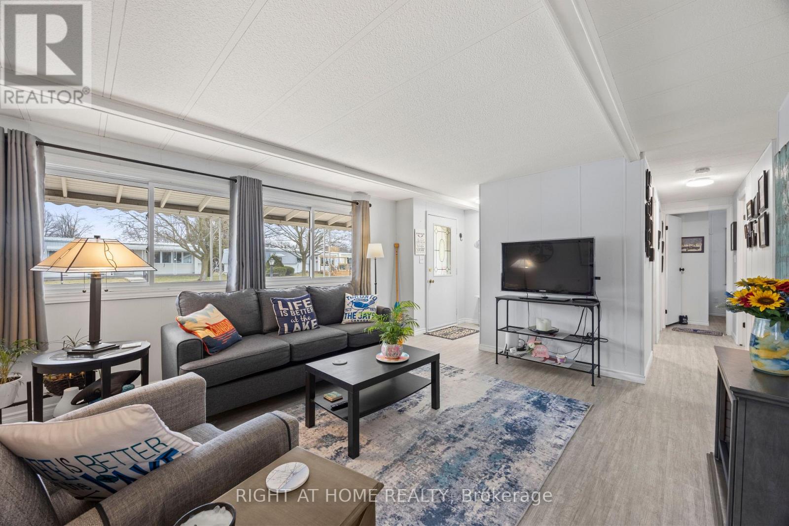 Welcome to relaxed, low-maintenance living in the highly desirable Grand Cove Estates community in the heart of Grand Bend! This charming land lease home is perfect for those looking to downsize while still enjoying comfort, space, and an active lifestyle.Offering 2 bedrooms and 1 full bathroom, this home features a functional layout filled with natural light and inviting living spaces. A standout feature is the bonus sunroom, perfect for enjoying your morning coffee, reading, or entertaining guests year-round. The home also includes the convenience of 2 dedicated parking spots.Grand Cove Estates is known for its vibrant, community-focused lifestyle. Residents enjoy access to a variety of amenities including lawn bowling, pickleball, bocce ball, darts, and organized fitness classes-creating endless opportunities to stay active and social.Located just minutes from the beautiful beaches of Lake Huron, as well as Grand Bend's shops, restaurants, and amenities, this is an ideal opportunity to enjoy carefree living in one of Ontario's most sought-after lakeside communities. (id:64974)