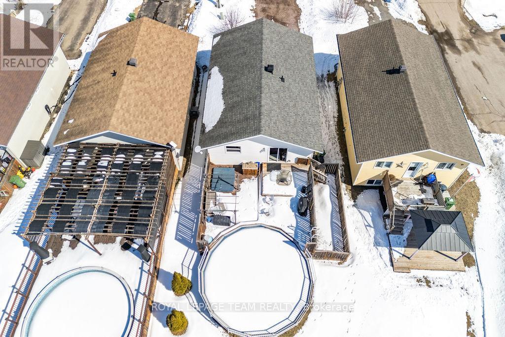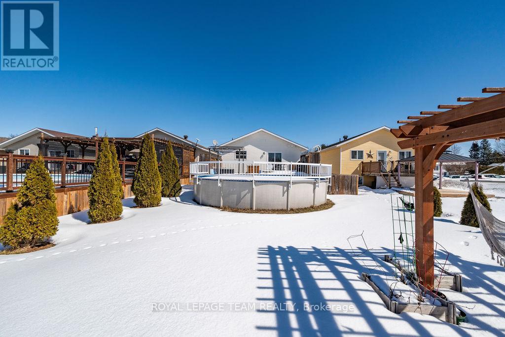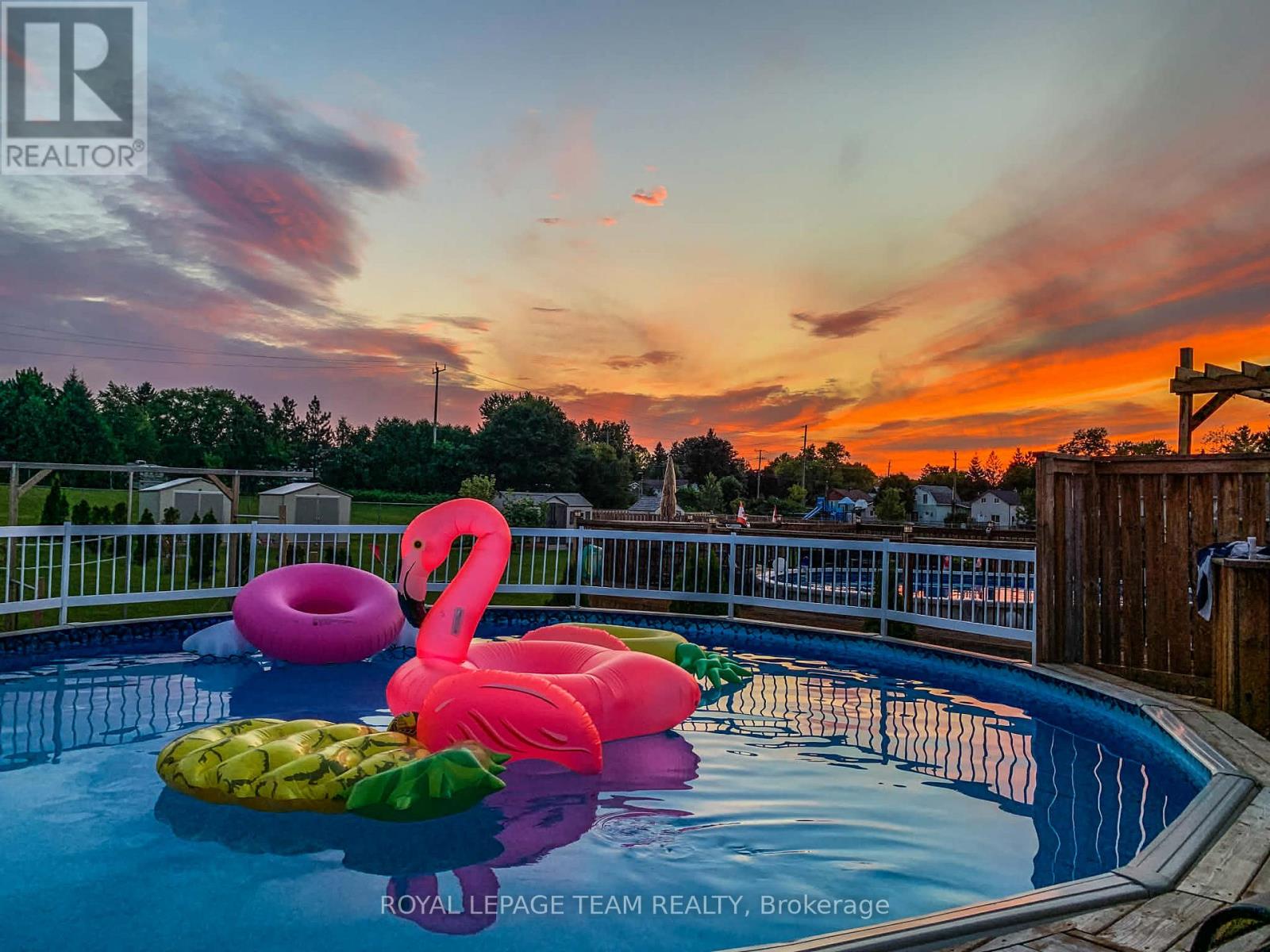 Welcome to this well-maintained 6 Bedroom 2012-built home in a desirable Pembroke neighbourhood, offering space, privacy, and exceptional outdoor living-perfect for families or multi-generational living. The main level features 3 generous bedrooms, including a spacious primary with walk-in closet, a bright 4-piece bath, and convenient main floor laundry. The open-concept kitchen and dining area is filled with natural light, offering ample cabinetry, pantry storage, and seamless access to the backyard-ideal for both everyday living and entertaining. Step outside and discover a true backyard retreat. The private rear deck is designed for relaxation and hosting, complete with a hot tub and above-ground pool-creating your own personal oasis. Backing onto green space with no rear neighbours, this property offers a rare sense of privacy while still being in town. The fully finished lower level expands your living space with additional bedrooms, a large family room, and a second full bathroom-perfect for guests, teens, or extended family. Built with a solid block foundation and featuring stone and vinyl siding, asphalt shingles, and efficient forced air natural gas heating, and electric HW on demand, this home offers comfort and durability. Municipal water and sewer services provide added convenience. Located within walking distance to parks, schools, including Bishop Smith HS, and everyday amenities, this home offers an excellent walk score while still delivering the privacy and outdoor lifestyle buyers are searching for. 15 Minutes to Garrison Petawawa. A move-in ready property that truly balances indoor comfort with standout outdoor living. (id:64974)