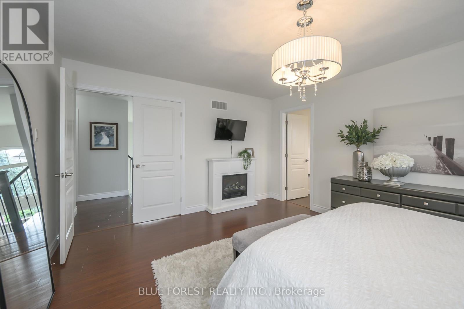 Modern and sleek - simply put this home is gorgeous! Single owner and the pride of ownership shows. Wide open living space; spacious kitchen with quartz countertops, ample cabinet and cupboard space, stainless steel appliances and breakfast bar island. Tray ceiling in the living room, with a gas fireplace and feature wall. Main floor office is perfect for those that work from home. Convenient main floor laundry. Master bedroom with 3pc ensuite and walk-in closet, 2 spacious bedrooms and a 4pc bathroom complete the second floor. The lower level features a finished family room and doubles as a 4th bedroom with a 3 pc bath. Lots of potential with the large unfinished space for a 5th bedroom, recroom, or both. Many updates throughout the years including roof 2024. Meticulously landscaped front to back! Step outside to the backyard oasis with lush vegetation featuring a multi-tiered partially covered deck, koi pond, fire pit, above ground pool, and shed. Located on a very quiet family friendly court, close to several amenities including Western University, Masonville Mall, and more! (id:64974)