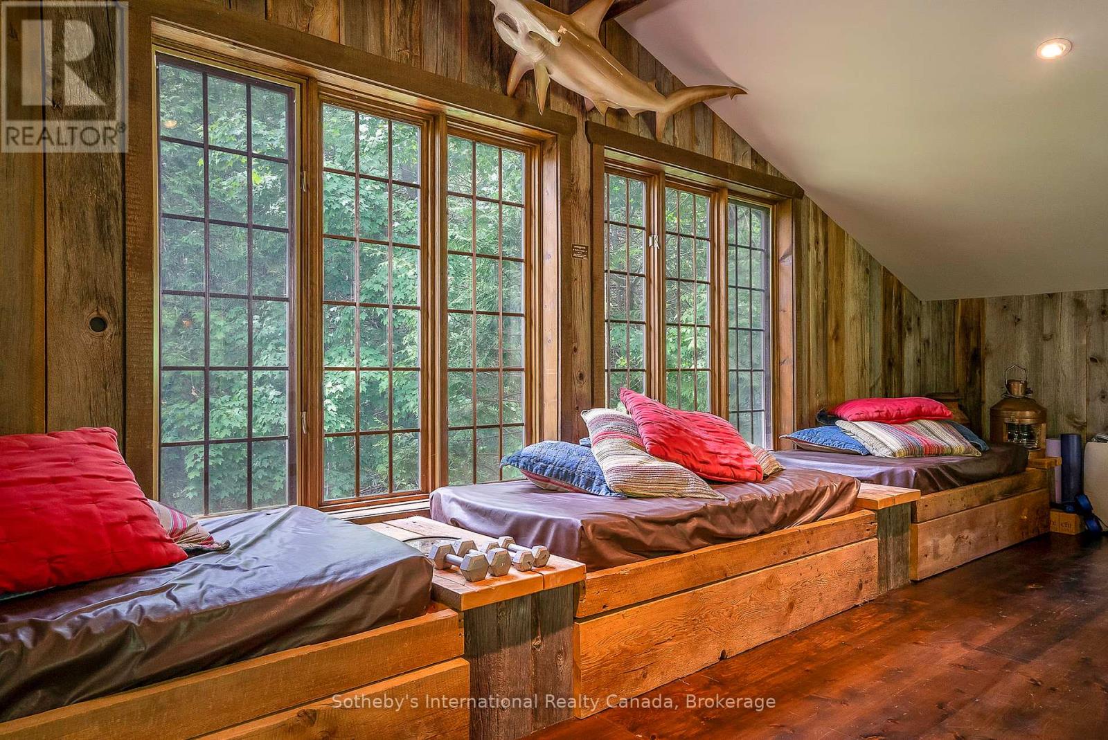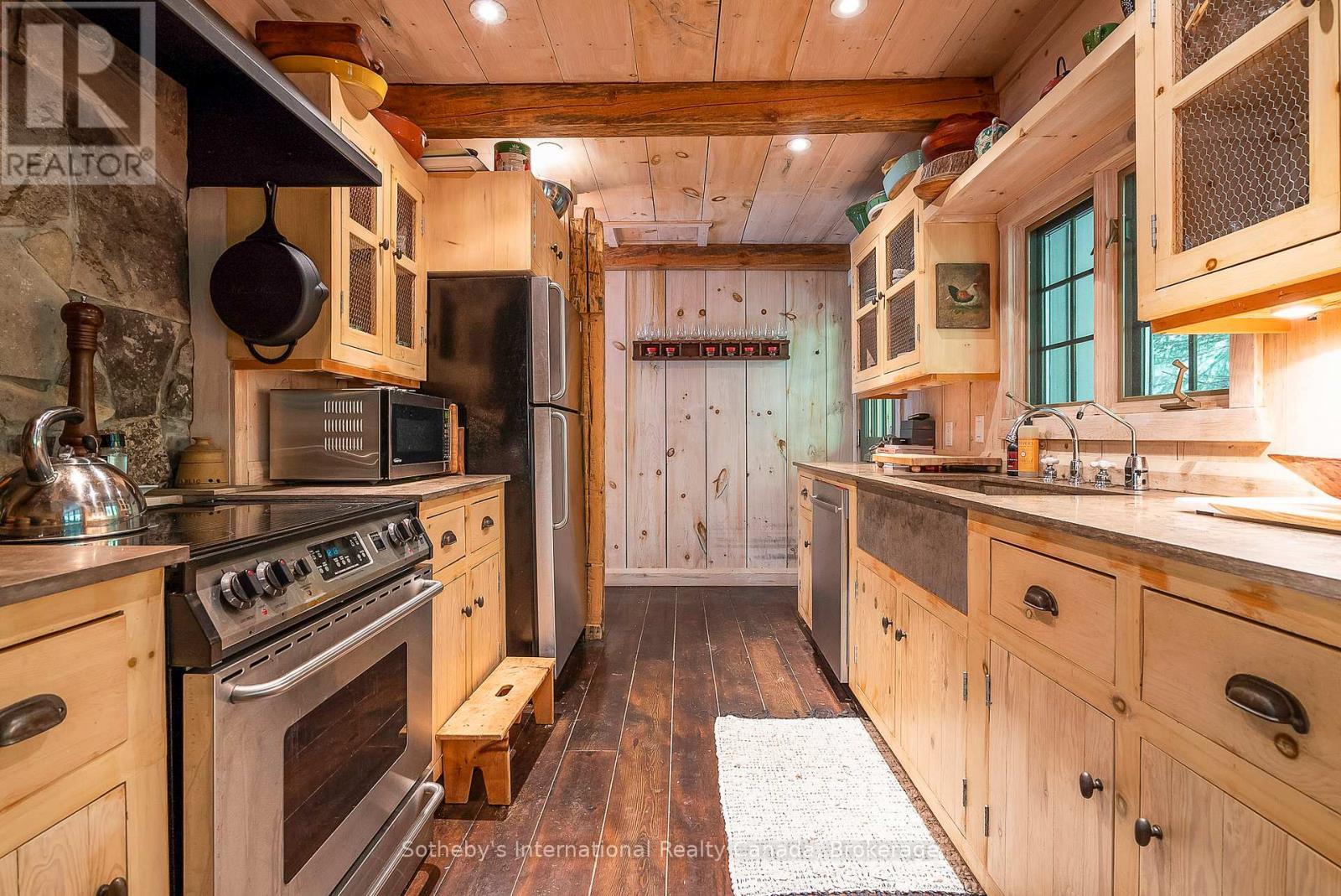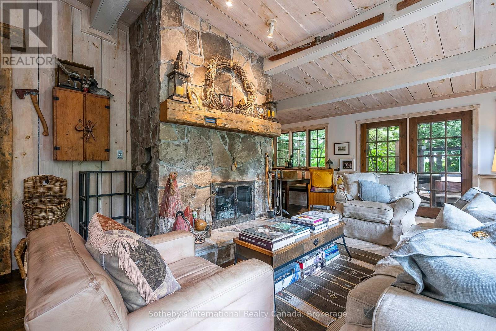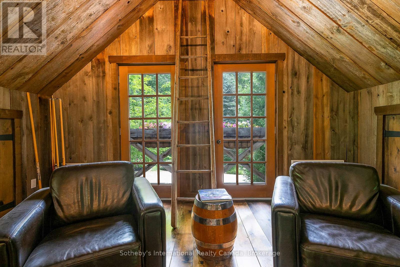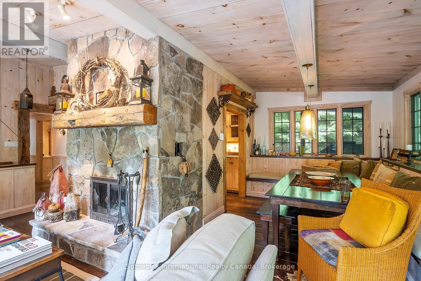 Le Coin Perdu A Private 13-Acre Estate Retreat! Welcome to Le Coin Perdu, a rare sanctuary where timeless craftsmanship meets modern luxury living. Nestled on nearly 13 acres of former vineyard, this private estate offers trails, a managed forest with 300-500 new trees planted annually over 20 years, and a tranquil pond creating the ultimate retreat in nature.Step inside the custom-built residence completely renovated in 1998. Experience rustic elegance at its finest. Hand-hewn post-and-beam timber ceilings, flagstone and BC Pine flooring, and two dramatic stone fireplaces showcase authentic artistry with locally sourced stone and granite finishes. Oversized windows flood the home with light, framing views of lush greenery. The gourmet kitchen features a striking stone sink, stainless steel appliances, reverse osmosis water system, and a dining area with a solid wood table and wraparound banquette perfect for hosting family and friends.The spa-inspired bath offers a jet soaker tub, rainfall shower, and a cedar sauna for four. Outdoors, unwind in the hot tub beneath a canopy of trees, refresh in the outdoor shower, or relax on expansive wraparound decks. The private primary suite includes its own deck for sunset views. A detached 2-car garage built in 2006, crafted with vintage barn board and fieldstone, features a finished 30x40 loft with kitchenette, brass sink, pool table, TV lounge, and full field stone bathroom with open shower ideal for entertaining. Located minutes from Georgian Bays pristine shoreline, Meaford Harbour, premier golf, ski clubs, hiking, biking trails, and vibrant local markets, Le Coin Perdu offers an unmatched lifestyle of luxury, privacy, and adventure.This one-of-a-kind retreat blends European charm, rustic warmth, and modern amenities into a legacy property designed for those who value nature, comfort, and timeless beauty. (id:64974)