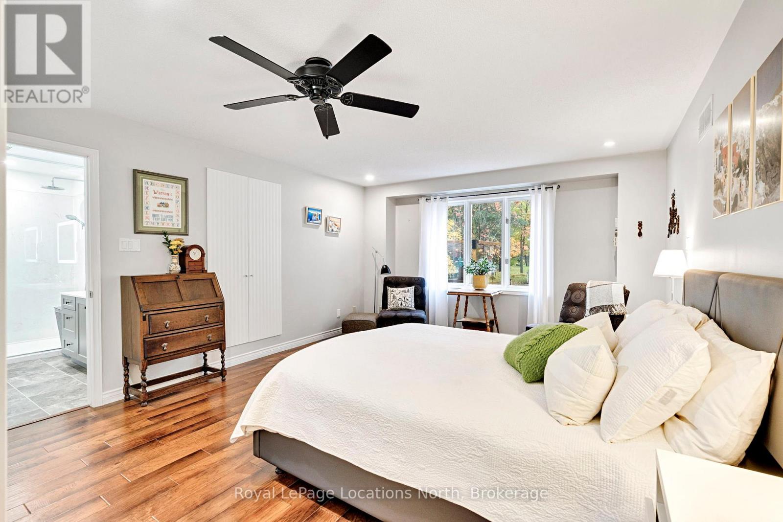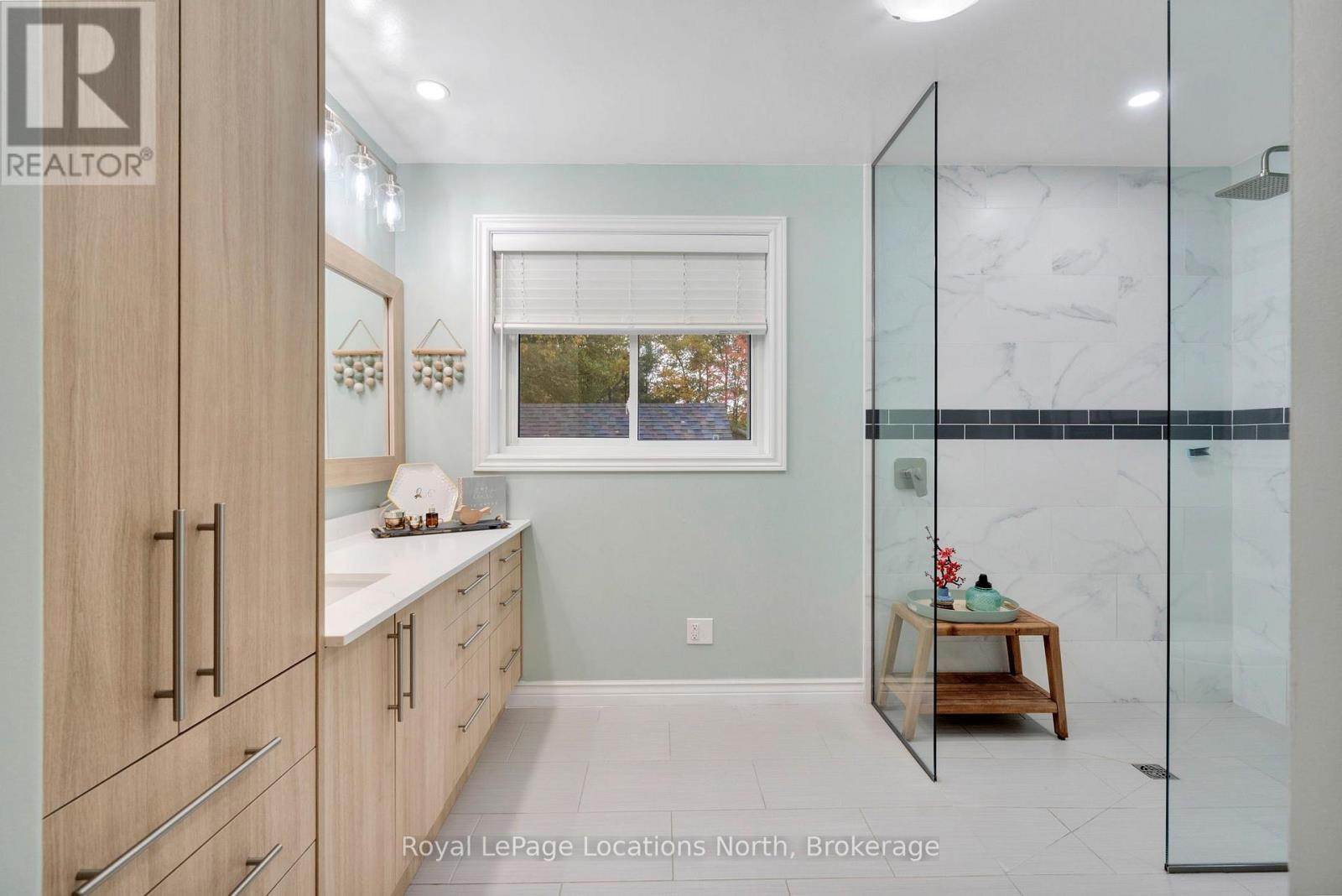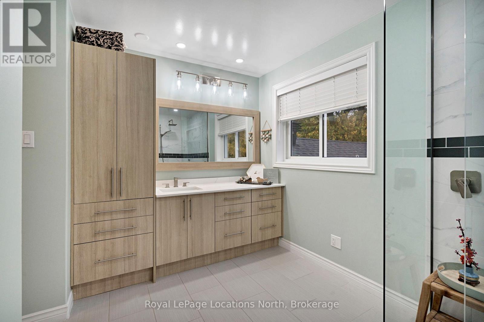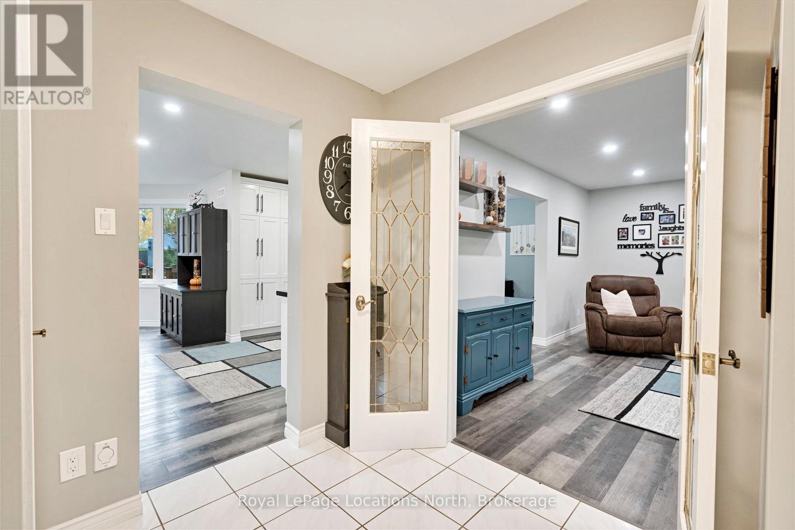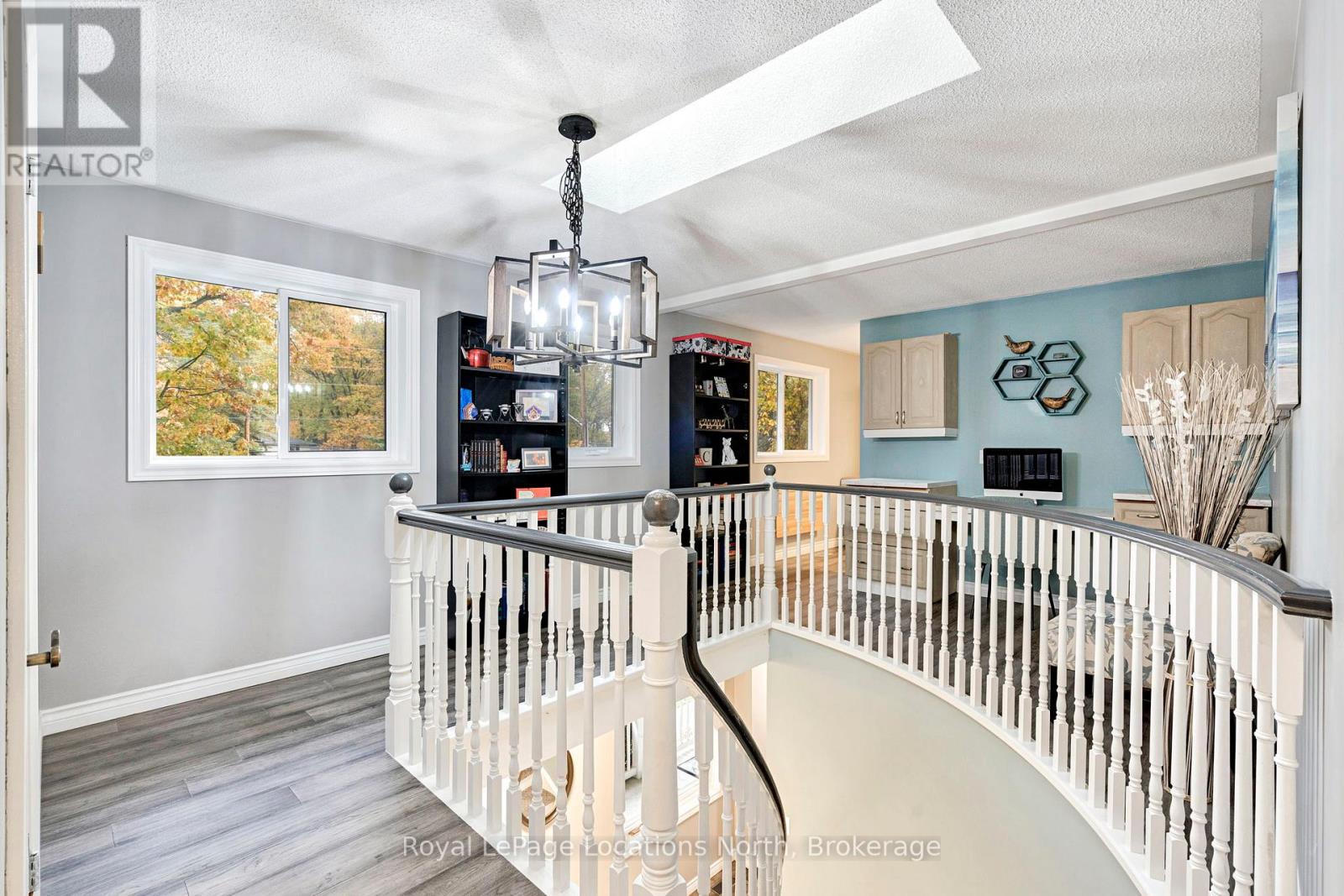 LOCATION! Enjoy effortless access in and out of town--no traffic concerns! Privately set back from the street on a rare in-town lot spanning over 2/3 of an acre, this 3,400+ sqft home offers refined four-season living. Featuring 4 bedrooms and 4 bathrooms, a bright skylit front foyer, and exceptional storage throughout. Thoughtfully updated with new roofing and mostly new windows, offering both peace of mind and modern efficiency. The property also boasts a rare detached shop for hobbyists, expansive outdoor entertaining space, and in-law or multigenerational potential with a separate lower-level entrance. Just seconds to the world's longest freshwater beach and a short drive to downtown Collingwood! This home is A MUST SEE! (id:64974)