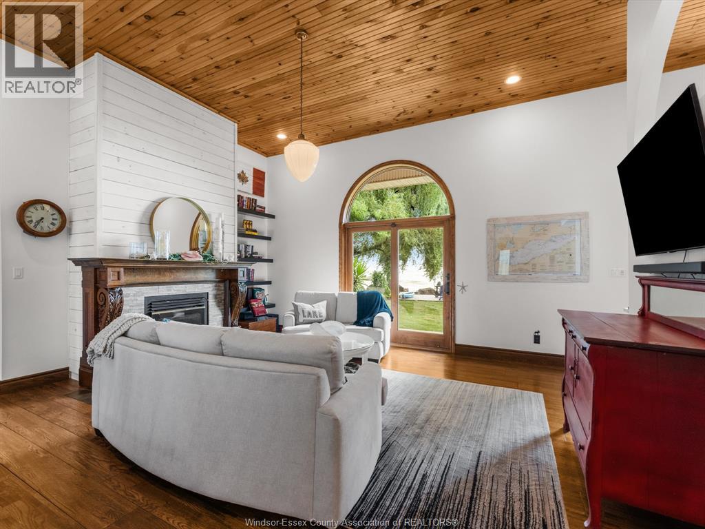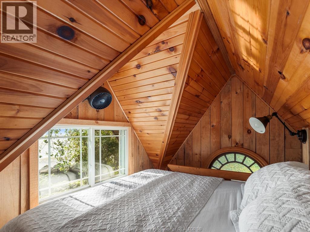 266 East Beach Rd—arguably one of the most unique and inviting lakefront homes in Leamington, emulating the vibe of Pelee Island. Tucked away on nearly 1 acre of pristine shoreline along the East Shore, this property feels like your own private retreat. Surrounded by nature with no neighbours to the north for over 0.4 kilometers - serenity, seclusion, and soul-soothing views define the experience here. Full of rustic charm, yet modern finishes, this 1.5-storey full brick home offers a thoughtful layout with soaring 13’ ceilings in the main living area, 3 (could be 4) bedrooms, and 2.5 bathrooms. Reclaimed brick from Detroit, stained glass accents, solid oak doors, wood burning fireplace w/ large oak mantle all add warmth & character throughout. Smart home upgrades—including high-end Andersen windows, a 360° 4K infrared security system, smart lighting, and fibre-optic internet—blend old-world beauty with modern convenience. A stunning addition includes an expansive attached garage/workshop with loft space, 10’ + 8’ garage doors, heated floors, its own electrical panel, and a loft. The original garage is currently set up as a home gym with flexible storage or parking use. Other highlights: granite countertops, new custom oak bar, main-floor laundry, and a full alarm system. A whole-home HVAC dehumidifier keeps the air fresh year-round, and the roof is a 3-layer 50-year asphalt shingle (2010 main house, 2018 addition). As a bonus, there is a bunkie that offers income potential or guest accommodations, complete with its own deck, BBQ, private outdoor shower, kitchenette, lofted queen bed, and breathtaking lake views. The shoreline is fortified with a high break wall and massive boulders. 10 min to Point Pelee National Park, 12 min to Leamington Marina & Seacliff Park. If you’ve been searching for a home that feels like a hidden paradise with equal parts peaceful getaway and functional forever home, this is the one. Contact me for more information! (id:64974)