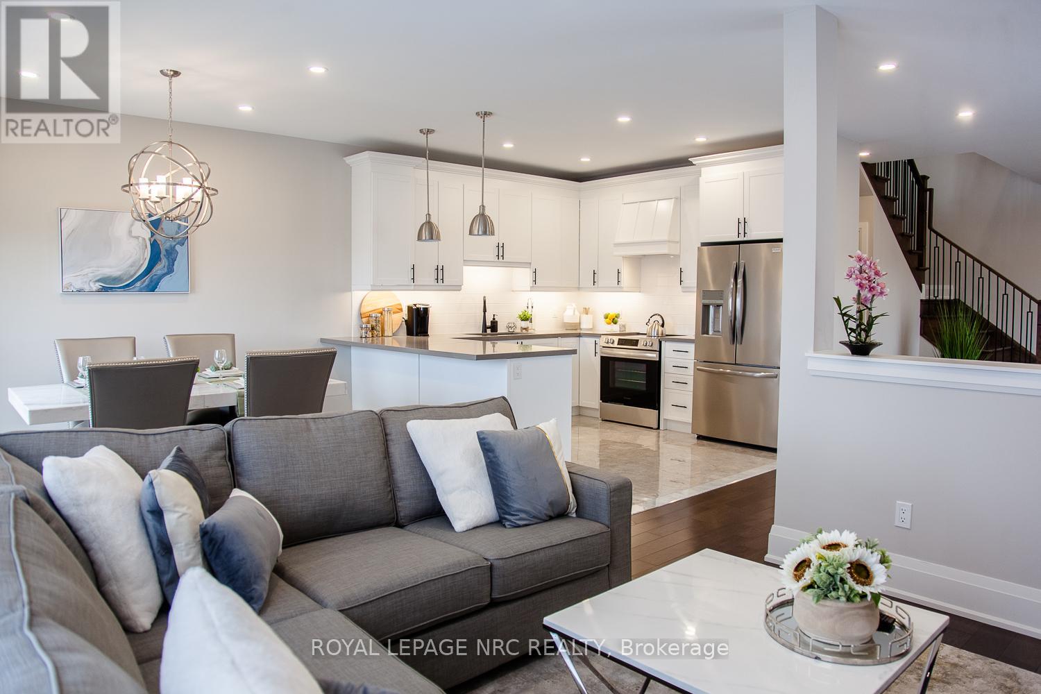 Welcome to the Artisan Ridge model home. Enter through the exterior double doors to a large foyer and hallway. This leads to a large open-concept main floor with 9-foot ceilings and a chef's kitchen with quartz counters and stainless steel appliances. This home features hardwood floors throughout the main and second levels, an oak staircase, and castiron railings. On the second level, you will find 4 generously sized bedrooms, all connected to a bathroom. This property is minutes from major shopping centers, gyms, beautiful hiking trails, wineries, Brock University, and both Niagara College campuses. (id:64974)