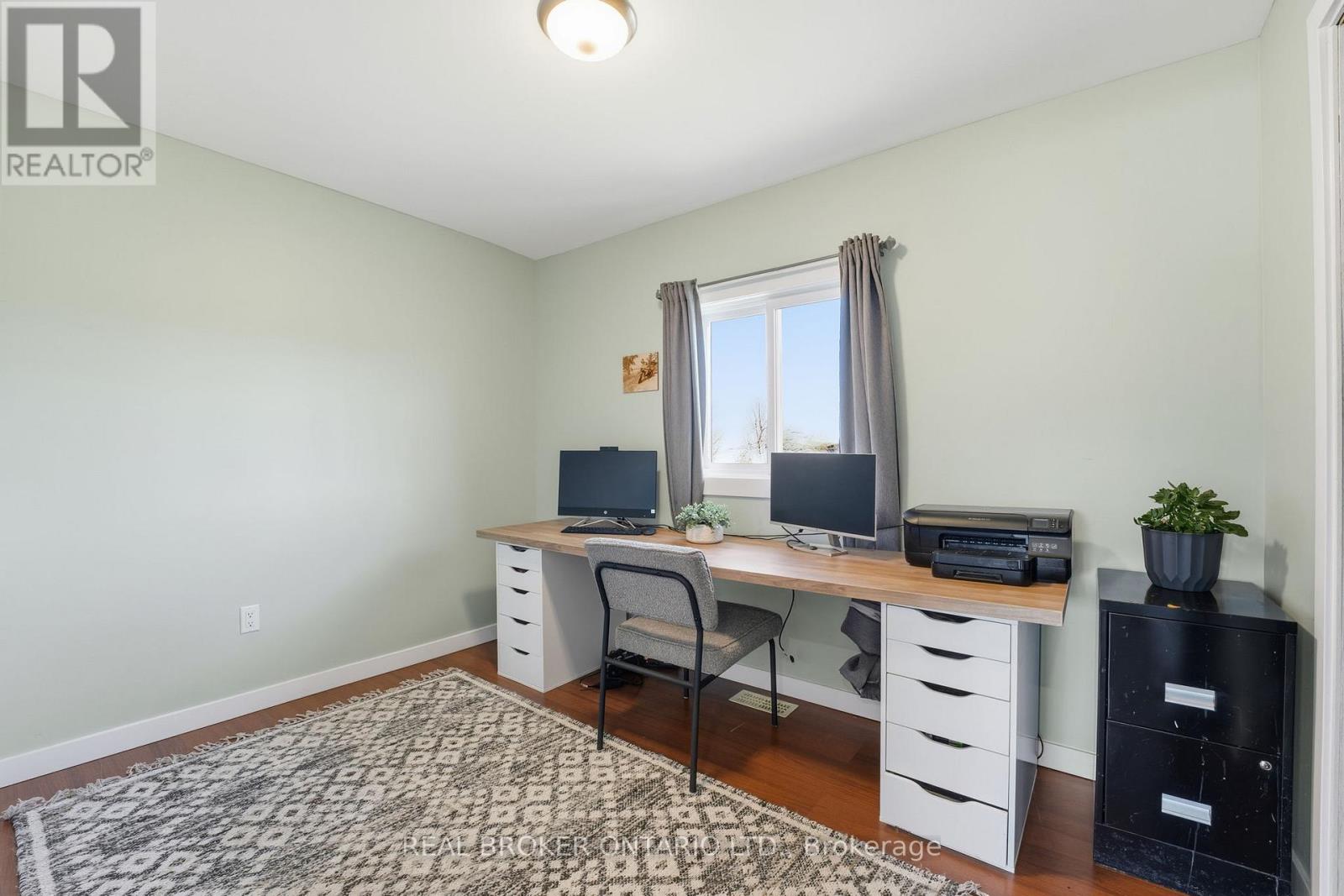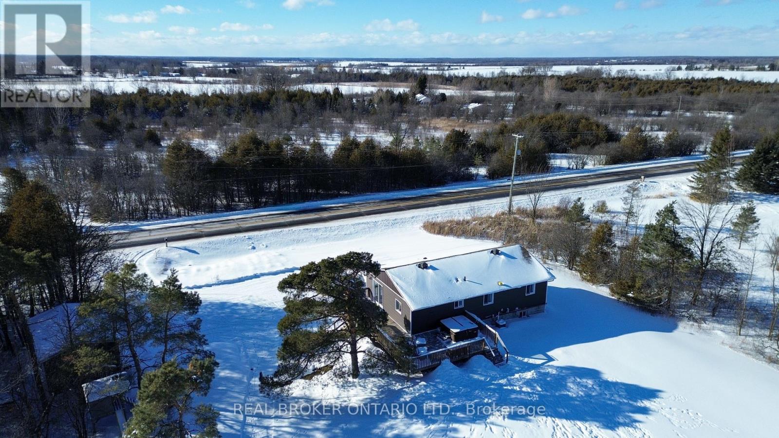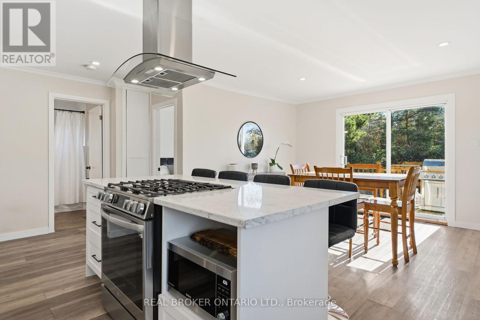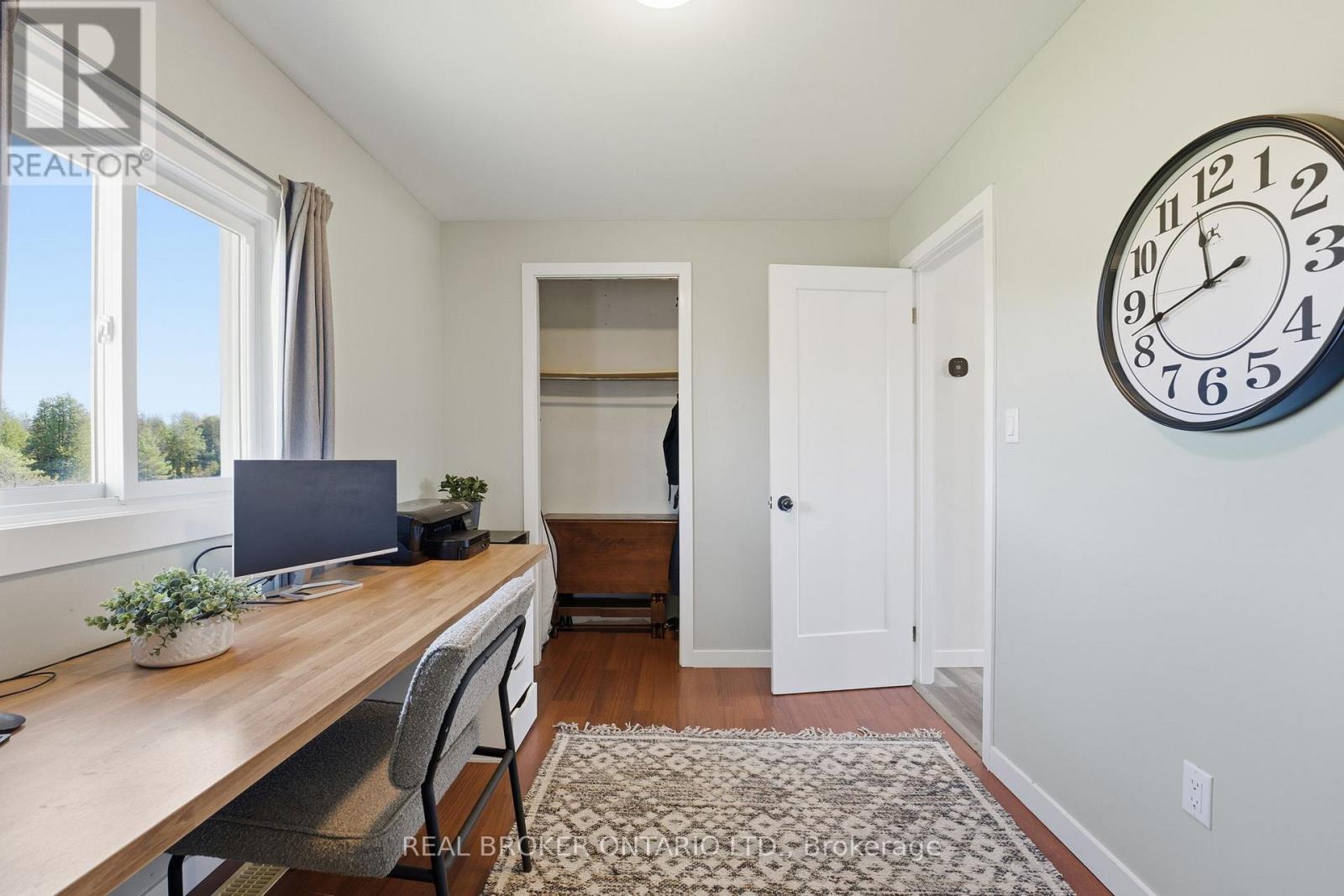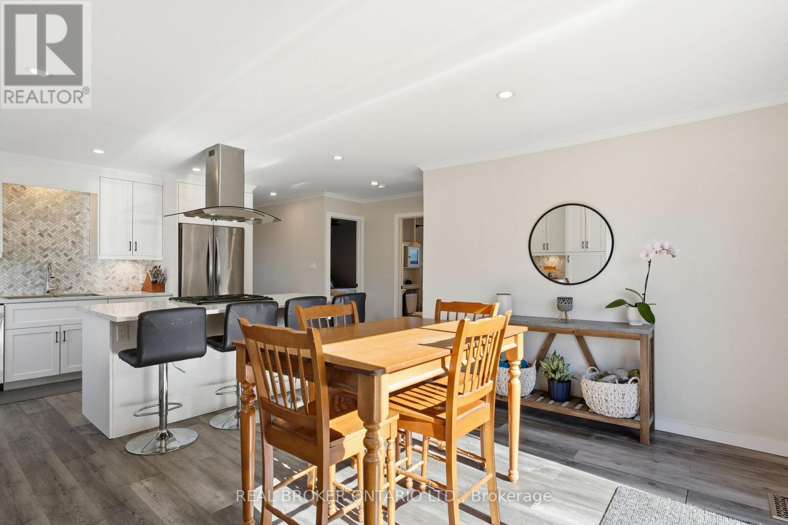 Beautifully renovated home, a heated & cooled shop & tons of room for hobbies, gardening & evening fire pit gatherings. You won't want to miss out on this 4 bedroom high ranch home on over an acre of land! Perfect quiet country setting. Enjoy privacy and space and just minutes to the amenities & charm of downtown Merrickville. This perfectly sized home was transformed in 2023, and features new vinyl siding with stonework and 2" energy board. New floors, ceilings and nicely updated bathrooms. The kitchen is a showstopper with sleek modern cabinetry, gorgeous backsplash, a huge island, and an open concept dining area with patio doors leading to the huge deck.. perfect for entertaining or relaxing in the hot tub. The living room is a quiet inviting space with a huge window. Versatile office off the living room could be a bedroom, or a play area to hide all the kids toys! 2 other bedrooms round out the main level. The lower level provides flexibility for family and guests with a large gym/den (you chose!) A spacious bedroom and a beautiful full bathroom. This home has it all; including practicality and good value. The perfect balance of style, comfort and country living. (id:64974)