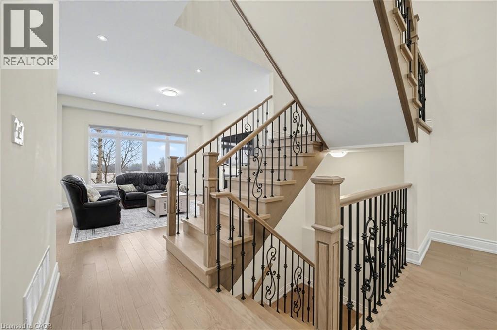 Brand New Luxurious Executive Home for Lease in Fergus – Entire Property Be the first to live in this exceptional brand new executive residence offering approximately 3300+ sq ft of refined living space, a rare triple-car garage, and a premium lot backing onto serene green space with no rear neighbours—a true retreat surrounded by nature. This bright and spacious home features 4+ generously sized bedrooms , with 3 bathrooms upstairs, and showcases a thoughtfully designed floor plan with high ceilings, oversized windows, and elegant finishes throughout. The heart of the home is the expansive eat-in kitchen, complete with abundant cabinetry, premium upgrades, and ample space for family gatherings and entertaining. The open-concept living and dining areas are flooded with natural light and offer seamless flow to enjoy both everyday living and hosting. Additional highlights include main-floor laundry, inside entry from the triple-car garage, and well-proportioned principal rooms designed for comfort and functionality. Upstairs, the primary suite offers a luxurious escape with a spa-inspired ensuite, walk-in closet, and access to a private balcony—the perfect place to enjoy peaceful views of the surrounding greenery. Secondary bedrooms are spacious and well-appointed, ideal for families or professionals alike. Situated in a desirable, family-friendly Fergus neighbourhood close to parks, trails, schools, and amenities, while still offering privacy and tranquility rarely found in new developments. Seeking AAA tenants who appreciate quality, space, and an elevated lifestyle. Entire home for lease. Long-term tenancy preferred. (id:64974)