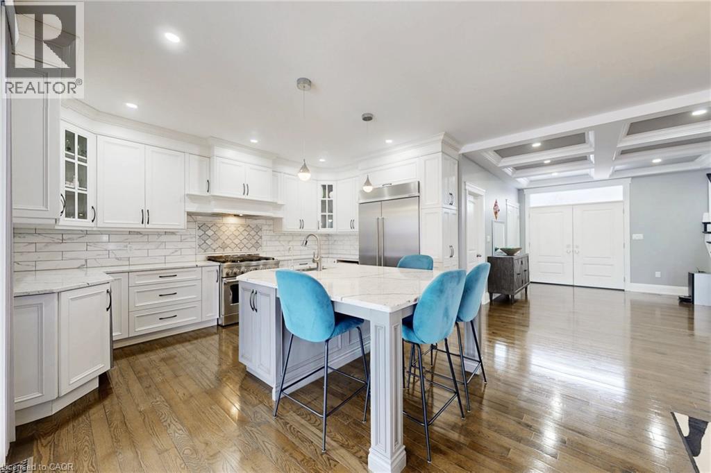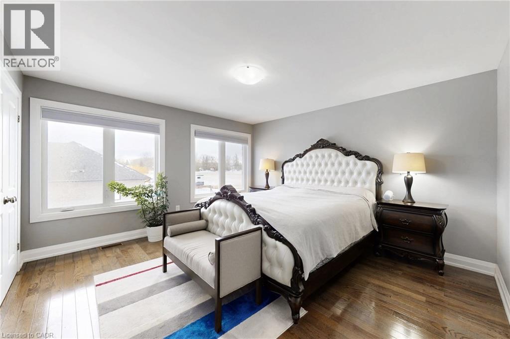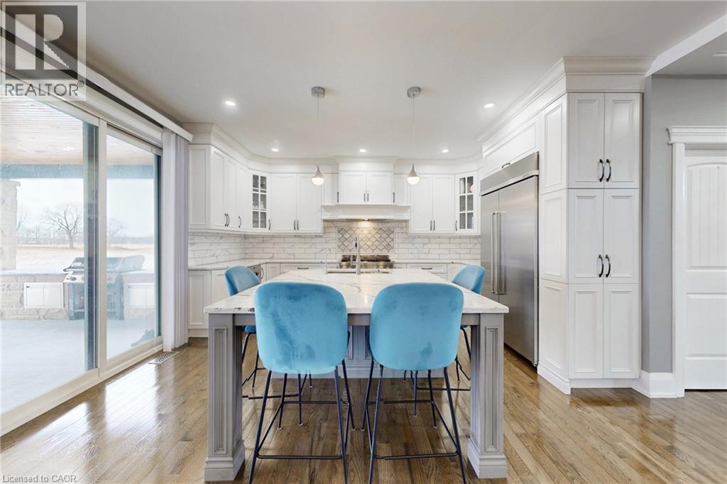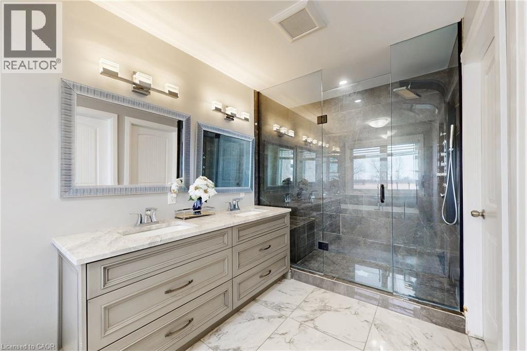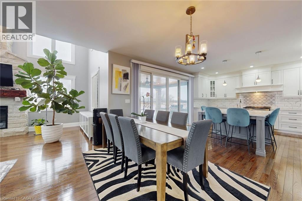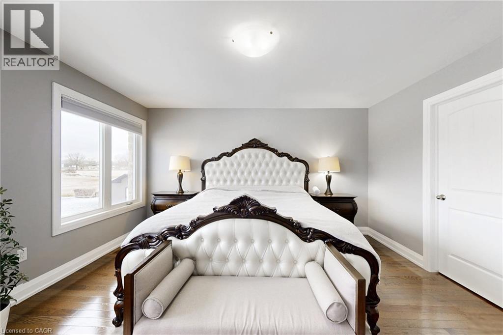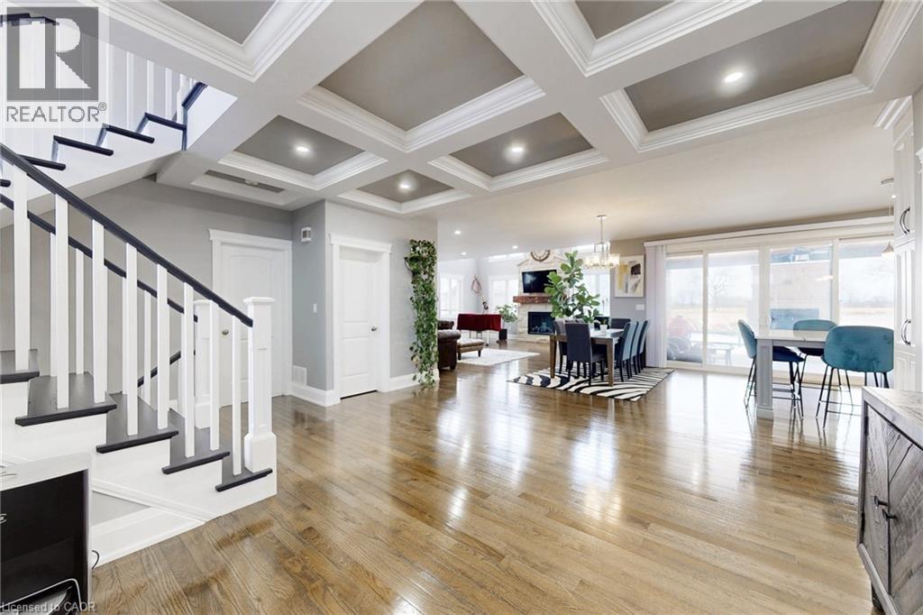This is an unparalleled bespoke executive country estate, featuring 6 exquisite bedrooms and 5 luxurious bathrooms, perfectly situated on a hilltop with sweeping views of the undulating countryside. Every detail of this Hagersville masterpiece exudes exceptional craftsmanship and meticulous design. The exterior showcases custom Arriscraft stone, complemented by a grand covered porch, a double garage with oversized 10-foot doors, and an outdoor entertaining haven equipped with a gourmet kitchen, granite countertops, a Weber grill, a gas fireplace, and a spacious patio. Inside, over 4,900 square feet of exquisitely finished living space unfold. The gourmet kitchen features hardwood flooring, quartz countertops, a custom backsplash, and premium stainless steel appliances. The grand great room boasts 18-foot coffered ceilings and a stunning stone fireplace. The main floor includes a versatile bedroom or office, a convenient laundry room, and a lavish primary suite with a chic ensuite, tiled shower, and expansive walk-in closet. Secondary bedrooms include private ensuites and a shared Jack-and-Jill bathroom. The finished basement offers 8 foot ceilings, a sophisticated recreation room, an additional bedroom, and ample storage and utility space. In addition, a newly drilled well ensures safe drinking water and provides for garden irrigation. Ideally located in a safe, friendly community, just 30-minute drive to Costco, No Frills, and Home Depot, and within an hour's reach of London, Waterloo, Mississauga, Hamilton, and Niagara Falls. Homes of this stature are rare-this is a once-in-a lifetime opportunity. (id:64974)