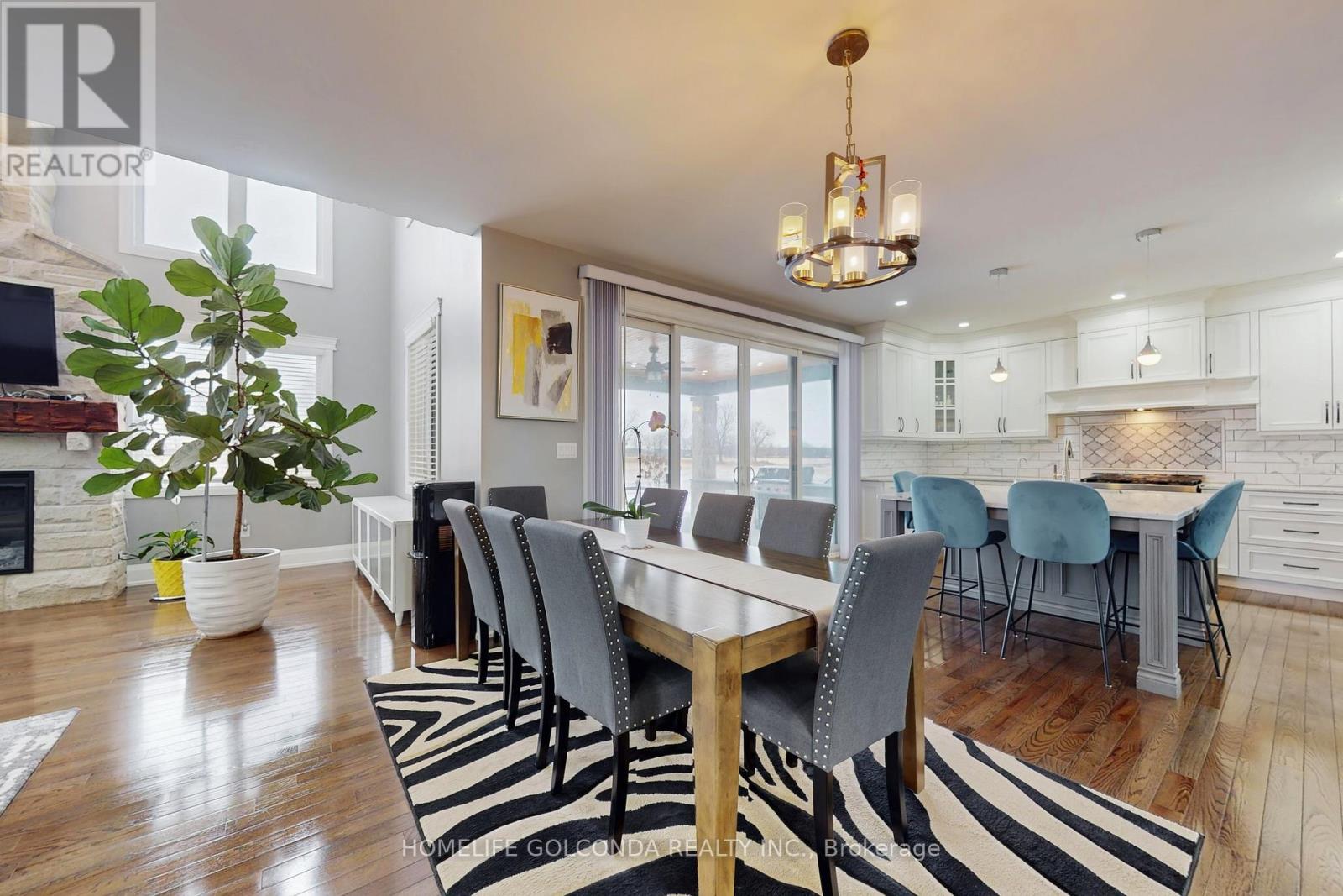 This is an unparalleled bespoke executive country estate, featuring 6 exquisite bedrooms and 5 luxurious bathrooms, perfectly situated on a hilltop with sweeping views of the undulating countryside. Every detail of this Hagersville masterpiece exudes exceptional craftsmanship and meticulous design. The exterior showcases custom Arriscraft stone, complemented by a grand covered porch, a double garage with oversized 10-foot doors, and an outdoor entertaining haven equipped with a gourmet kitchen, granite countertops, a Weber grill, a gas fireplace, and a spacious patio.Inside, over 4,932 square feet of exquisitely finished living space unfold. The gourmet kitchen features hardwood flooring, quartz countertops, a custom backsplash, and premium stainless steel appliances. The grand great room boasts 18-foot coffered ceilings and a stunning stone fireplace. The main floor includes a versatile bedroom or office, a convenient laundry room, and a lavish primary suite with a chic ensuite, tiled shower, and expansive walk-in closet. Secondary bedrooms include private ensuites and a shared Jack-and-Jill bathroom. The 8-foot ceiling finished basement offers a sophisticated recreation room, an additional bedroom, and ample storage and utility space.In addition, a newly drilled well ensures safe drinking water and provides for garden irrigation. Ideally located in a safe, friendly community, just 30-minute drive to Costco, No Frills, and Home Depot, and within an hour's reach of London, Waterloo, Mississauga, Hamilton, and Niagara Falls. Homes of this stature are rare-this is a once-in-a-lifetime opportunity. (id:64974)