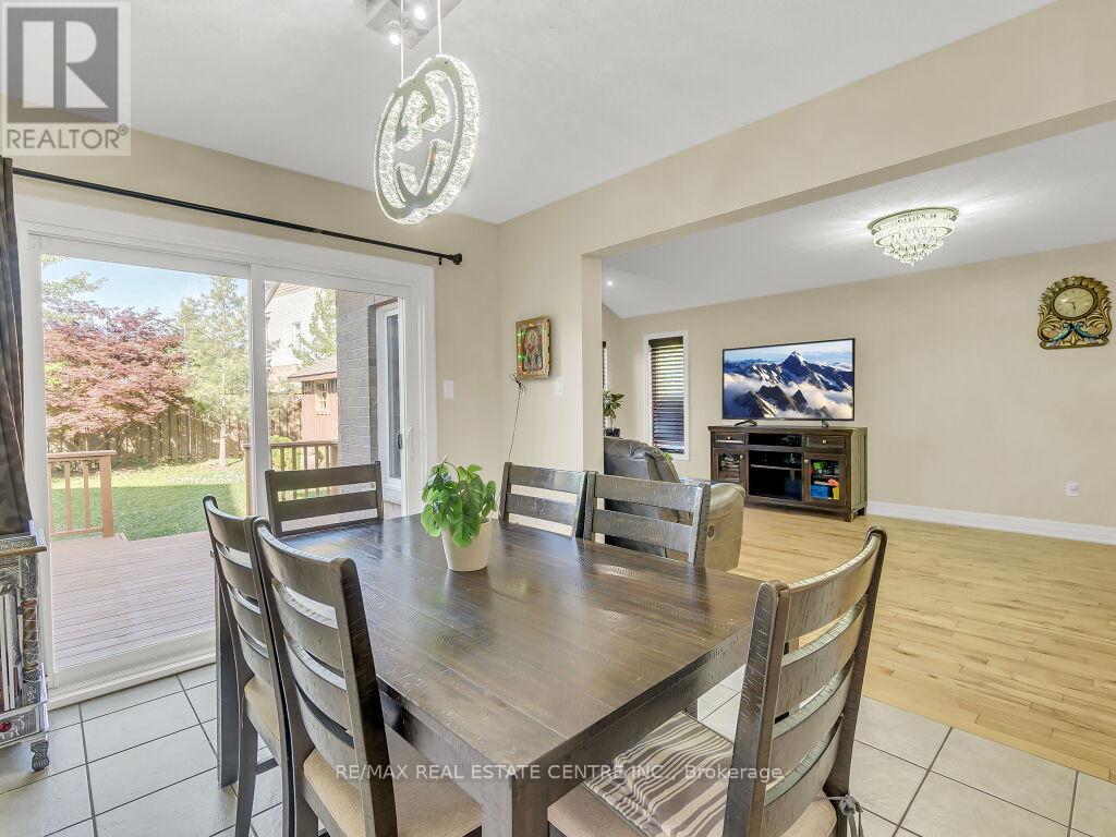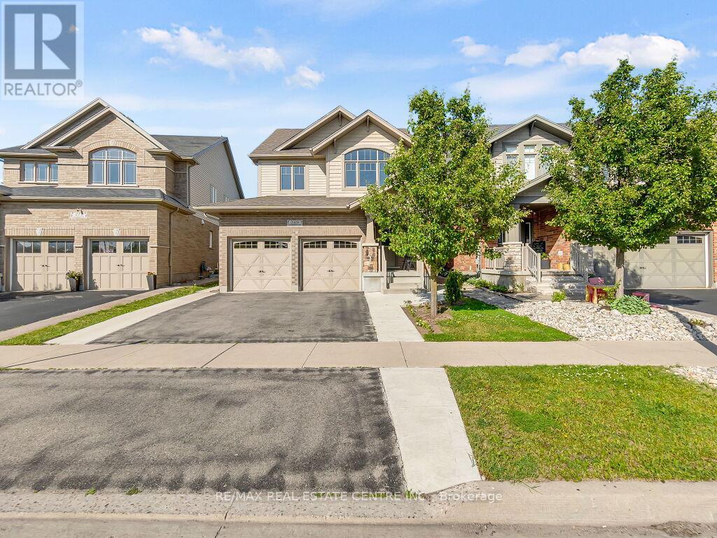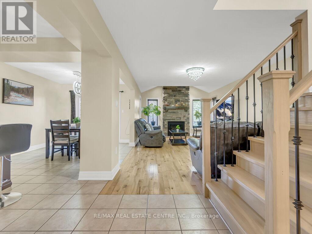 Beautiful upgraded 2-storey detached home with a double car garage, built in 2013 and located in desirable South Guelph. The main floor features a spacious open-concept kitchen with a breakfast bar, island, ample cabinetry, and stainless steel appliances, along with a bright living room with hardwood flooring and a fireplace. Sliders from the dining area lead to a private deck and fully fenced backyard with a garden shed, plus a convenient 2-piece bathroom. Upstairs offers 3 well-sized bedrooms, including a generous primary bedroom with a walk-in closet and ensuite bathroom with a Jacuzzi tub, as well as an additional 4-piece bathroom. The finished basement adds excellent living space with an open-concept recreation room, gas fireplace, large windows, extra storage, and another 4-piece bathroom. Surrounded by nature and close to schools, the library, shopping, restaurants, and the rec center, this is a fantastic opportunity to own a wonderful family home in a great location. (id:64974)