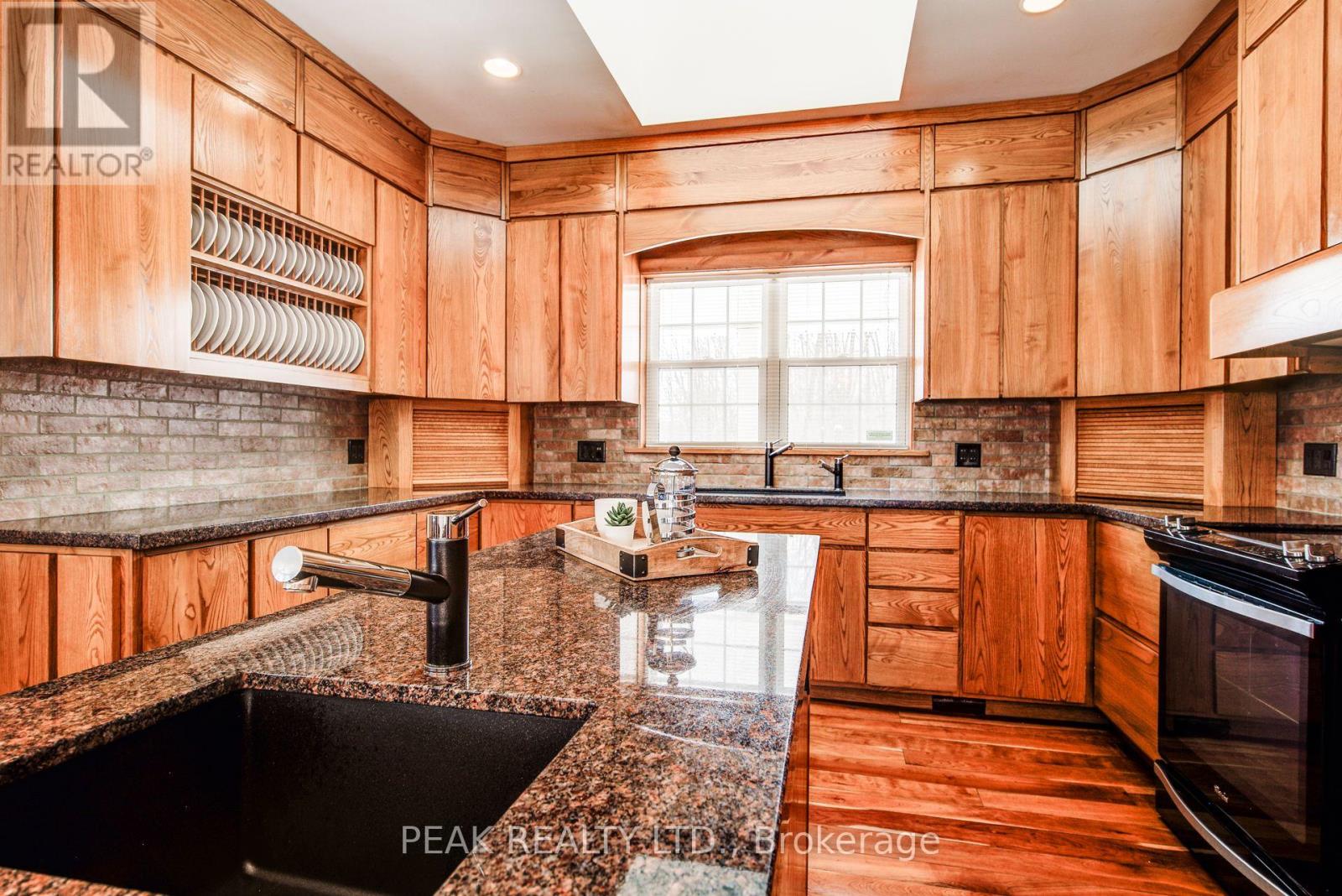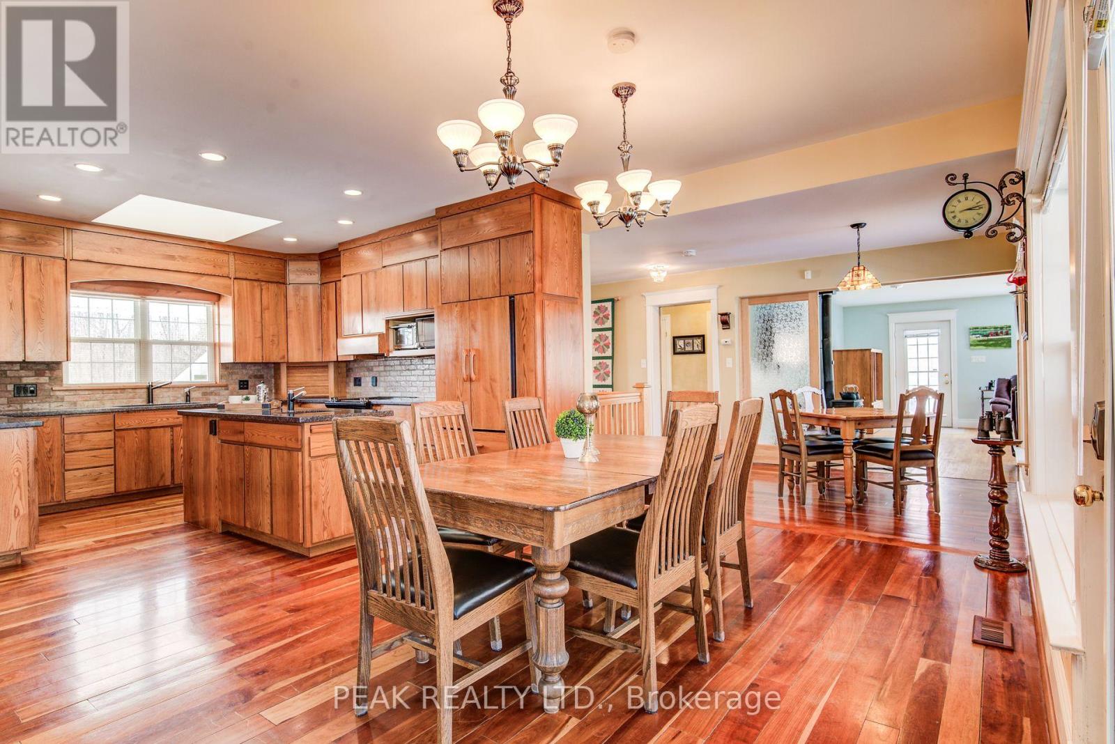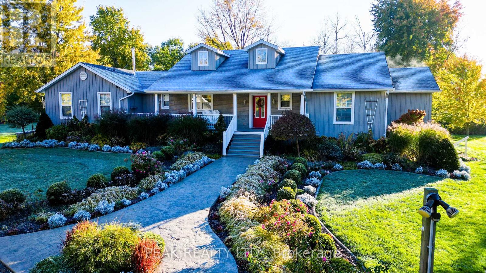A rare opportunity to own a private country retreat just 25 minutes to Waterloo and minutes from Stratford. This exceptional rural estate offers approximately 4 workable acres, 2 acres surrounding the home, and 90 acres of mature bush with over 6 km of marked grass trails. Maple trees provide syrup potential, while two ponds with sandy beach areas offer swimming, paddling, and year-round enjoyment. The renovated 6-bedroom bungalow is ideal for multi-generational living or hosting guests attending the renowned Stratford Festival, featuring a fully finished lower level with egress windows, kitchenette/wet bar, and separate walk-up entrance. Custom updates since 2005 include a beautifully crafted ash kitchen with granite countertops, expansive windows, skylights, and an open-concept layout designed for entertaining. With 5 bathrooms, hardwood and tile flooring, multiple decks, landscaped gardens, a double detached garage, additional outbuildings, and energy-efficient geothermal heating and cooling, this property blends comfort, functionality, and natural beauty. Endless recreational opportunities await - from trails and wildlife to beach days and campfire evenings - making this a truly unique lifestyle property. (id:64974)