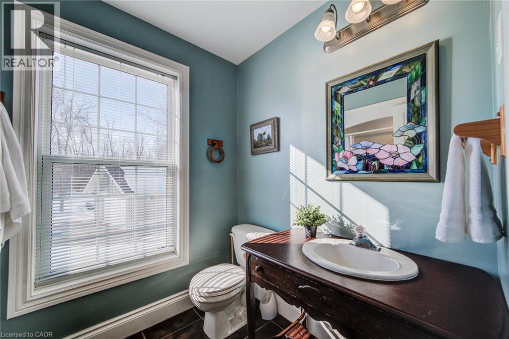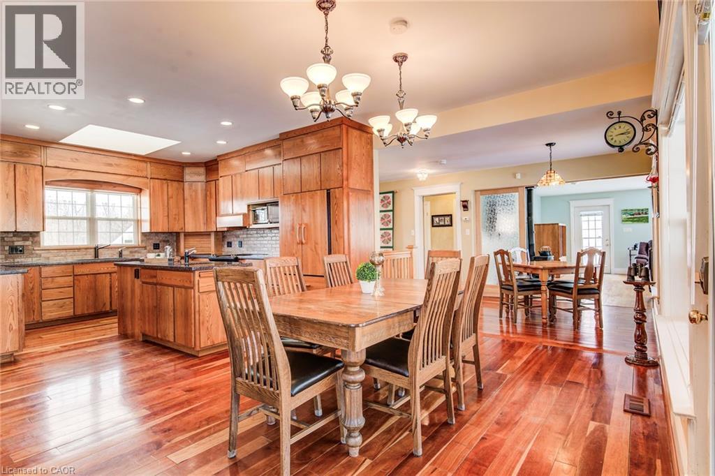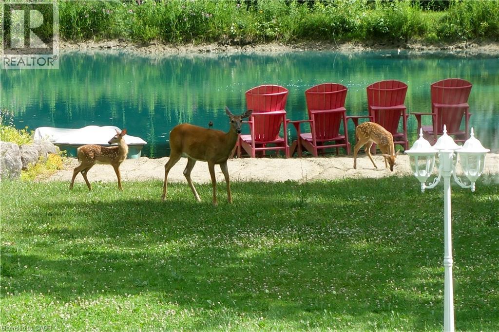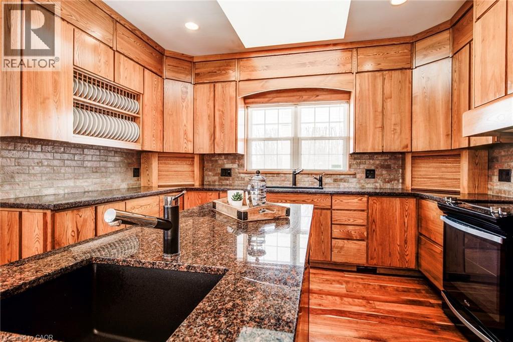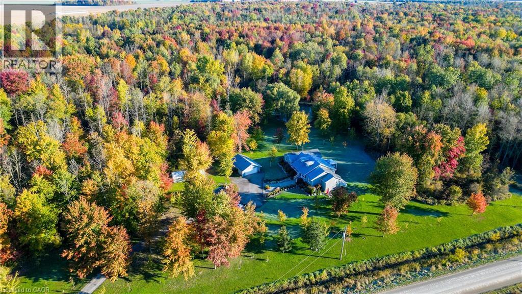 A rare opportunity to own a private country retreat just 25 minutes to Waterloo and minutes from Stratford. This exceptional rural estate offers approximately 4 workable acres, 2 acres surrounding the home, and 90 acres of mature bush with over 6 km of marked grass trails. Maple trees provide syrup potential, while two ponds with sandy beach areas offer swimming, paddling, and year-round enjoyment. The renovated 6-bedroom bungalow is ideal for multi-generational living or hosting guests attending the renowned Stratford Festival, featuring a fully finished lower level with egress windows, kitchenette/wet bar, and separate walk-up entrance. Custom updates since 2005 include a beautifully crafted ash kitchen with granite countertops, expansive windows, skylights, and an open-concept layout designed for entertaining. With 5 bathrooms, hardwood and tile flooring, multiple decks, landscaped gardens, a double detached garage, additional outbuildings, and energy-efficient geothermal heating and cooling, this property blends comfort, functionality, and natural beauty. Endless recreational opportunities await — from trails and wildlife to beach days and campfire evenings — making this a truly unique lifestyle property. (id:64974)