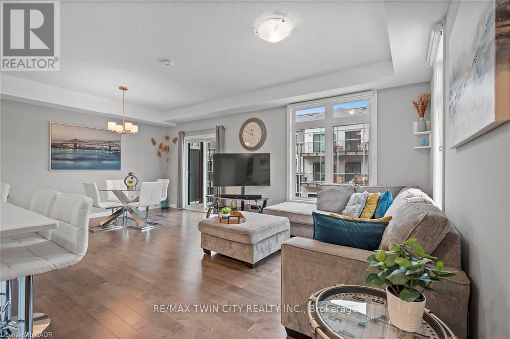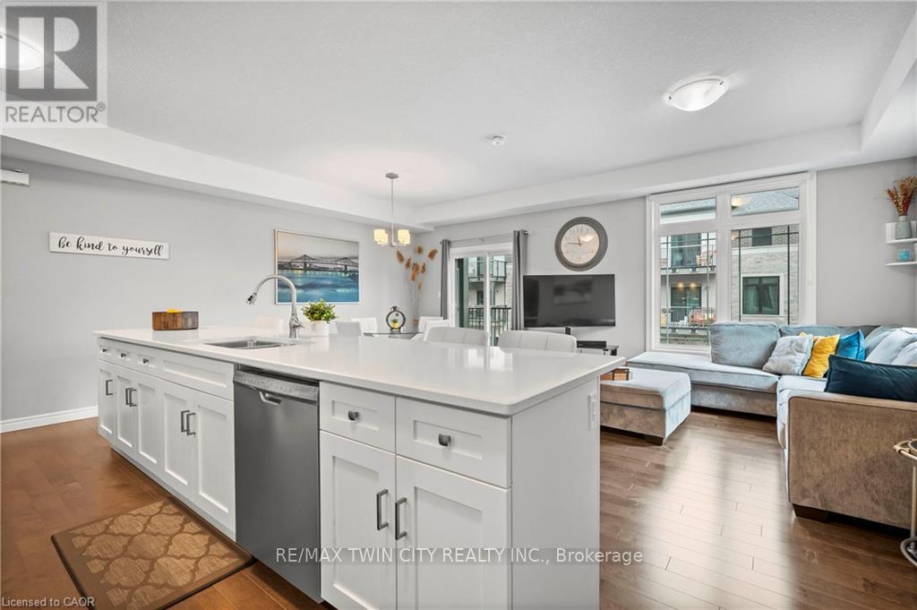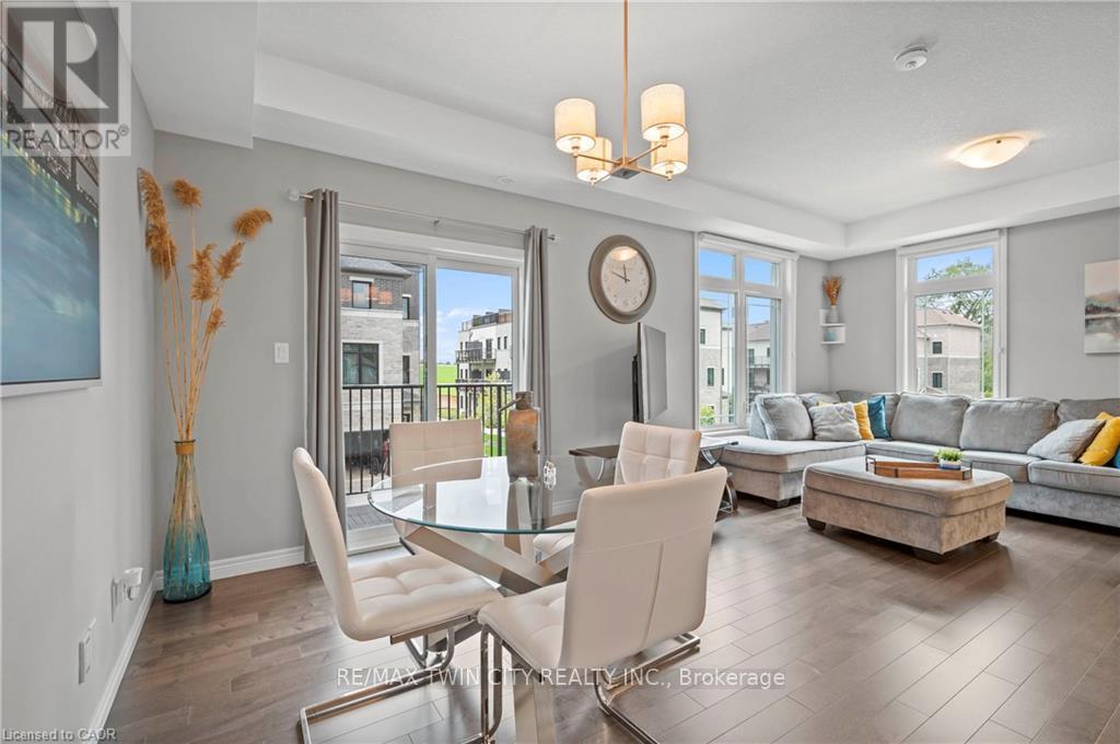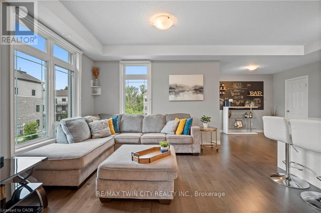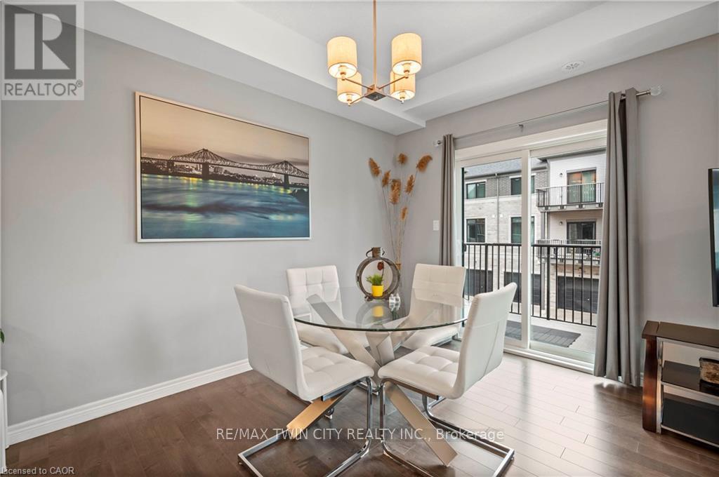 Welcome to 27-107 Westra Dr, featuring the stunning Soho Floorplan, the largest design on-site, & a rare 3 bedroom, 3 balcony setup with over $20,000 in upgrades. Nestled on a quaint street in a quiet, family-friendly neighborhood, this home offers a perfect blend of elegance & functionality. Upon entry, you'll be welcomed by a spacious family room adorned with hardwood floors. Access to laundry facilities for your ease & storage. The breathtaking kitchen boasts upgraded white cabinetry, a stylish back splash, & striking stone counter tops. High-end SS appliances elevate the cooking experience, while the enormous center island serves as a focal point for casual dining or entertaining. The adjacent sun-drenched dining area is perfect for formal gatherings. The living room, also with solid hardwood floors, flows seamlessly from the kitchen & dining area. Sliding doors lead to a serene balcony, ideal for unwinding or hosting outdoor gatherings. A convenient powder room completes this level. Upstairs, the spacious primary bedroom features a double closet & sliding doors to a private balcony. Two additional generously sized bedrooms offer plenty of closet space. The pristine 4-piece bathroom includes a shower/tub combination & a sleek vanity with stone counter tops & upgraded white cabinetry. On the top floor, a bonus room awaits, perfect for an office or workout area. Step out to your spectacular private rooftop patio, perfect for relaxation & entertaining. Located just steps from Ellis Creek Park & Mitchell Park, enjoy picturesque walking trails. The West End Community Centre, with its skating rinks & pool, is also nearby. Families will appreciate the proximity to Mitchell Woods Public School. Additionally, multiple shopping centers, including Costco & Zehrs, as well as various dining options, are conveniently close by. This home is a perfect blend of luxury & convenience, making it an ideal choice for families. Don't miss the opportunity to make it yours! (id:64974)