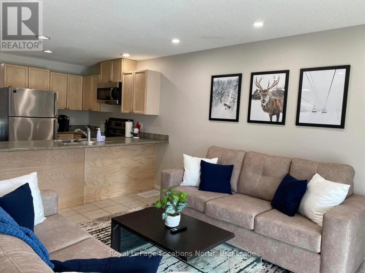 Ideally located within walking distance of Blue Mountain Resort, this desirable 4-bedroom, 2-bathroom townhouse offers an excellent blend of comfort, functionality, and location. The main level features a spacious open-concept kitchen and living area, along with a convenient main-floor primary bedroom. The lower level includes three additional bedrooms and a full bathroom, providing plenty of space for family or guests. Enjoy outdoor living with a walkout deck from the main floor. Residents also have access to exclusive amenities, including a private outdoor pool and tennis court. The property offers one exclusive parking space along with additional guest parking. Optional furnished or unfurnished. (id:64974)