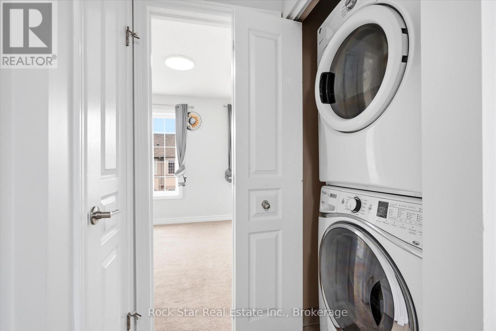 Beautiful vacant end-unit townhouse beside visitor parking on a quiet street. This bright and spacious 3-bedroom, 2.5-bath home features a functional open-concept layout with an upgraded kitchen, a kitchen-dining area, fresh paint (2026), and convenient second-floor laundry. The lower-level bedroom with a full bath is ideal for an in-law or nanny suite, perfect for multi-generational living or added income potential. Meticulously maintained and fully finished throughout. Steps from the bus stop and LRT, parks, trails, YMCA, major highways, and minutes from Downtown Kitchener. A move-in-ready home in a fantastic location. (id:64974)