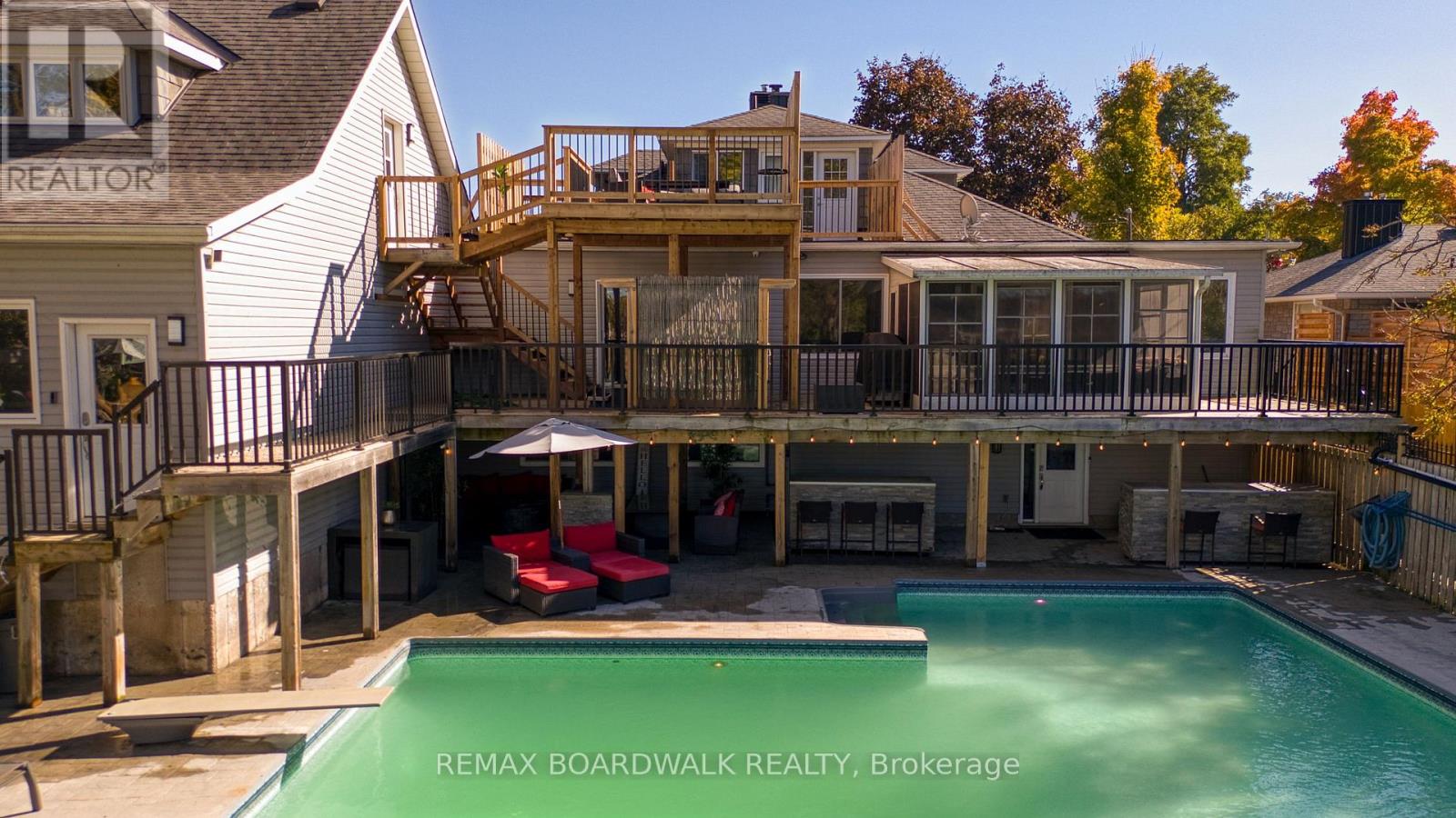 Welcome to 27 Allan St. A truly exceptional waterfront property in the heart of Carleton Place. This fully renovated residence sits on a generous half acre lot along the scenic Mississippi River, with boat access to Mississippi Lake, offering a rare blend of heritage charm and modern upgrades. Over the course of 15 years, every detail has been carefully enhanced while preserving unique features like original stone accents and charming exterior details. Designed for both relaxed living and vibrant entertaining, the property boasts a resort-style backyard oasis. Enjoy the large inground pool complete with a deep end, and diving board, a spacious covered poolside area (60 x 12 feet) perfect for any weather, and multiple decks that offer delightful views and flexible outdoor living spaces. The creative layout includes custom bars on wheels and versatile athletic amenities from basketball and volleyball to tennis and pickleball ensuring endless fun for family and friends. In addition to the main residence, a fully renovated, insulated waterfront cabin enhances the appeal, offering a separate space that's perfect for guests or extended family use. With ramp access for vehicles or equipment and a custom-designed dock featuring unique built-ins, this property truly embraces its small-town resort lifestyle while being only twenty minutes from downtown Ottawa. This home is an extraordinary opportunity to create lasting memories in an inviting, private setting that caters to both luxury and functionality. Don't miss the chance to experience the perfect balance of heritage appeal and modern convenience at 27 Allan St. (id:64974)