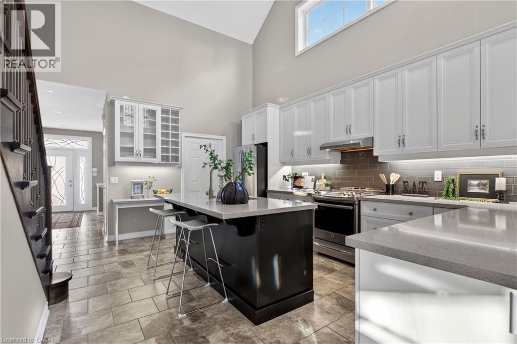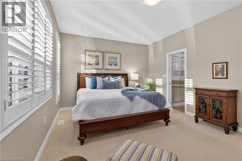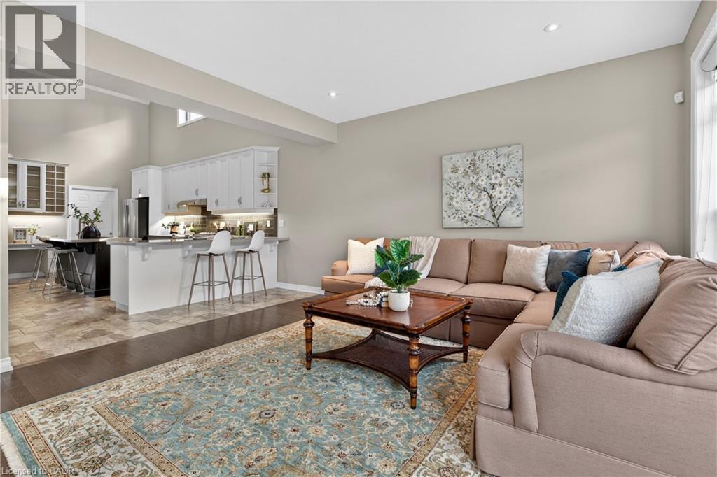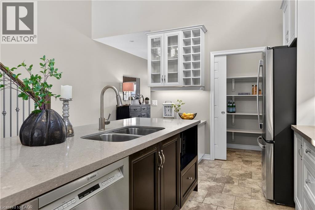 Welcome to 27 Black Walnut Crescent, nestled in one of Ancaster’s most sought-after detached condo lifestyle communities. This exclusive private-road enclave offers the perfect blend of privacy, prestige, and low-maintenance living, with exterior upkeep professionally managed so you can focus on enjoying your home and surroundings. Ideally located, you’re just minutes to major highways, shopping, dining, and everyday conveniences. Inside, the home impresses with a bright, open-concept design highlighted by vaulted ceilings and a dramatic second-floor loft overlooking the main living space, creating an airy, sophisticated atmosphere. Large windows throughout flood the home with natural light, enhancing the sense of space and warmth. The custom chef’s kitchen is both stylish and functional, featuring quartz countertops, a walk-in pantry, abundant prep space, and a seamless flow between counters and centre island, ideal for entertaining or everyday living. The adjoining family room offers built-ins, a gas fireplace, and a walk-out to a private patio. The upgraded staircase with modern metal pickets leads to a versatile second floor with theatre room with built-in shelving, perfect for movie nights, a home office, additional bedrooms or lounge space. Designed with convenience in mind, the home offers up to four spacious bedrooms, including a main-level primary suite complete with a walk-in closet and a generous 5-piece ensuite bath. This is an ideal layout for those seeking the ease of main floor living. The unfinished basement offers outstanding potential, excellent for storage today and ready for your custom vision in the future. This is a rare opportunity to enjoy space, style, and turnkey convenience in a prestigious, maintenance-supported Ancaster community. (id:64974)