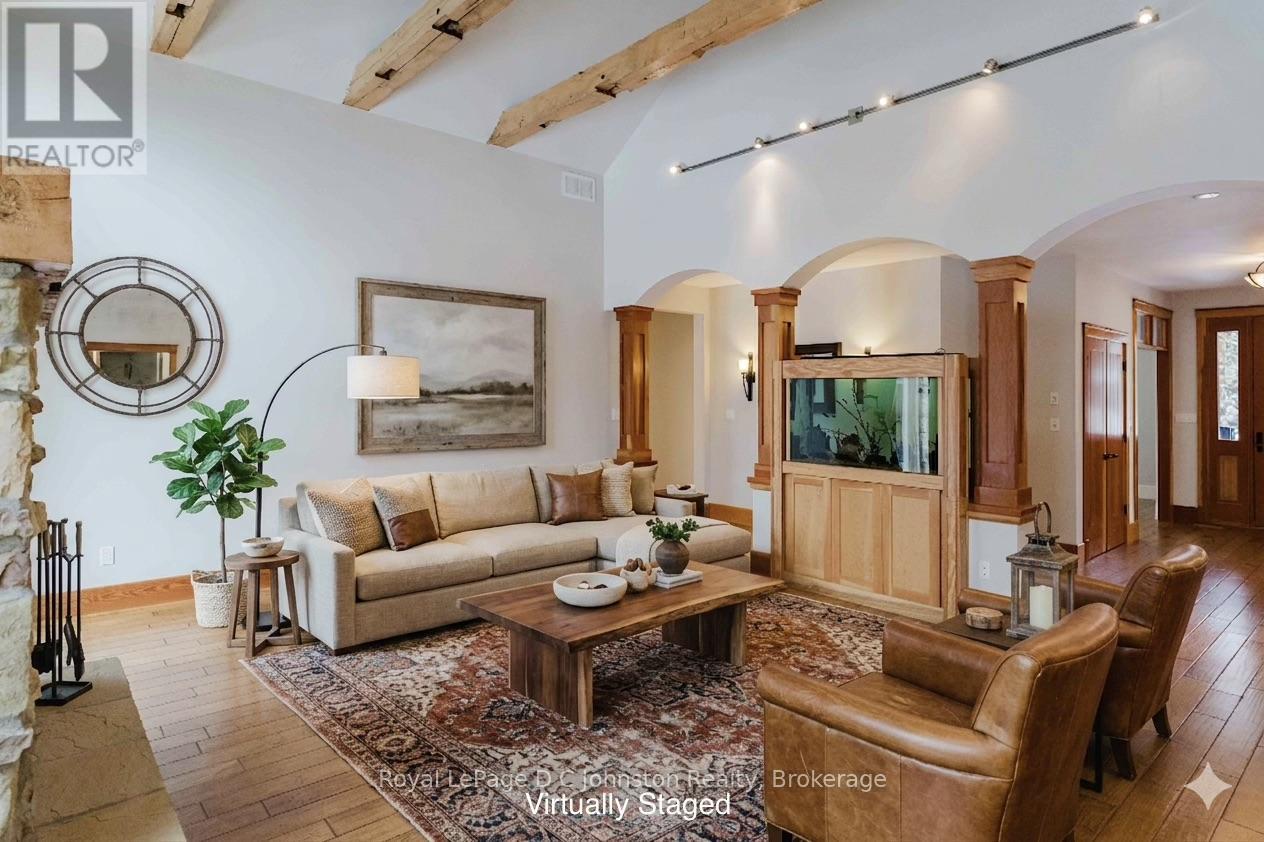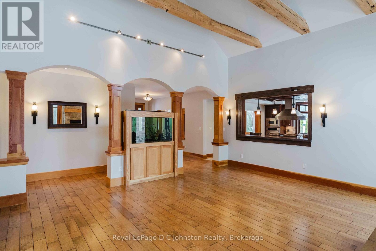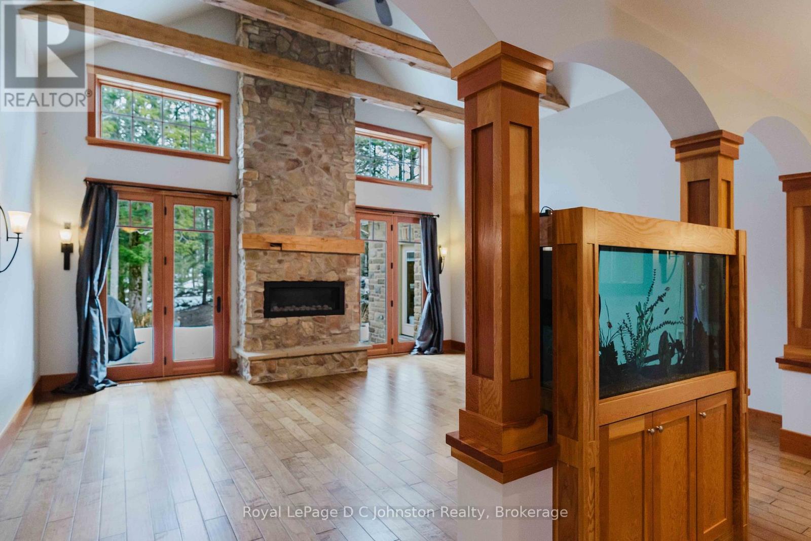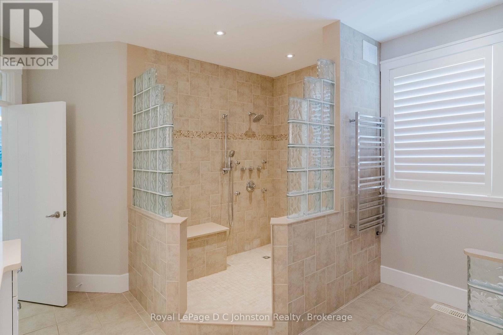 An elevated lifestyle awaits in this executive enclave situated between Port Elgin and Southampton, where timeless Craftsman architecture meets modern luxury. Custom-built by Seaman and Sons, on a lush, tree-lined half-acre, this R2000-certified residence makes a grand first impression with its exquisite exterior stonework, expansive concrete drive, and professional landscaping. A formal front foyer welcomes guests into a world of refined detail, highlighted by a breathtaking great room with 18-foot cathedral ceilings and a majestic floor-to-ceiling stone fireplace. The home's culinary heart is a chef's kitchen featuring a massive island with a six-burner Viking cooktop and high-end integrated appliances. For effortless daily living, a practical side entrance leads to a high-function mudroom and laundry suite, complete with a dedicated tiled dog-washing station and direct access to the oversized triple-car garage. The primary suite serves as a true sanctuary, offering a tray ceiling, cozy window seat, and a spa-inspired ensuite with direct access to a secluded patio. Located just steps from the shore of Lake Huron and the extensive Saugeen Shores trail system, this home offers unparalleled access to local recreation, sandy beaches, shopping, and dining. With a lower level partially finished with a family room, two more bedrooms and a four piece bath, plus an extensive unfinished area open for all your ideas, this is more than just a house - it's a legacy property designed for a lifetime of memories. (id:64974)