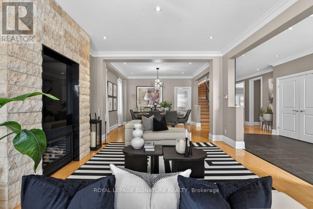 Discover elevated living at 27 Cleta Dr with over 5,000 SQ.FT of living space, this sophisticated 4+2 bed, 5-bath home is set on a premium 54x183 ft lot with a double garage and six-car driveway! A grand double-door entry unveils a dramatic foyer with soaring ceiling. The open-concept living and formal dining areas exude timeless elegance, with rich hardwood floors, crown moulding, and expansive windows that bathe the home in natural light. The living room features a striking gas fireplace with sleek stone and granite feature, creating a warm yet polished focal point! The kitchen is stylish and functional, complete with stainless steel appliances, granite countertops, a large centre island with seating and walkout to the patio ideal for indoor-outdoor living. The bright and massive breakfast area is surrounded by windows, offers the perfect place to start your day, flowing seamlessly into the generous family room, a warm and inviting space for everyday living with custom stone feature walls. Main floor powder room, access to the garage and a main floor laundry room add convenience with ample storage. A spiral staircase with designer iron railing leads to the second level, where a loft-style mezzanine overlooks the foyer below. The primary suite is a serene retreat, complete with floor-to-ceiling windows, a walk-in closet, and a spa-inspired 7-piece ensuite featuring gorgeous tiles, dual vanities, a glass shower, and a deep jacuzzi tub. A generously sized second bedroom offers its own private 4-piece ensuite, while two additional grand bedrooms with large closets and a well-appointed bath complete the upper level. The finished basement is perfect for rental income or additional living space with a large recreation area, full kitchen, walk-up access to the backyard, two additional bedrooms, and a 3-piece bath! Outdoors, the private backyard offers a tranquil escape, with a large interlocked area and expansive greenery that is hard to find in the City! (id:64974)