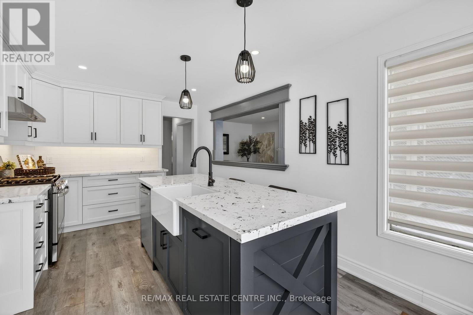 Gorgeous, immaculately maintained, move-in-ready, spacious, 4 + 1 bedroom, 3 bathroom detached 2 Storey home, situated on a premium pool size lot. Located in a family friendly quiet neighbourhood, in a prime location, close to all amenities, while maintaining a peaceful rural ambiance. Home has been freshly painted throughout and beautifully renovated. Large spacious kitchen features quartz countertops, kitchen island, stainless steel appliances, gas stove, pantry, lots of cupboard space and open concept to a bright family room with gas fireplace and bay window overlooking the backyard. Walk out from the kitchen to a large deck with gazebo, great for bbq's and entertaining. Beautifully landscaped, huge pool size, fully fenced in backyard, giving you your own private oasis, great for entertaining and relaxation. Main level laundry/mudroom has entry to the garage & features a slat wall system, & exceptionally high ceiling, great for hoist potential. Side door access to the backyard from the garage. Upper level large primary bedroom with 4 piece en-suite & spacious walk-in closet, including 3 large bedrooms, great for a family & office space. Lower level is perfect for guests or in-law suite with its living area, bedroom, & recreational space. Huge 30' utility room, allowing for ample storage or future projects. This home combines both comfort and convenience. Minutes to Bolton's downtown core, parks, schools, recreation centers, shopping, grocery stores, restaurants & all amenities you would ever need - A great place to live. Located close to major highways. (id:64974)